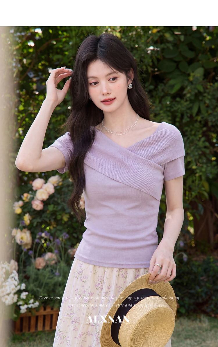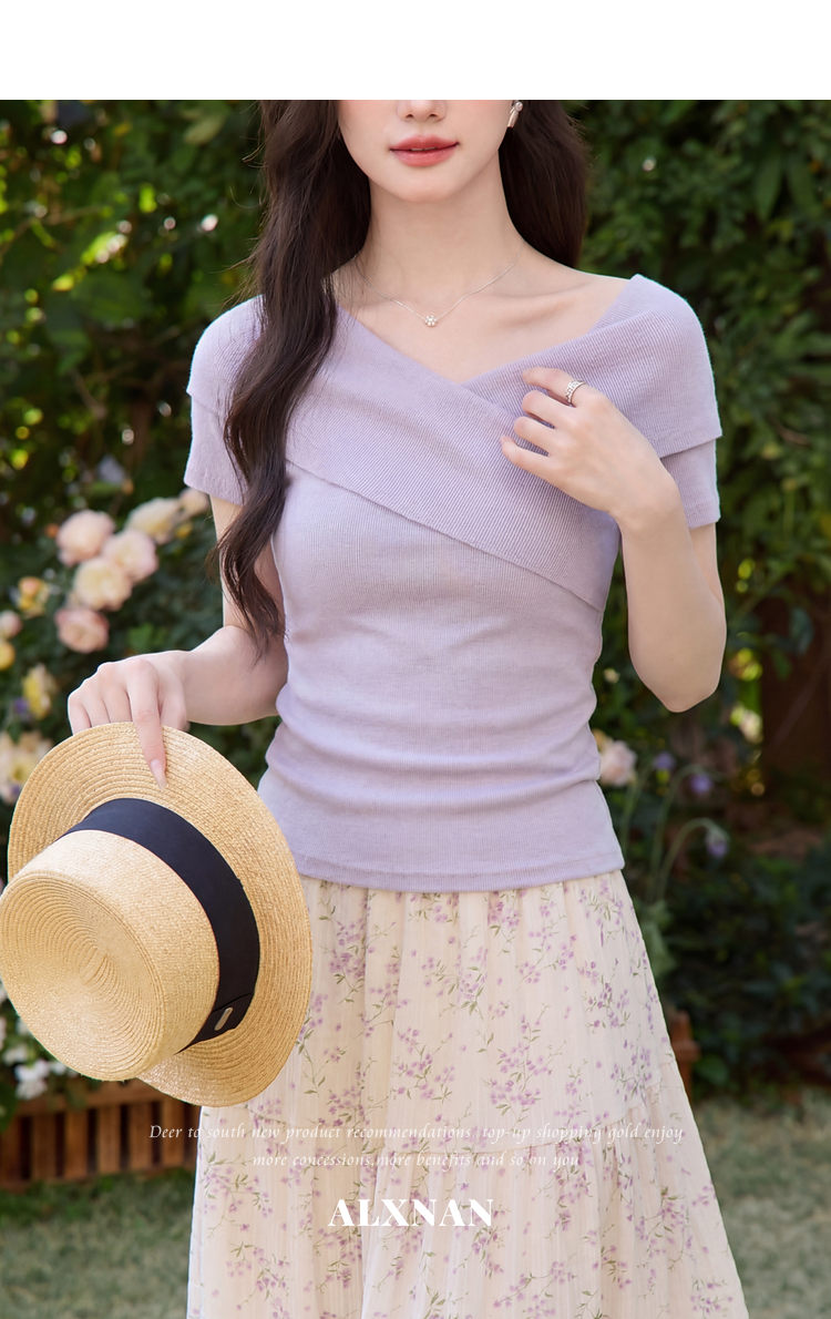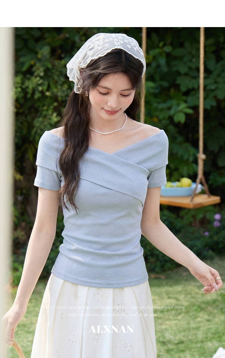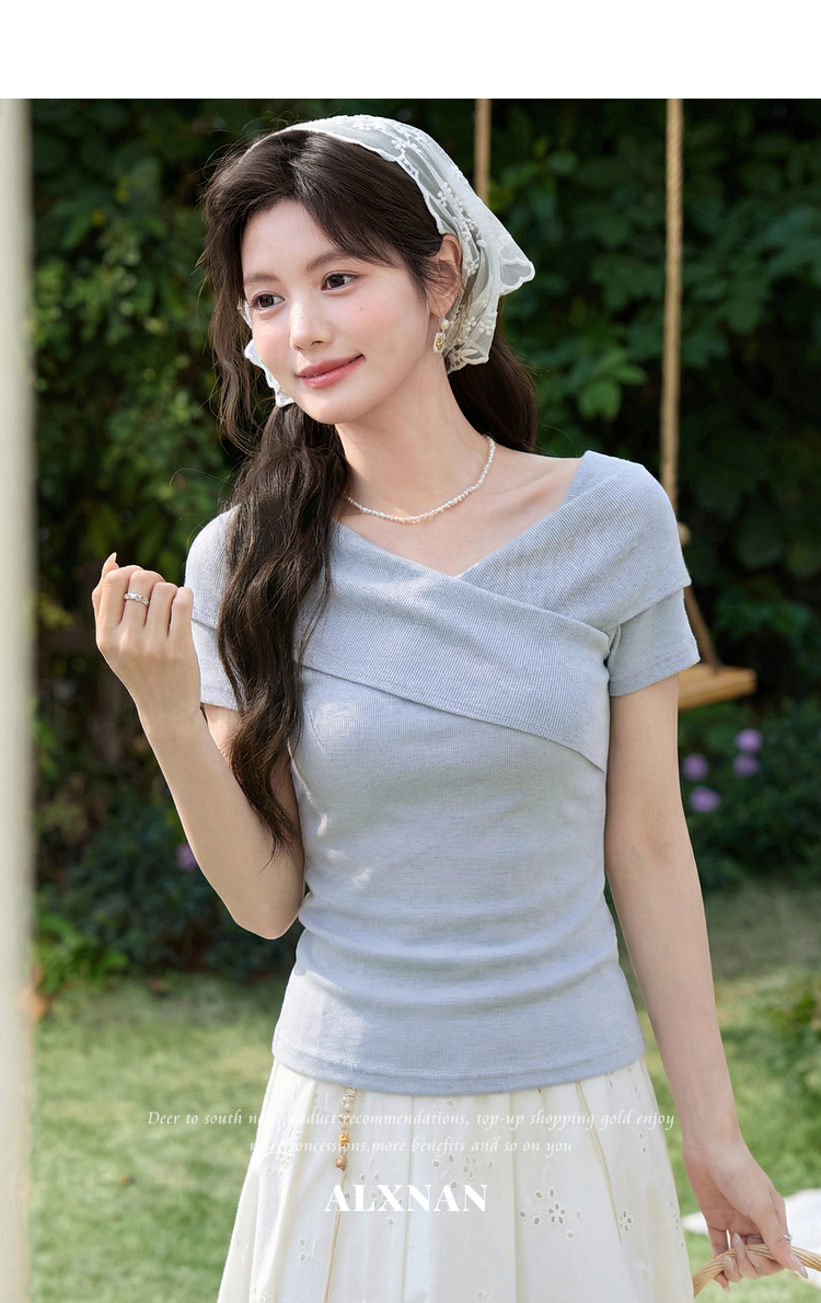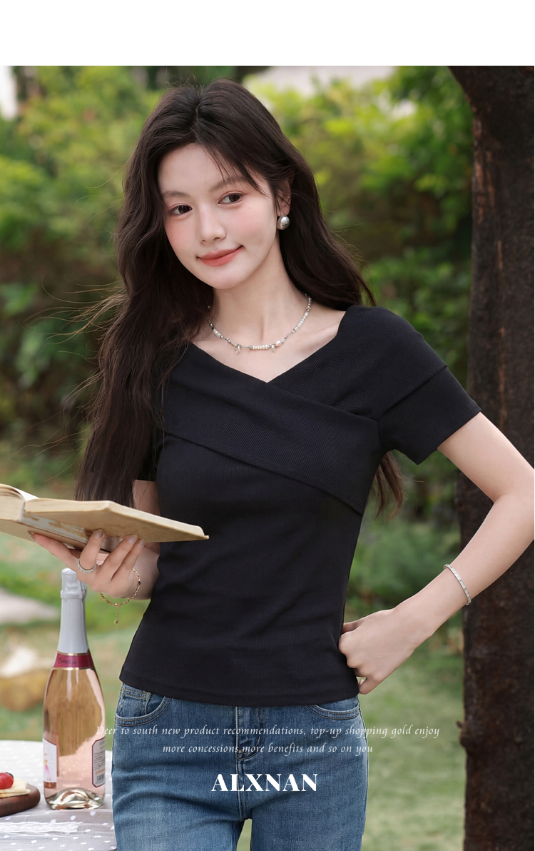 鹿向南「塞纳来信」莱赛尔高级感黑色设计感短袖T恤女夏气质上衣