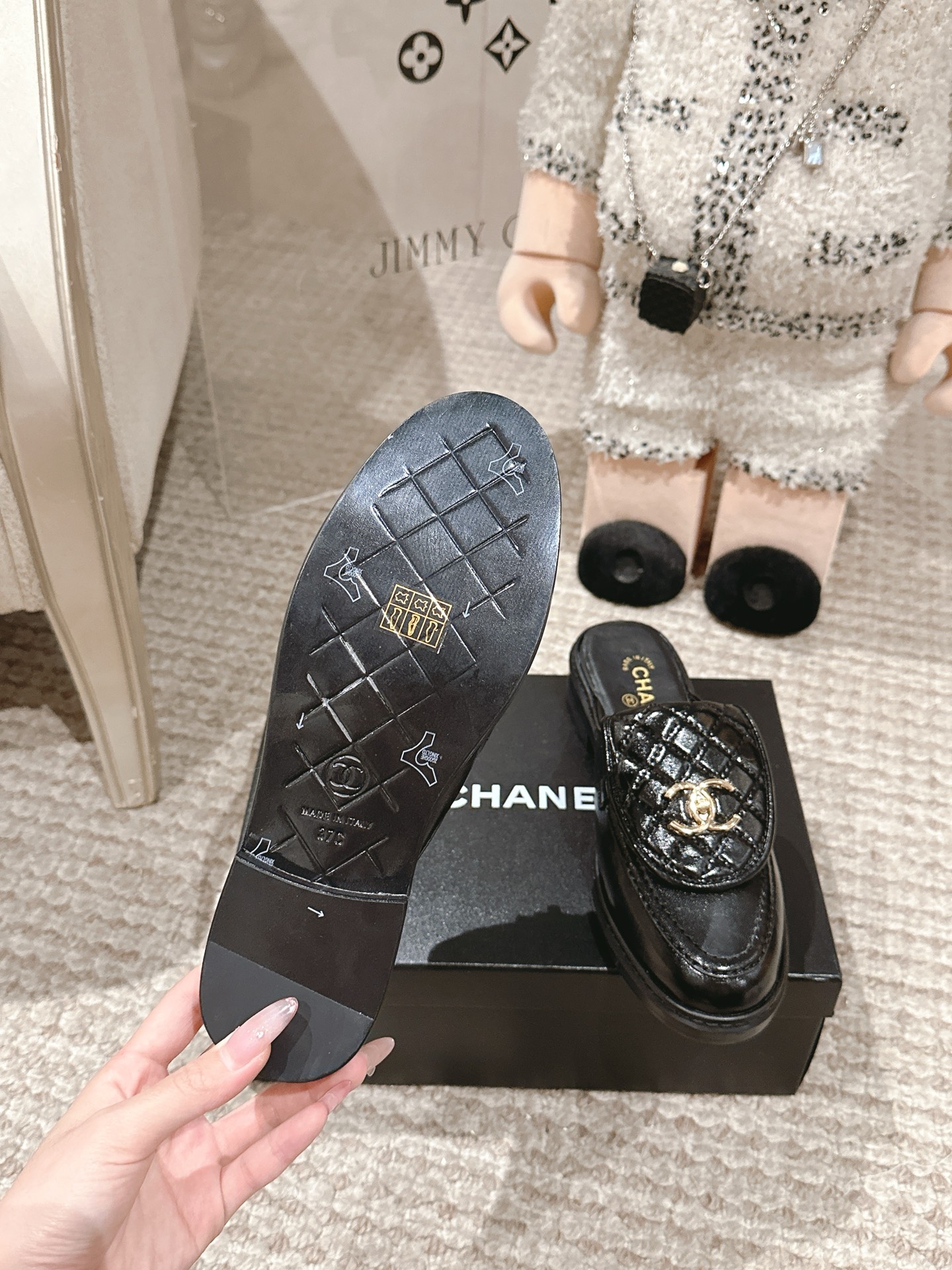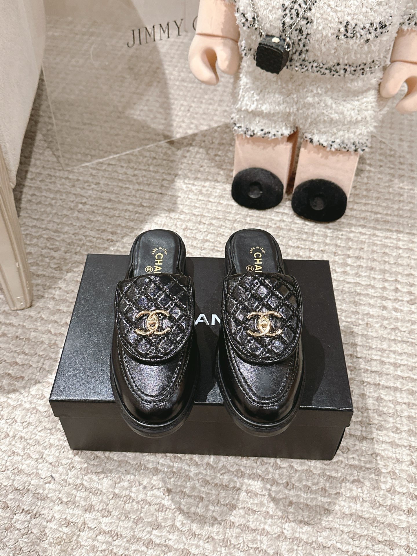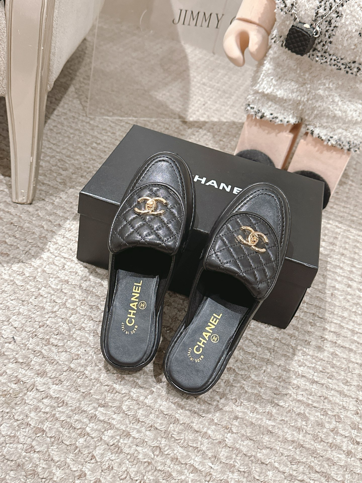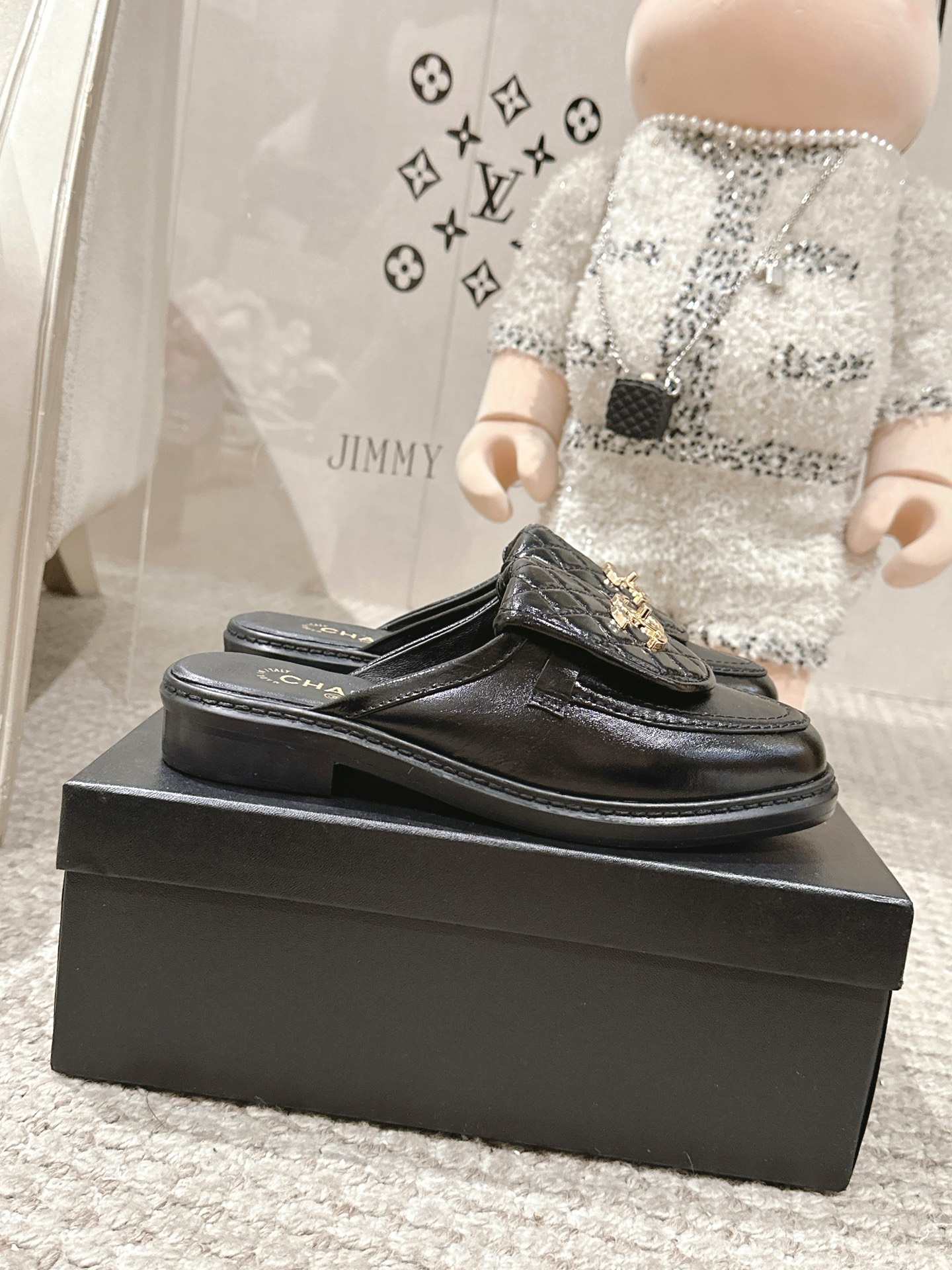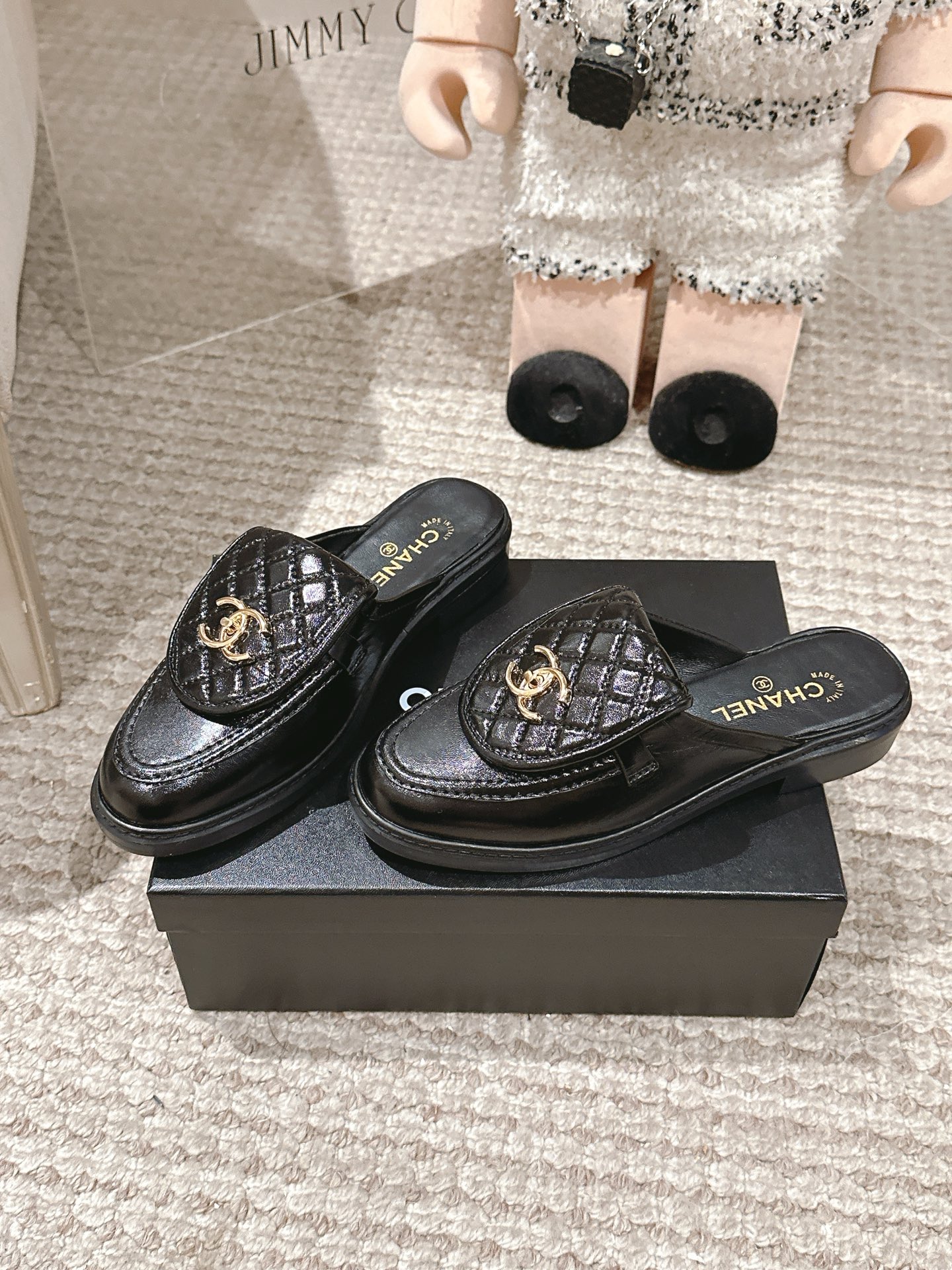 Chane*经典翻盖菱格半拖乐福鞋 经典百搭款 超级文艺风 半拖乐福鞋界天花板 上脚真的好乖 鞋面原版羊皮 内里垫脚丝绸羊皮 意大利真皮大底 码数35-40(34 41 42定做)
