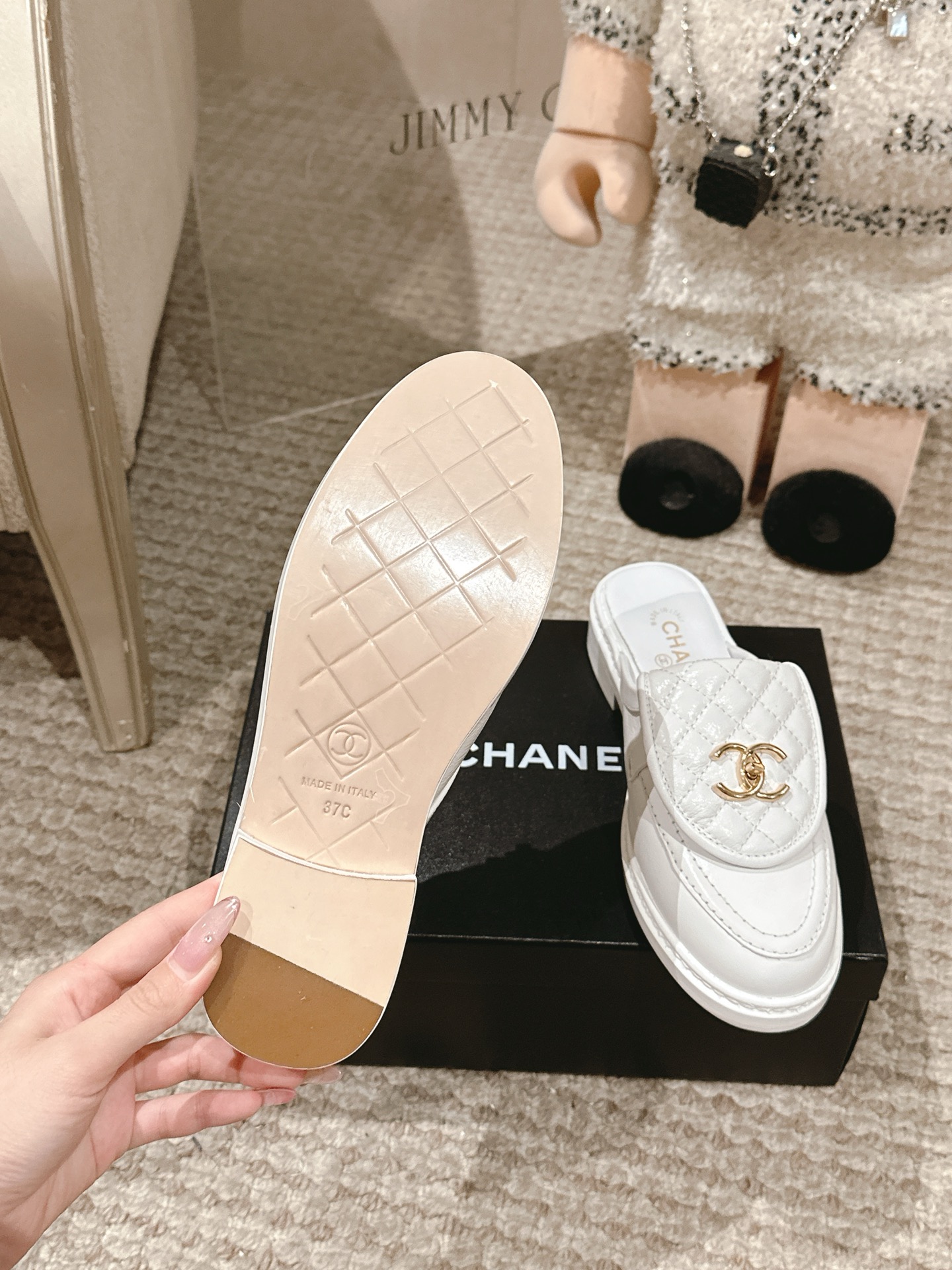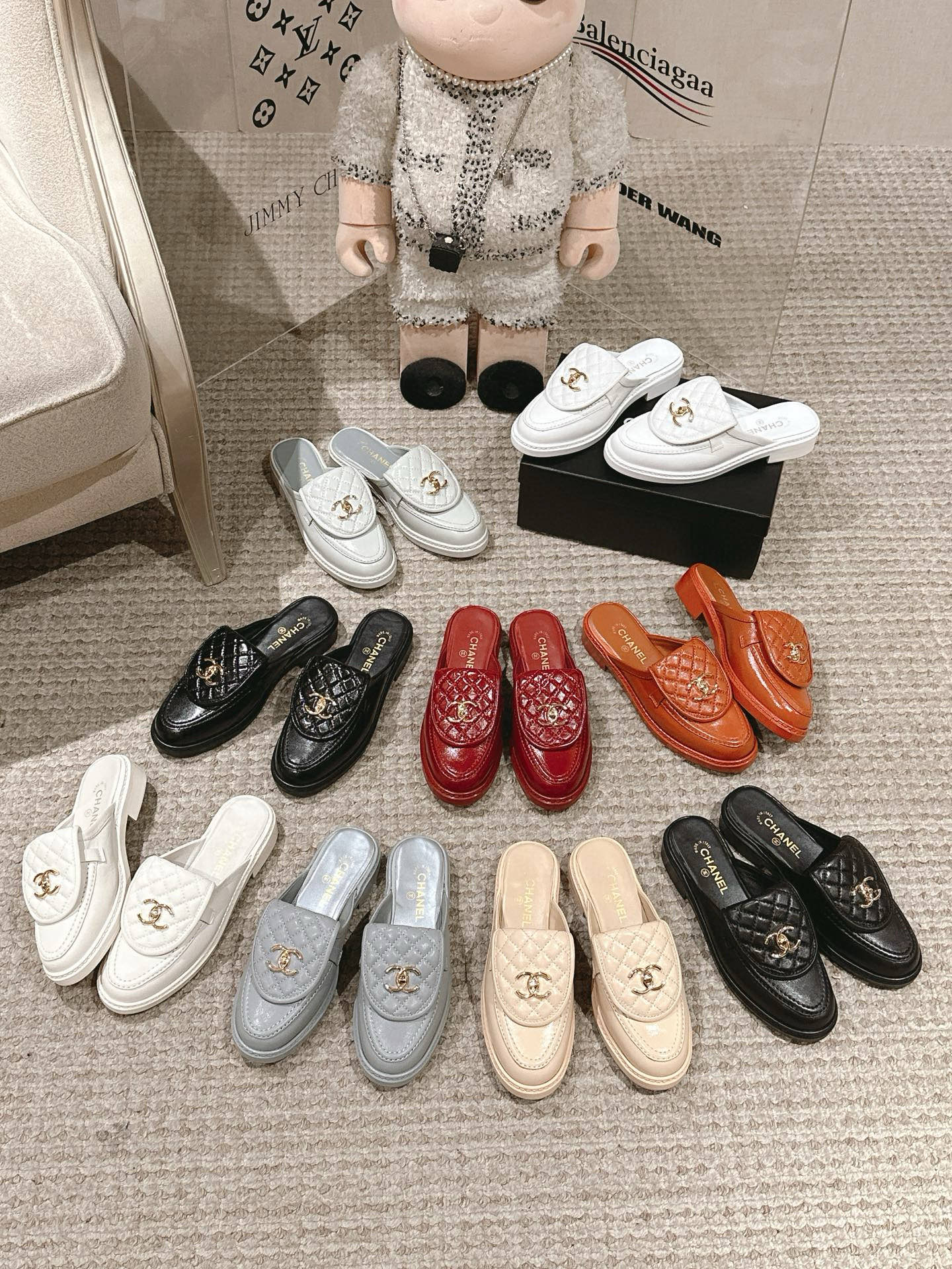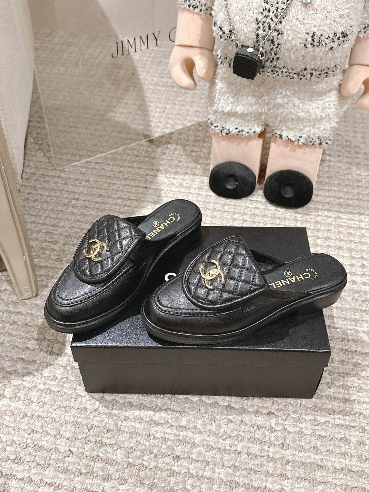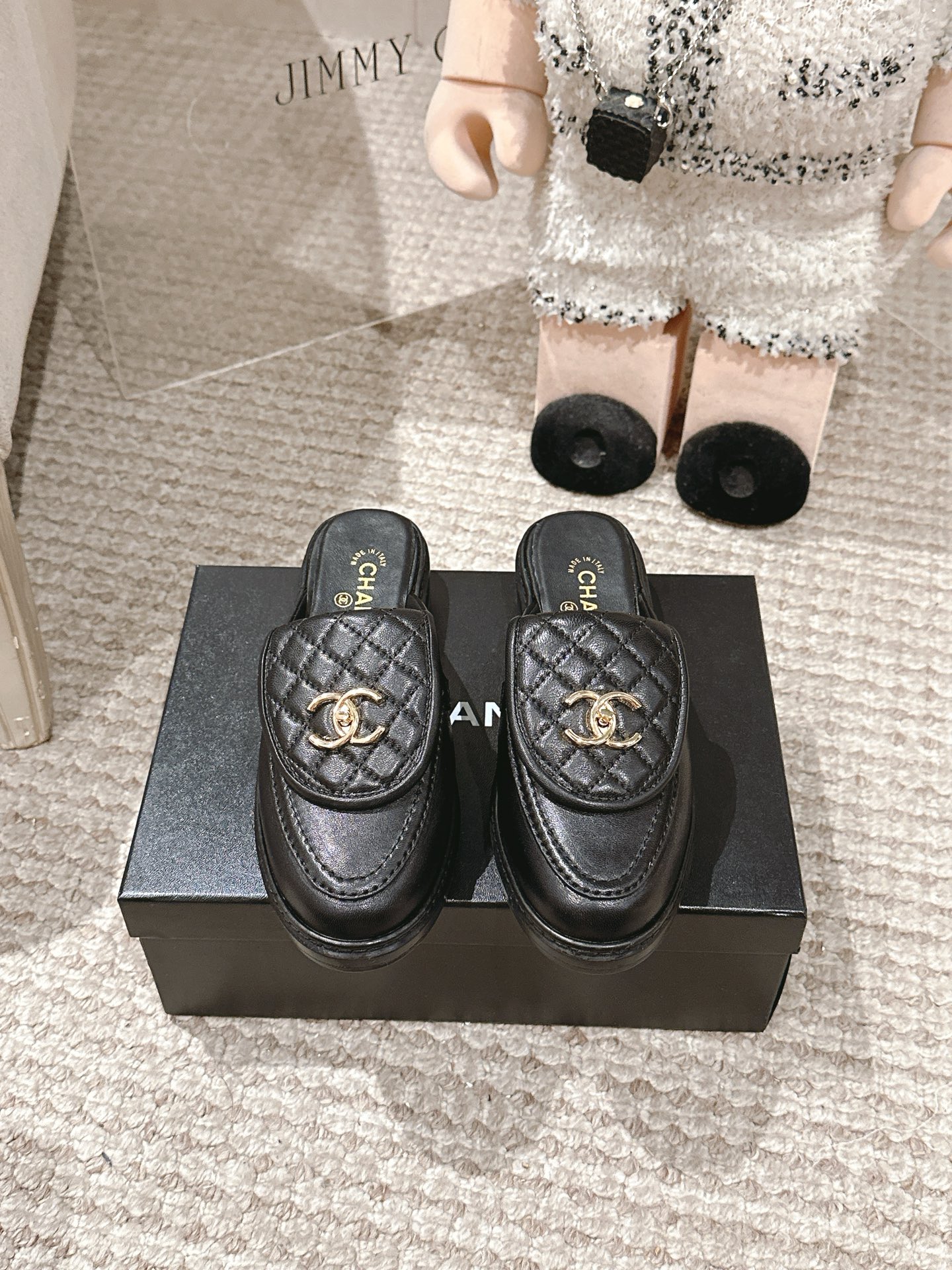 Chane*经典翻盖菱格半拖乐福鞋 经典百搭款 超级文艺风 半拖乐福鞋界天花板 上脚真的好乖 鞋面原版羊皮 内里垫脚丝绸羊皮 意大利真皮大底 码数35-40(34 41 42定做)