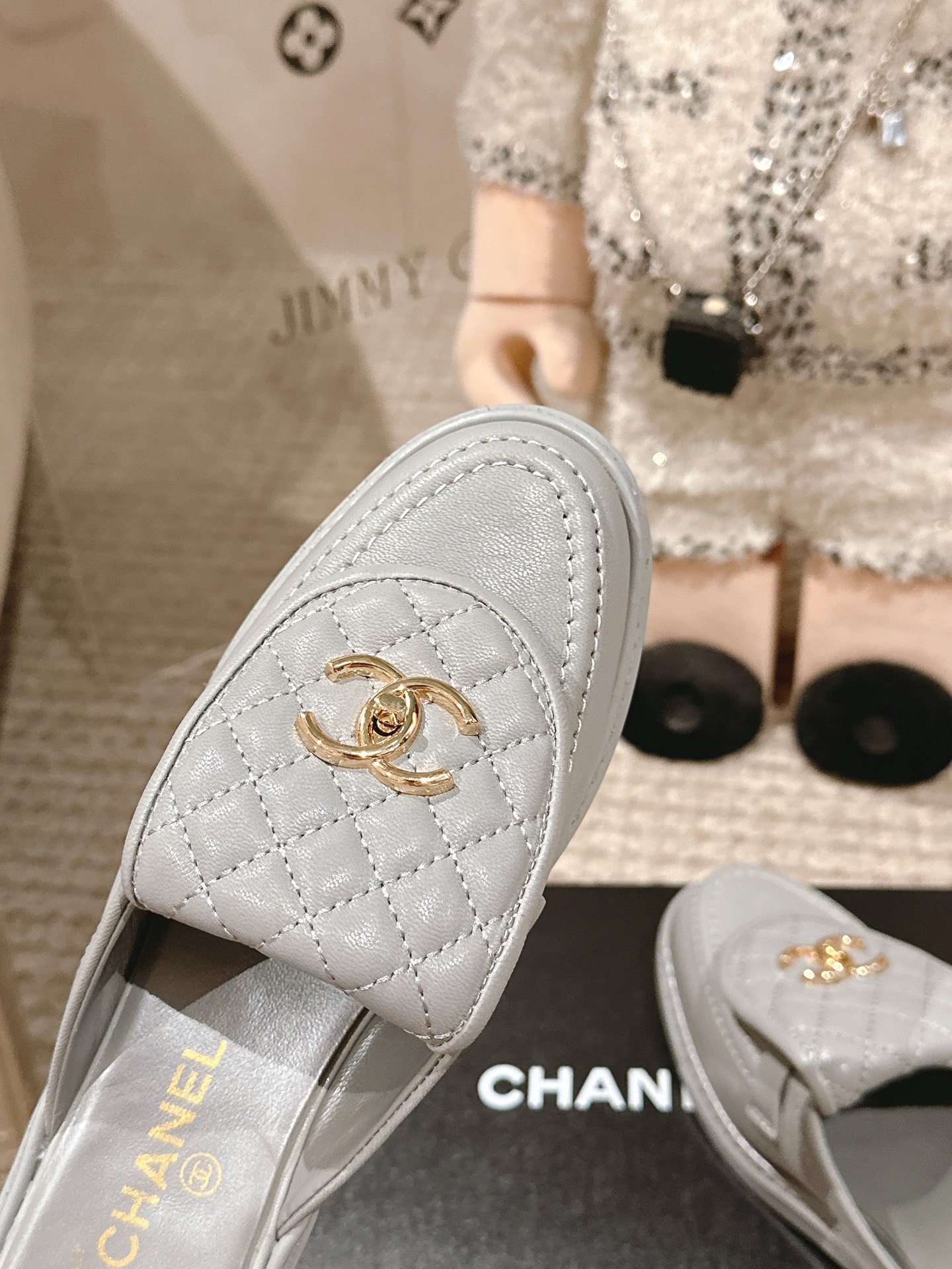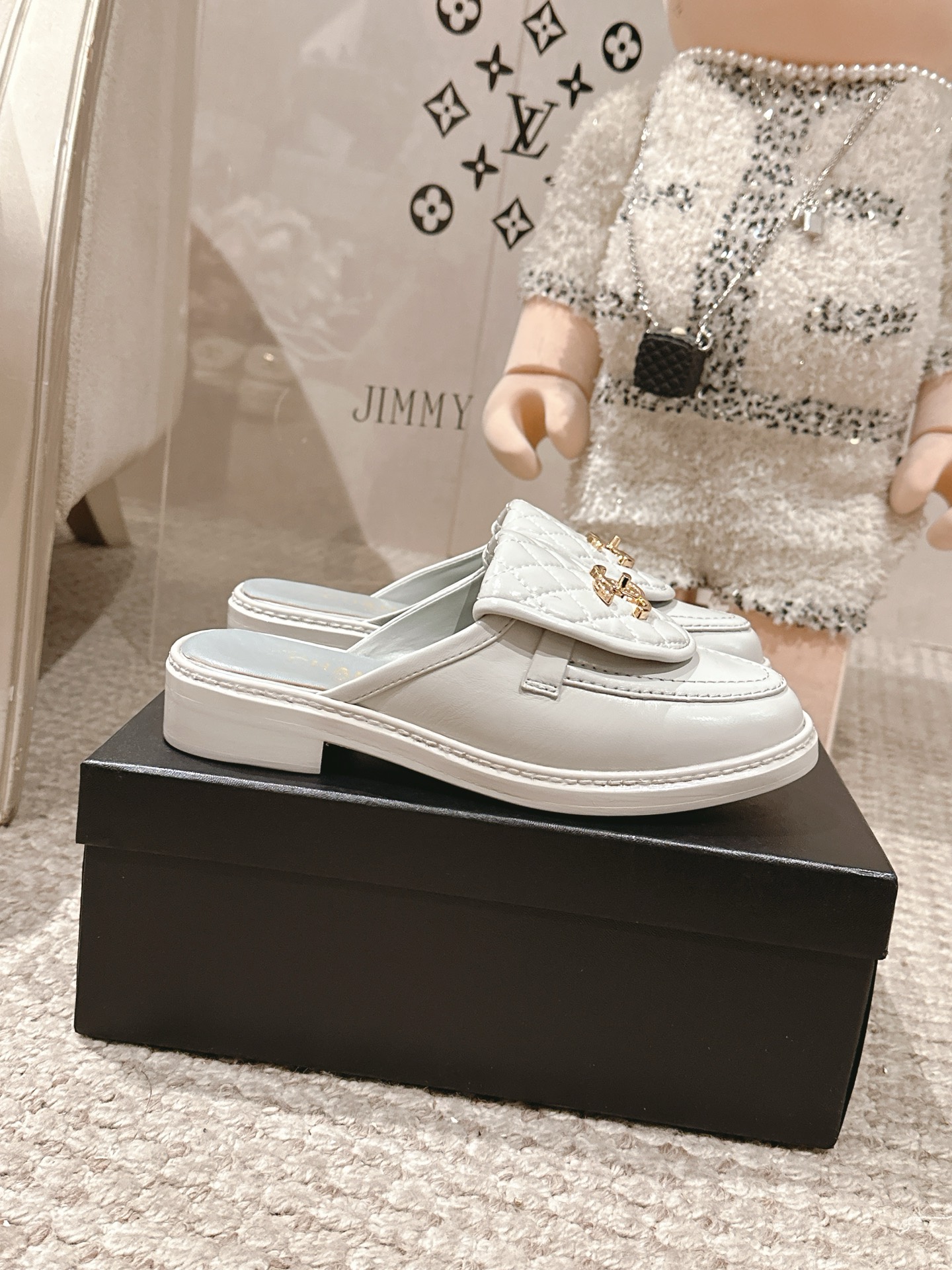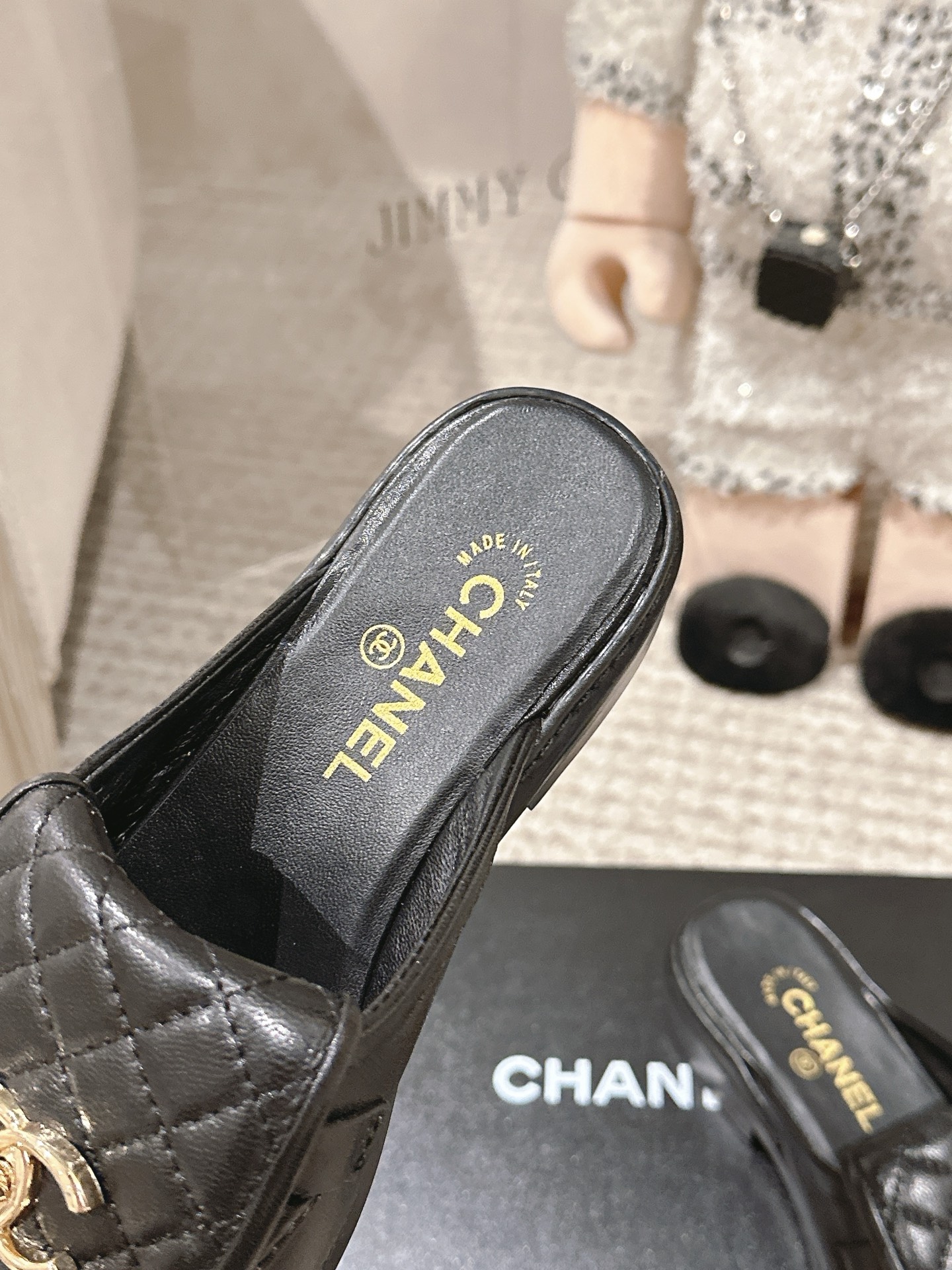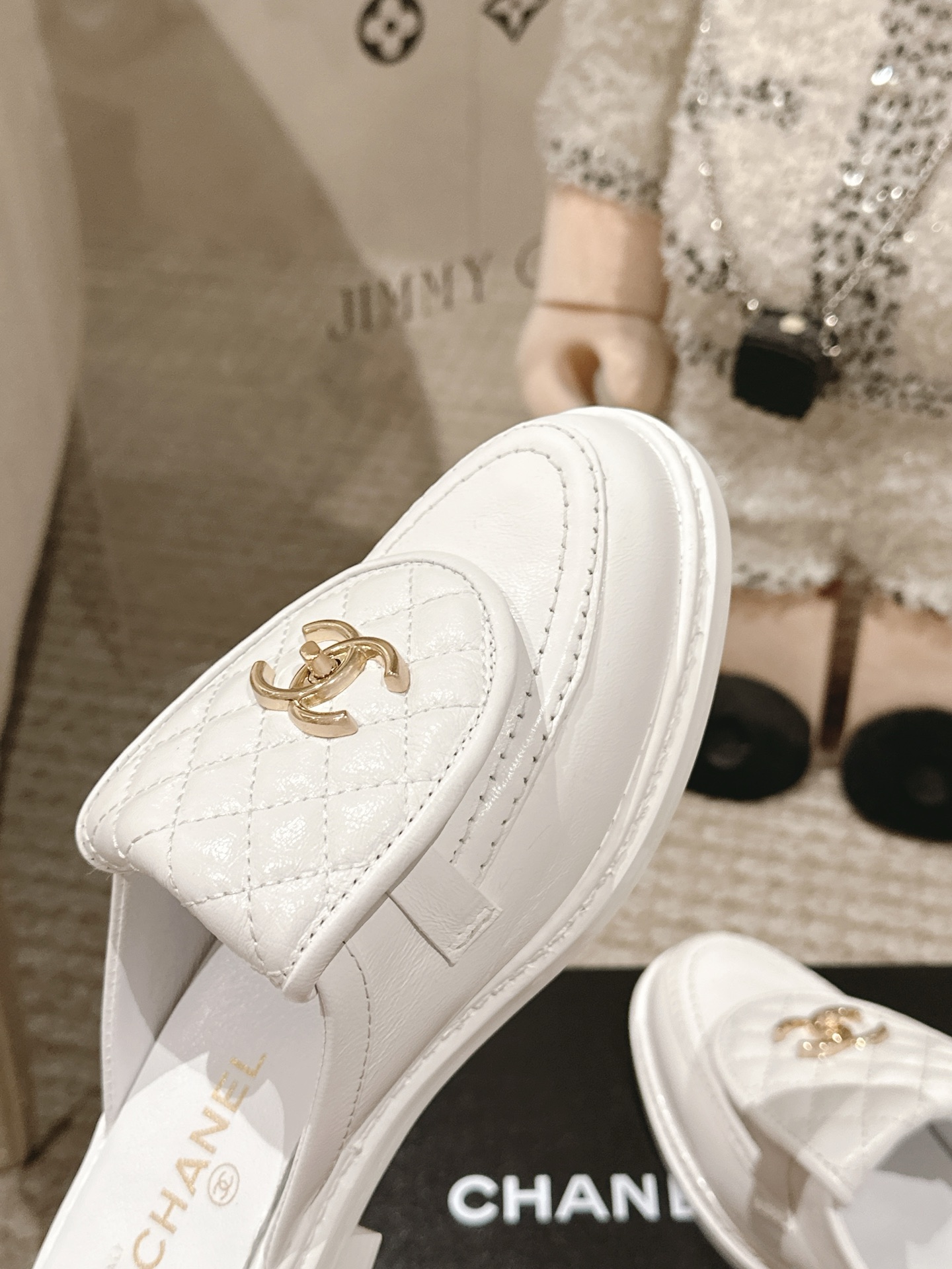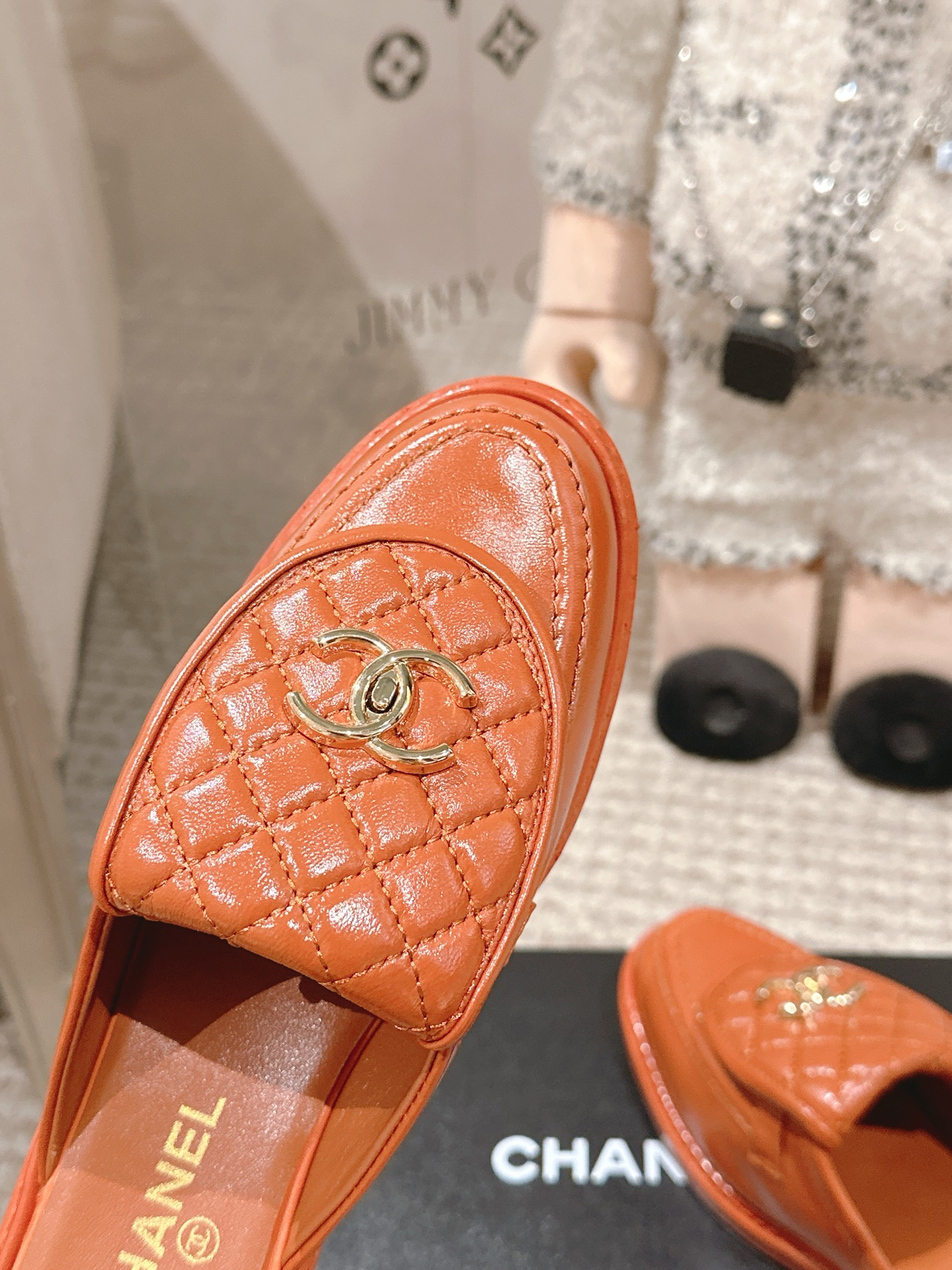 Chane*经典翻盖菱格半拖乐福鞋 经典百搭款 超级文艺风 半拖乐福鞋界天花板 上脚真的好乖 鞋面原版羊皮 内里垫脚丝绸羊皮 意大利真皮大底 码数35-40(34 41 42定做)