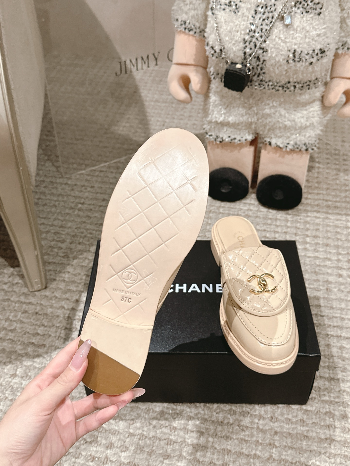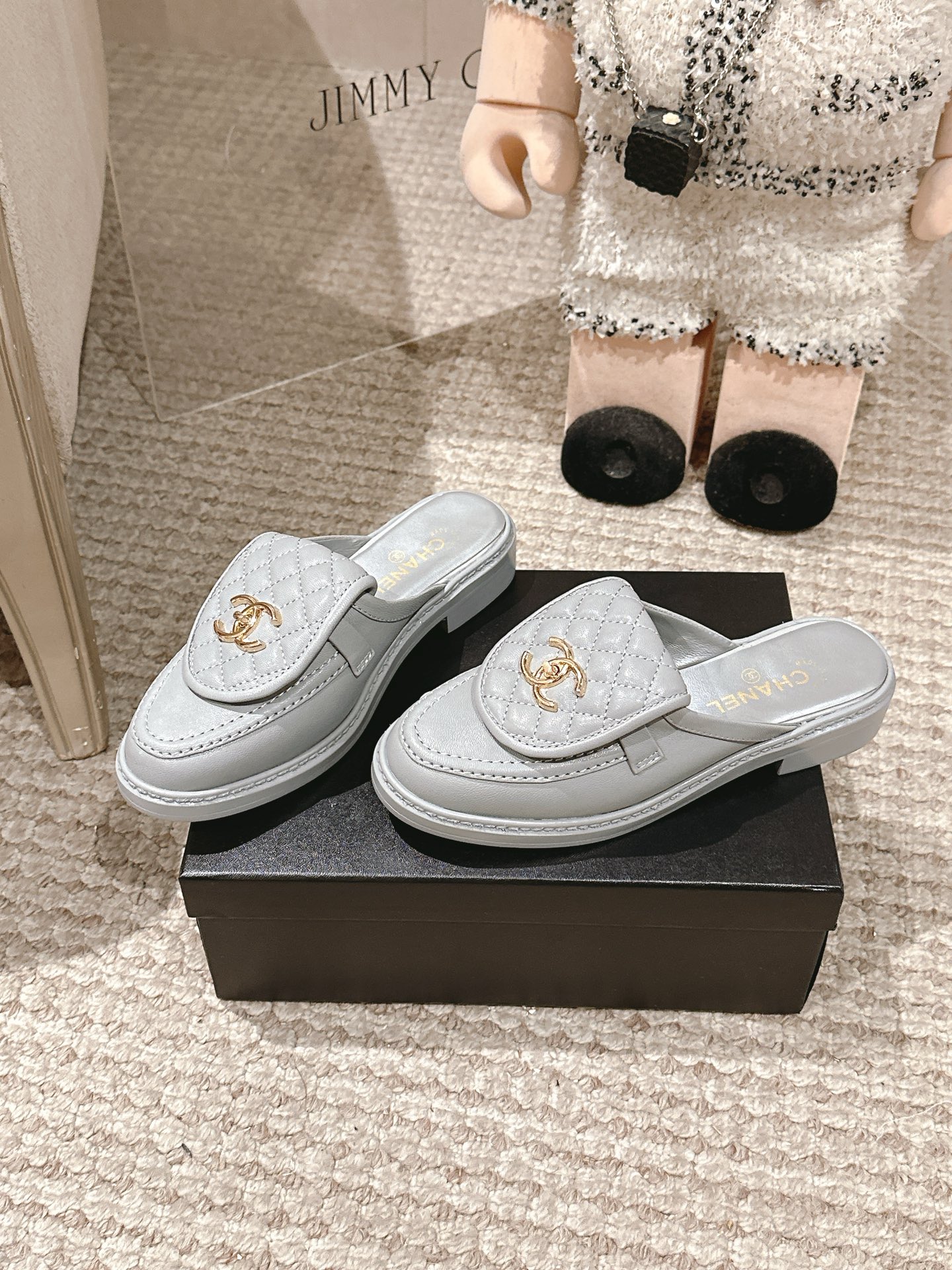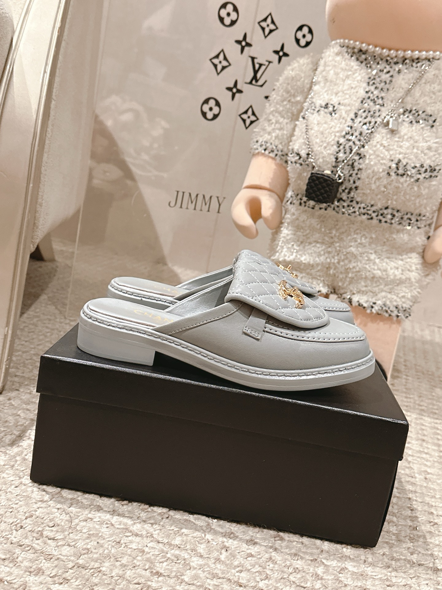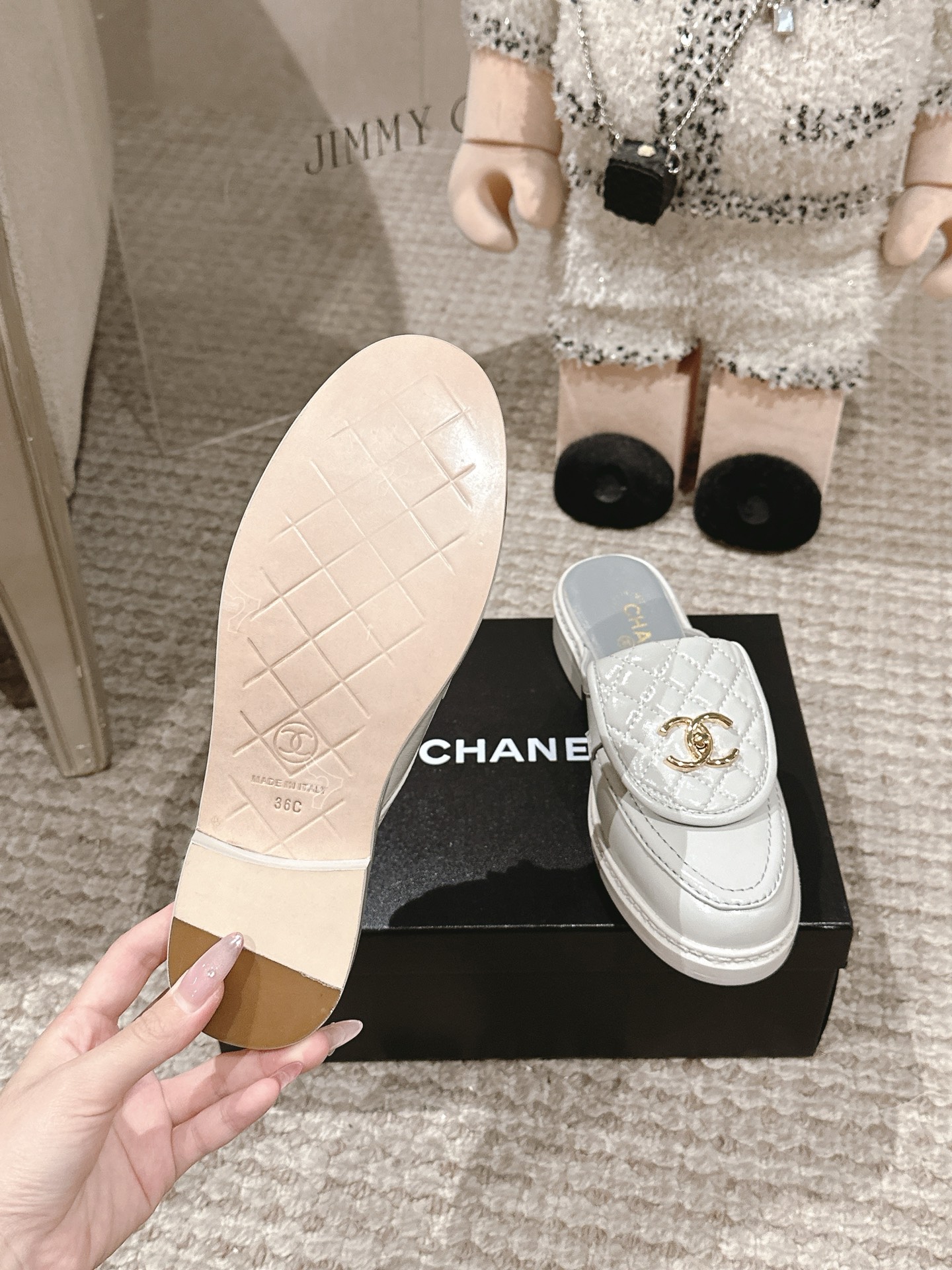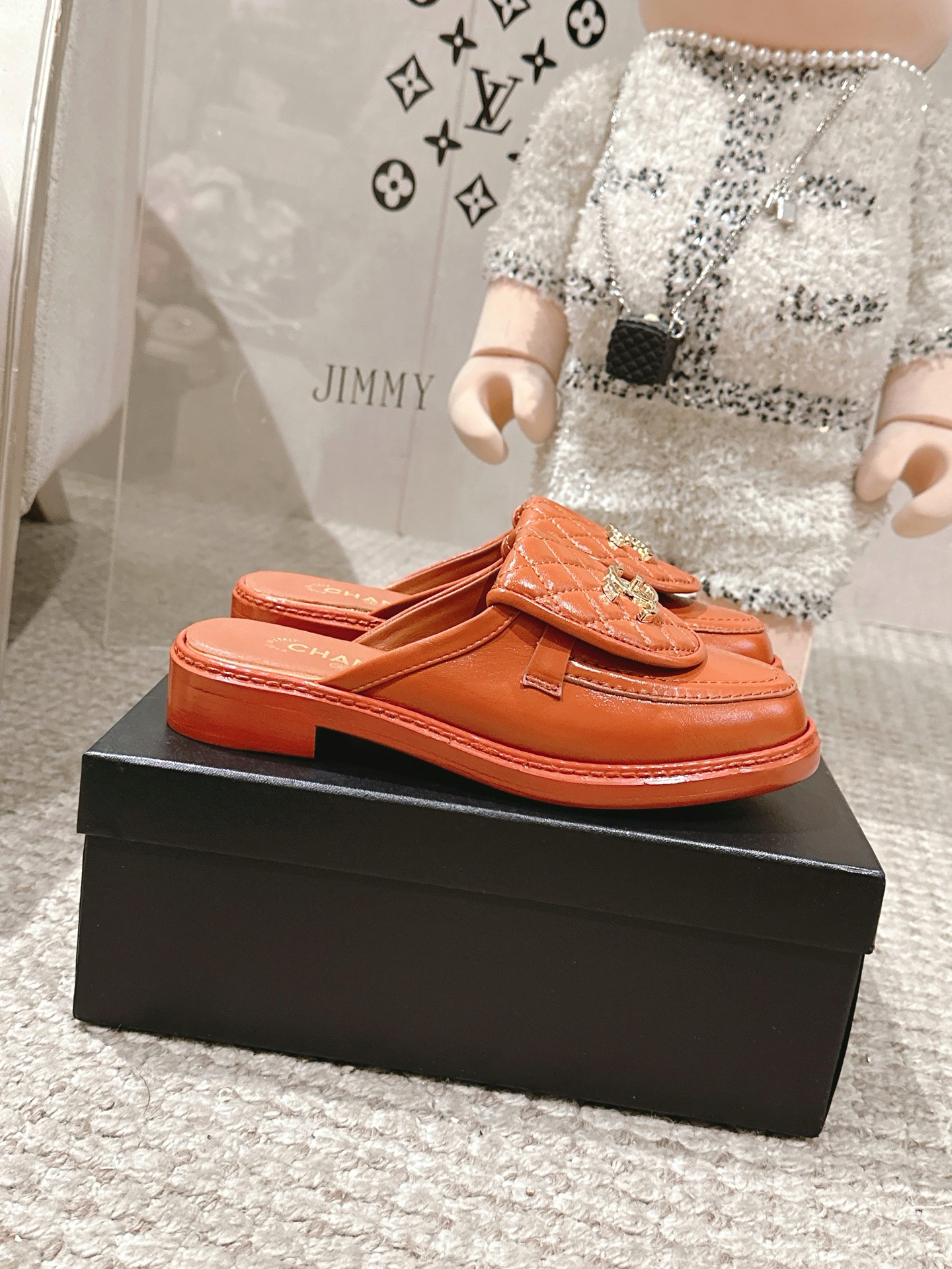 Chane*经典翻盖菱格半拖乐福鞋 经典百搭款 超级文艺风 半拖乐福鞋界天花板 上脚真的好乖 鞋面原版羊皮 内里垫脚丝绸羊皮 意大利真皮大底 码数35-40(34 41 42定做)