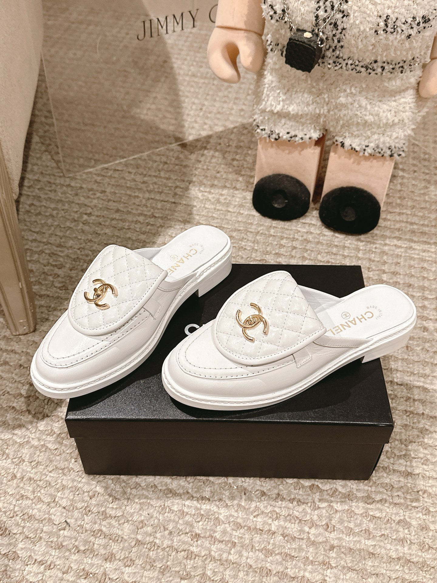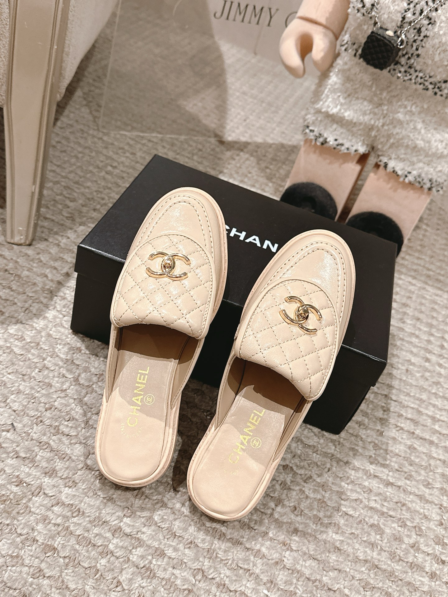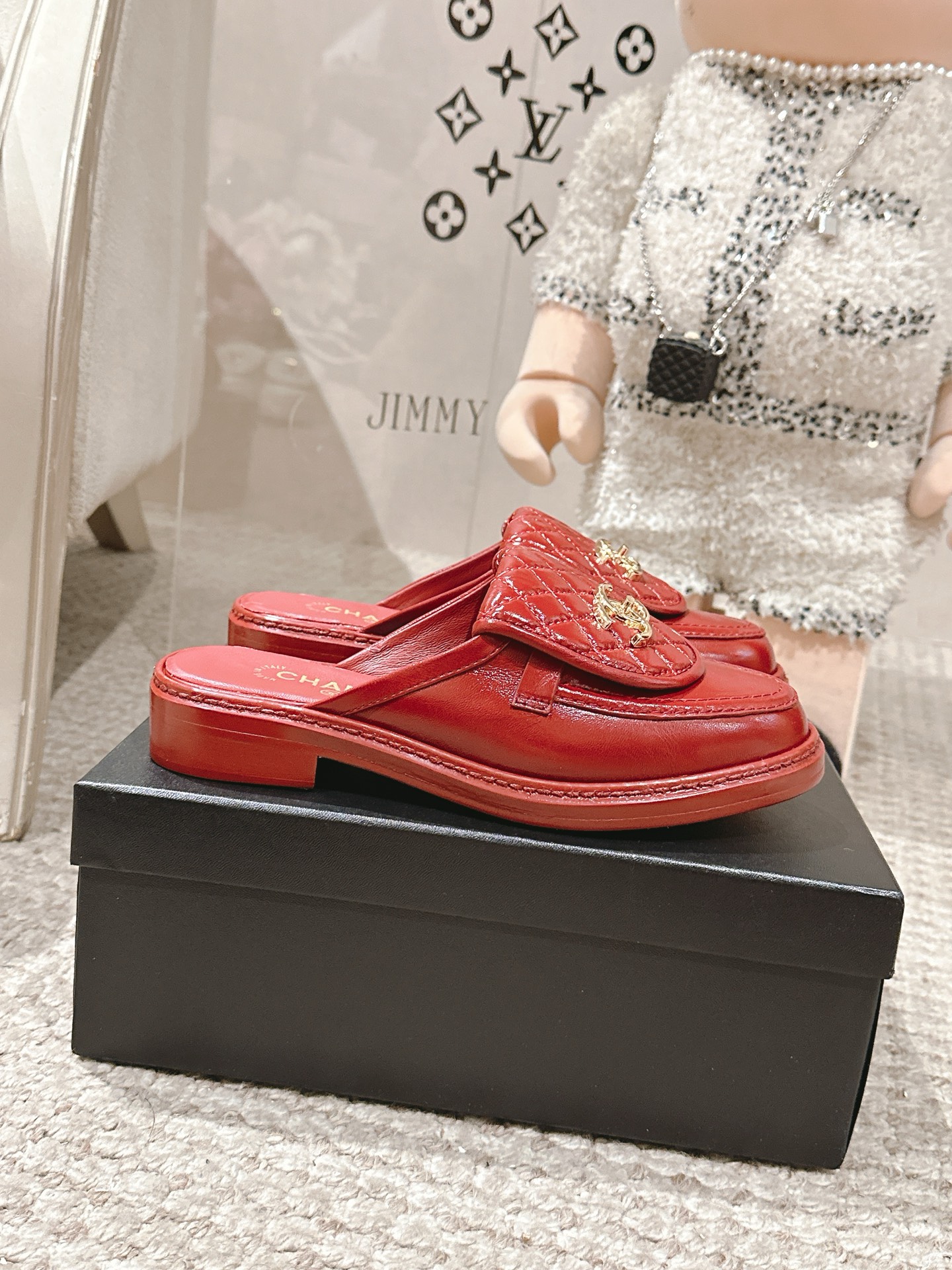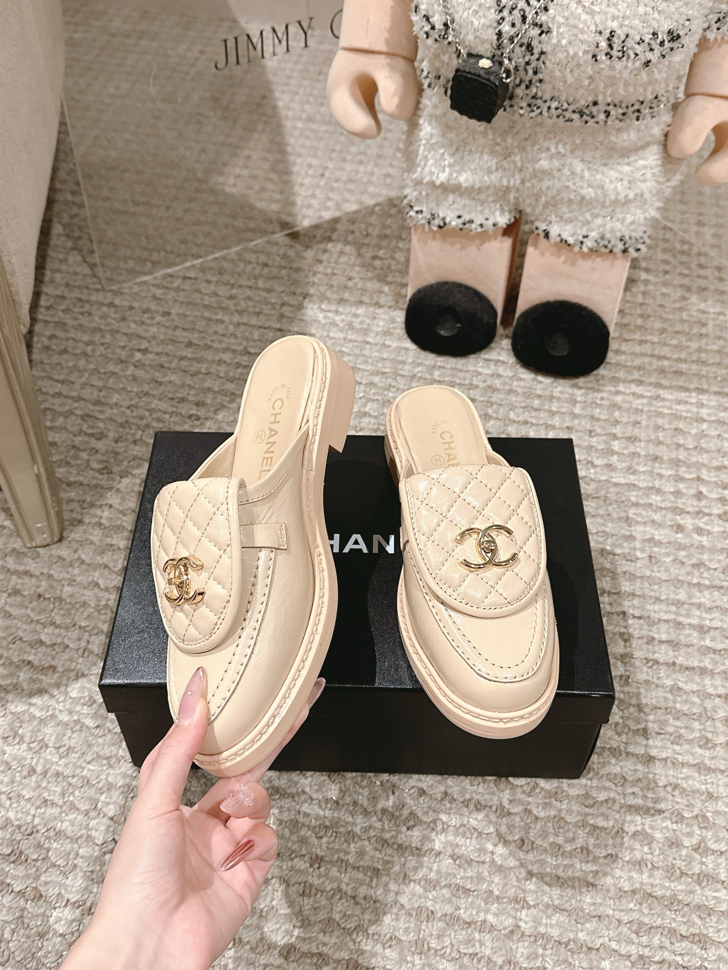 Chane*经典翻盖菱格半拖乐福鞋 经典百搭款 超级文艺风 半拖乐福鞋界天花板 上脚真的好乖 鞋面原版羊皮 内里垫脚丝绸羊皮 意大利真皮大底 码数35-40(34 41 42定做)