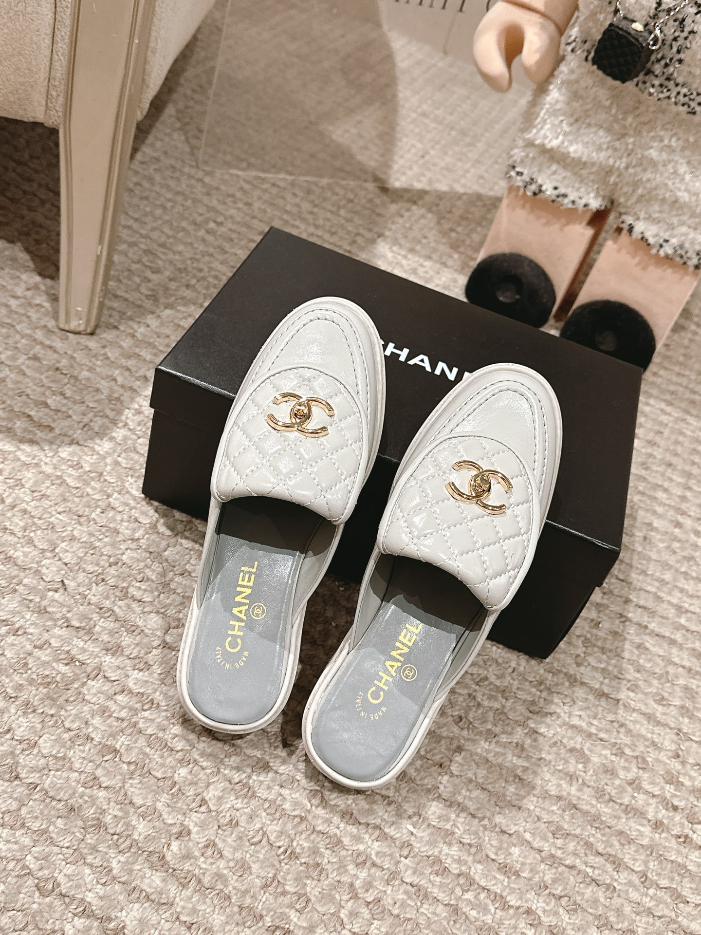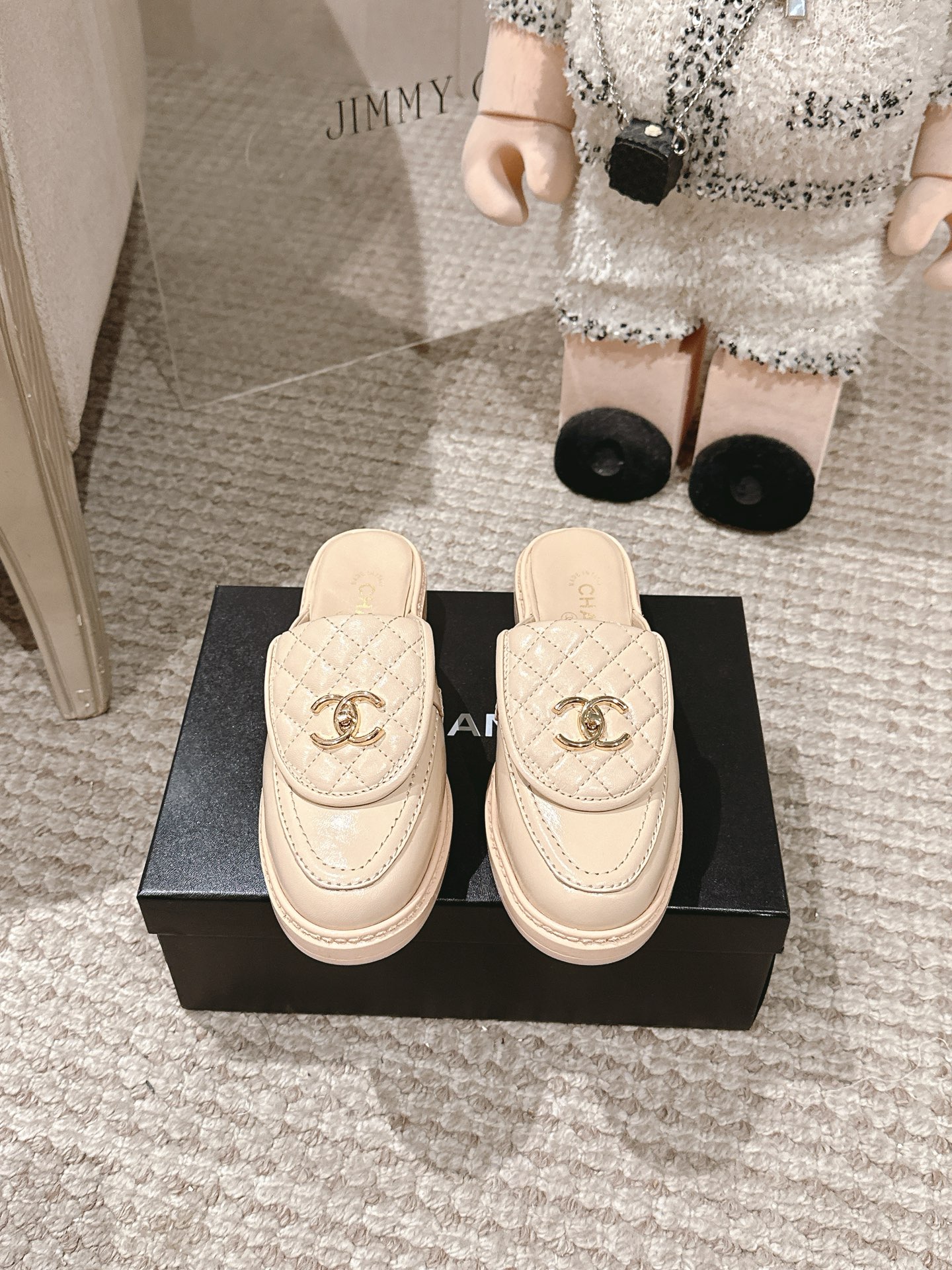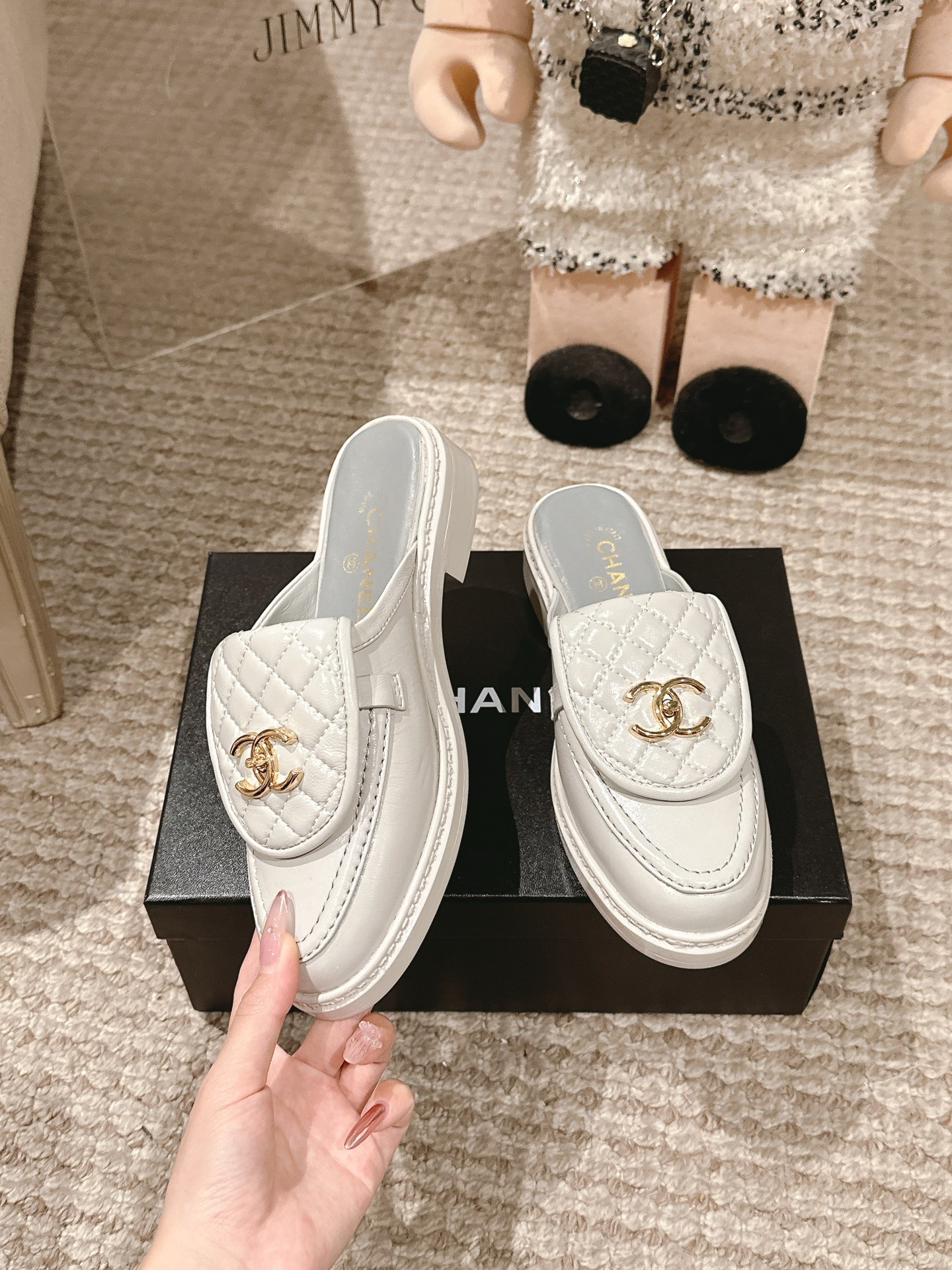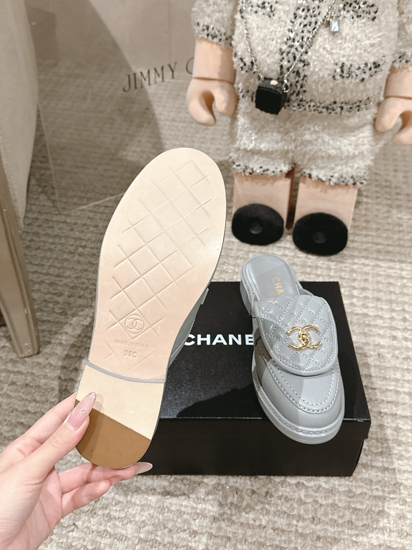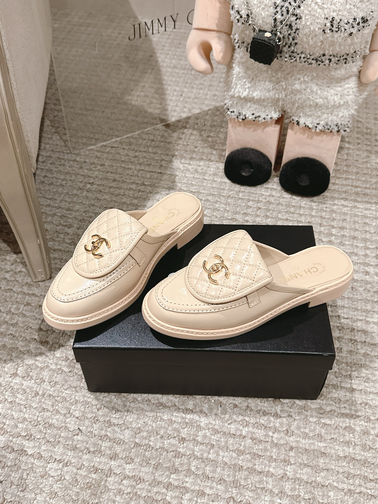 Chane*经典翻盖菱格半拖乐福鞋 经典百搭款 超级文艺风 半拖乐福鞋界天花板 上脚真的好乖 鞋面原版羊皮 内里垫脚丝绸羊皮 意大利真皮大底 码数35-40(34 41 42定做)