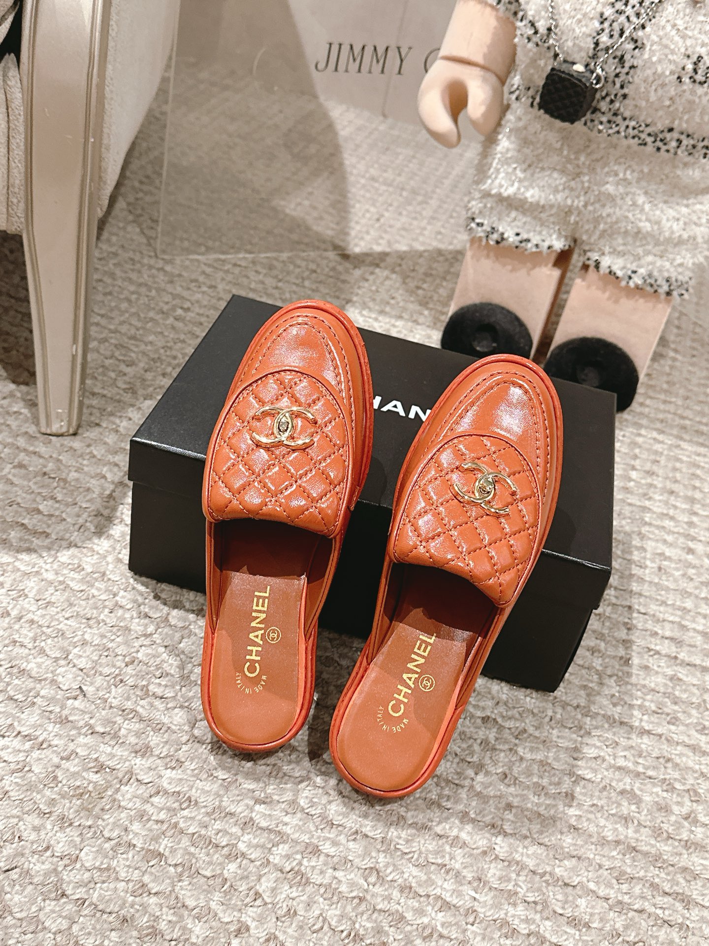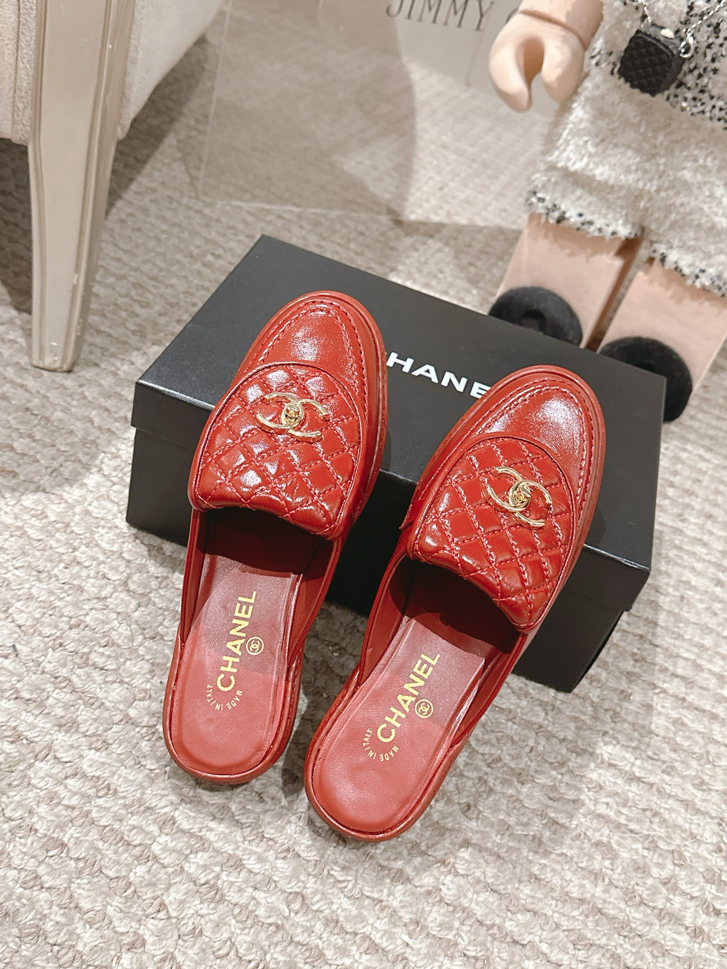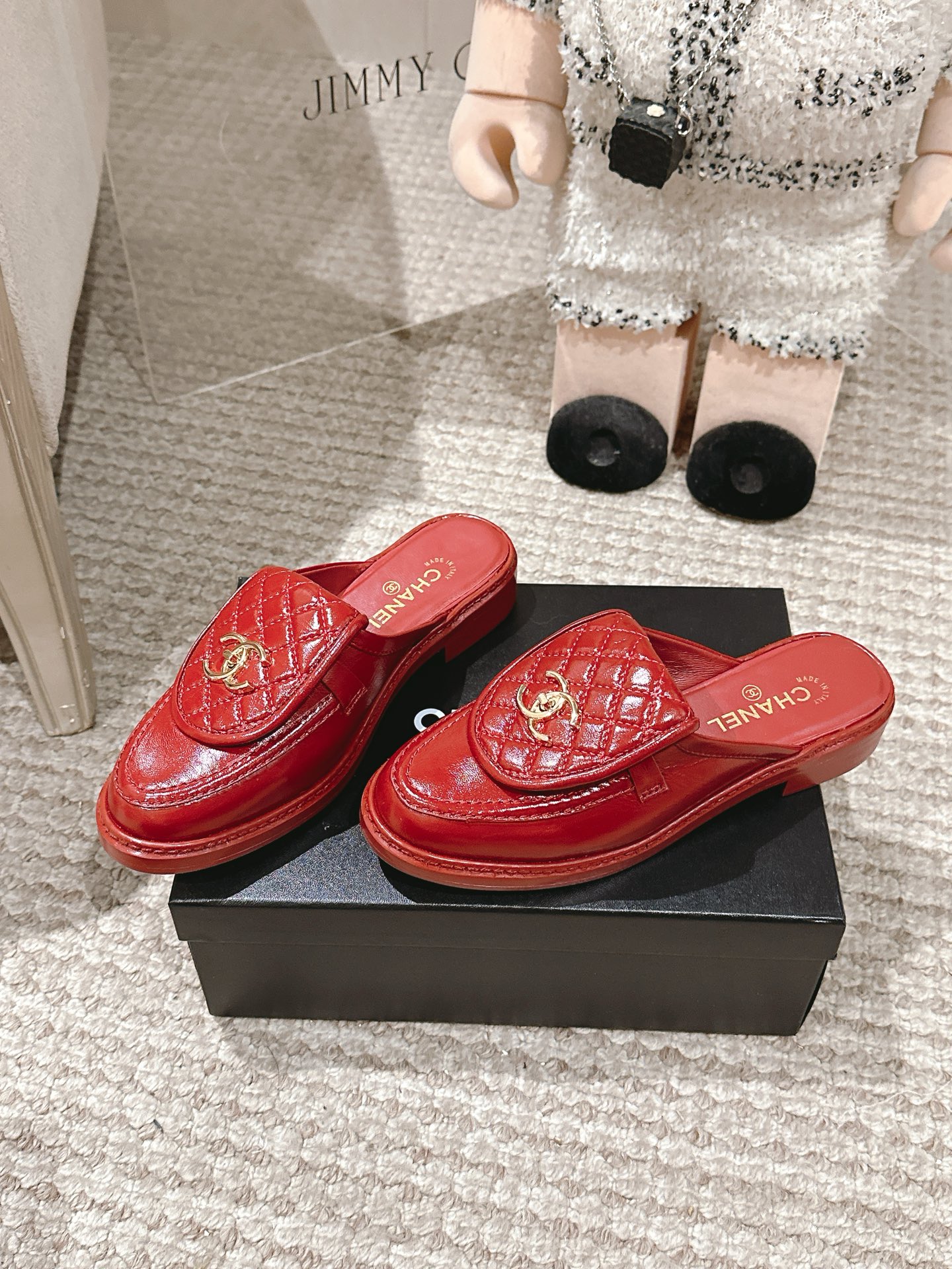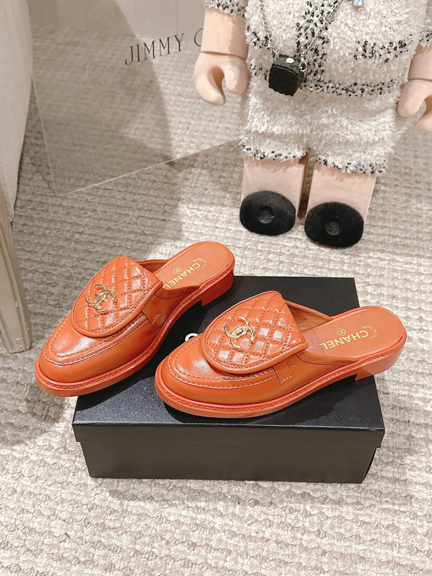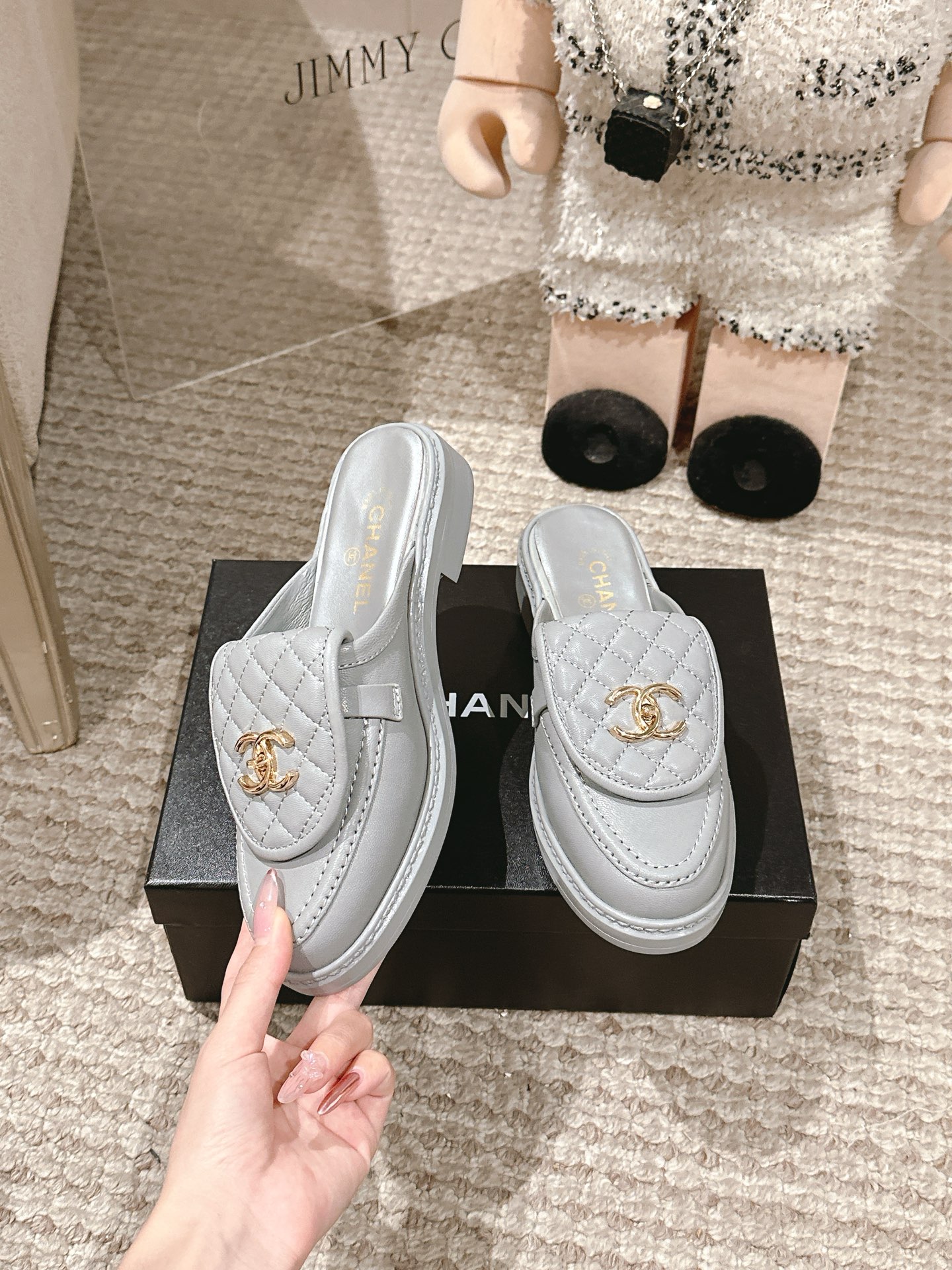 Chane*经典翻盖菱格半拖乐福鞋 经典百搭款 超级文艺风 半拖乐福鞋界天花板 上脚真的好乖 鞋面原版羊皮 内里垫脚丝绸羊皮 意大利真皮大底 码数35-40(34 41 42定做)