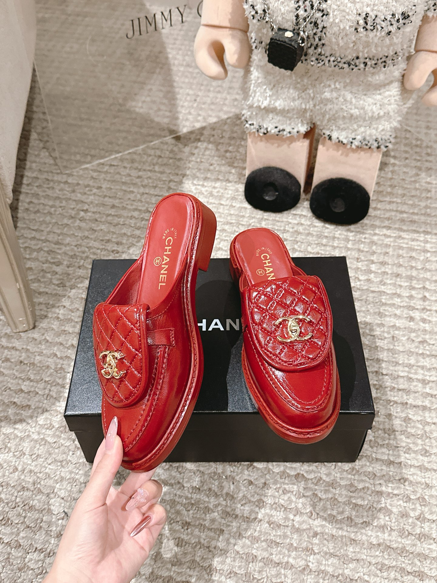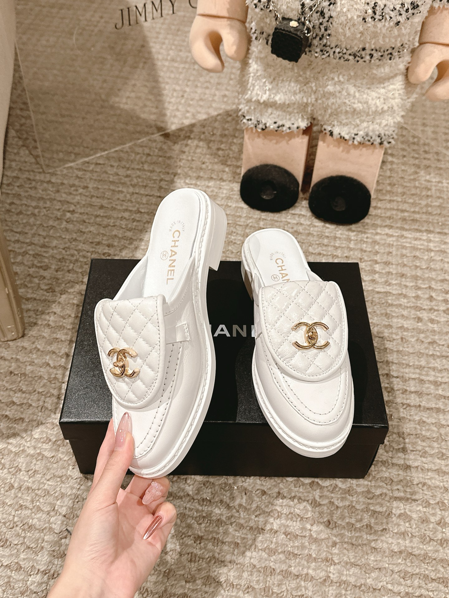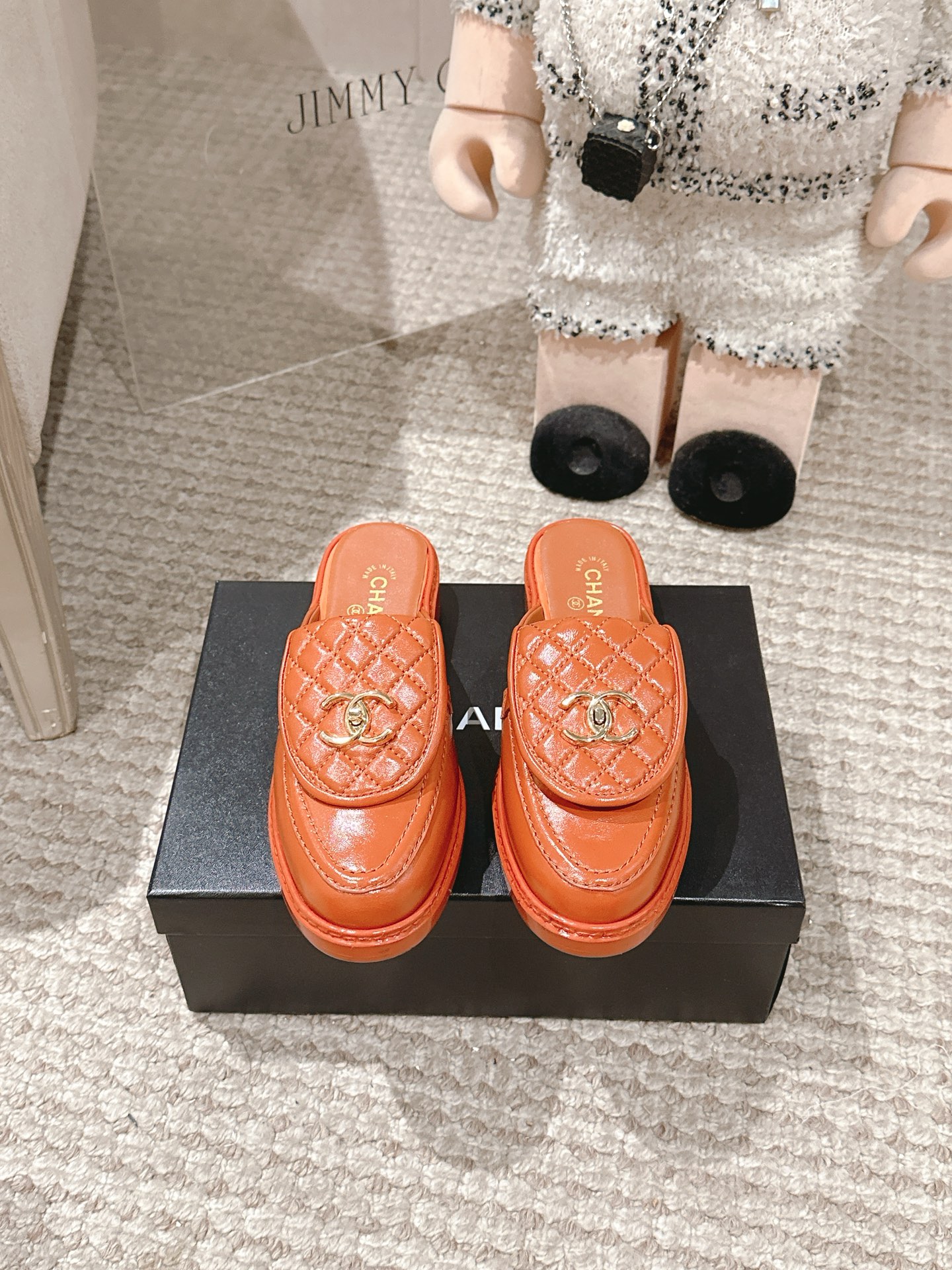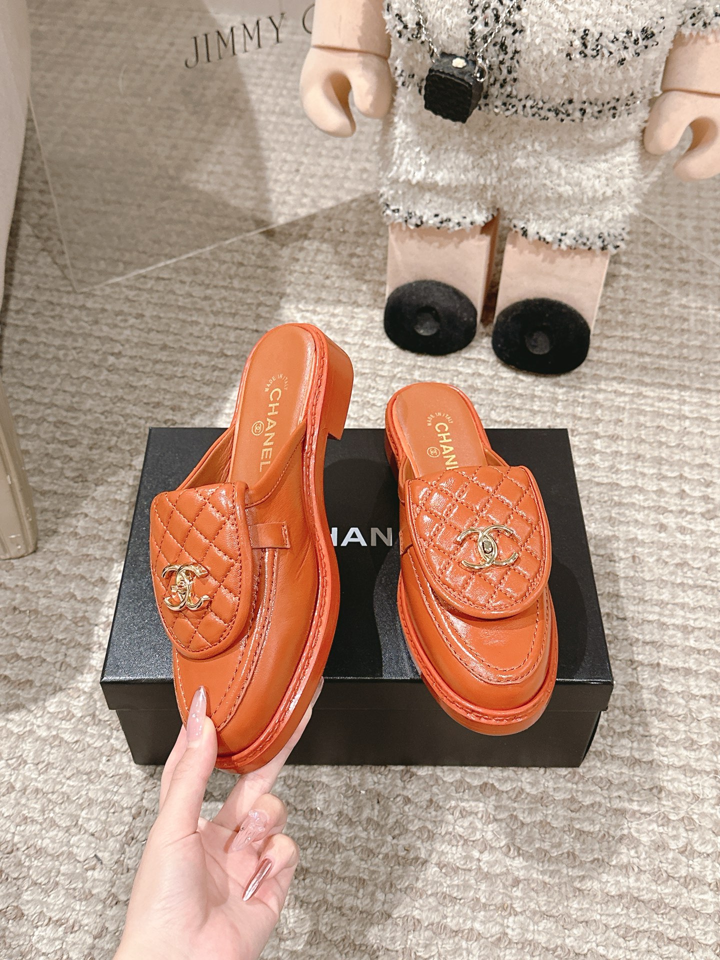 Chane*经典翻盖菱格半拖乐福鞋 经典百搭款 超级文艺风 半拖乐福鞋界天花板 上脚真的好乖 鞋面原版羊皮 内里垫脚丝绸羊皮 意大利真皮大底 码数35-40(34 41 42定做)