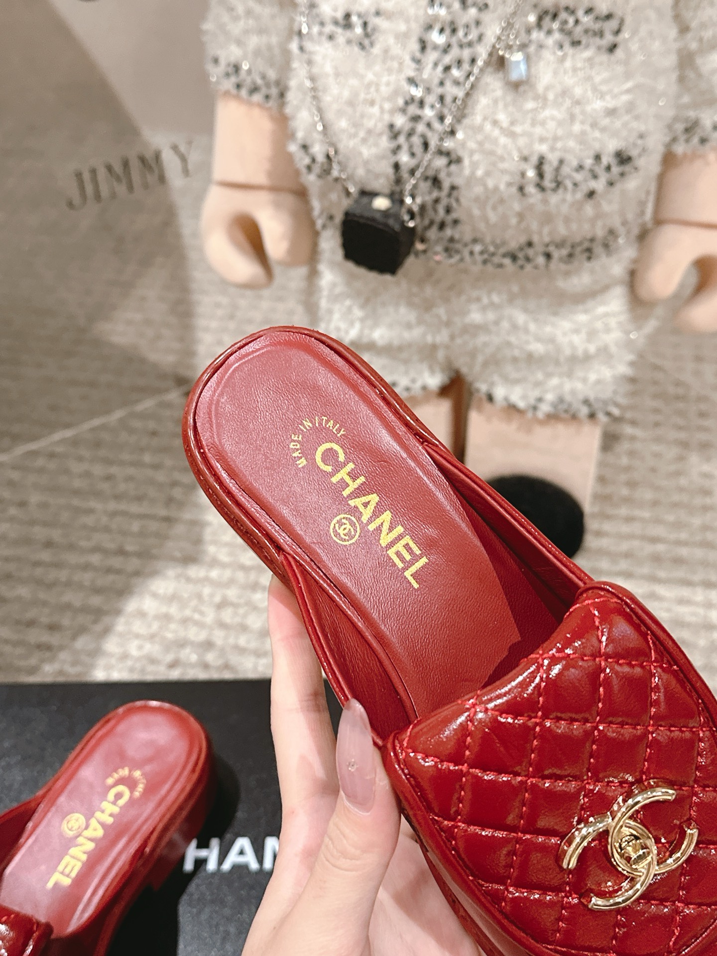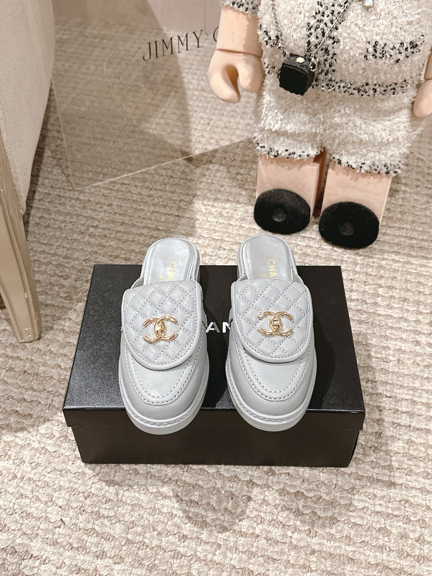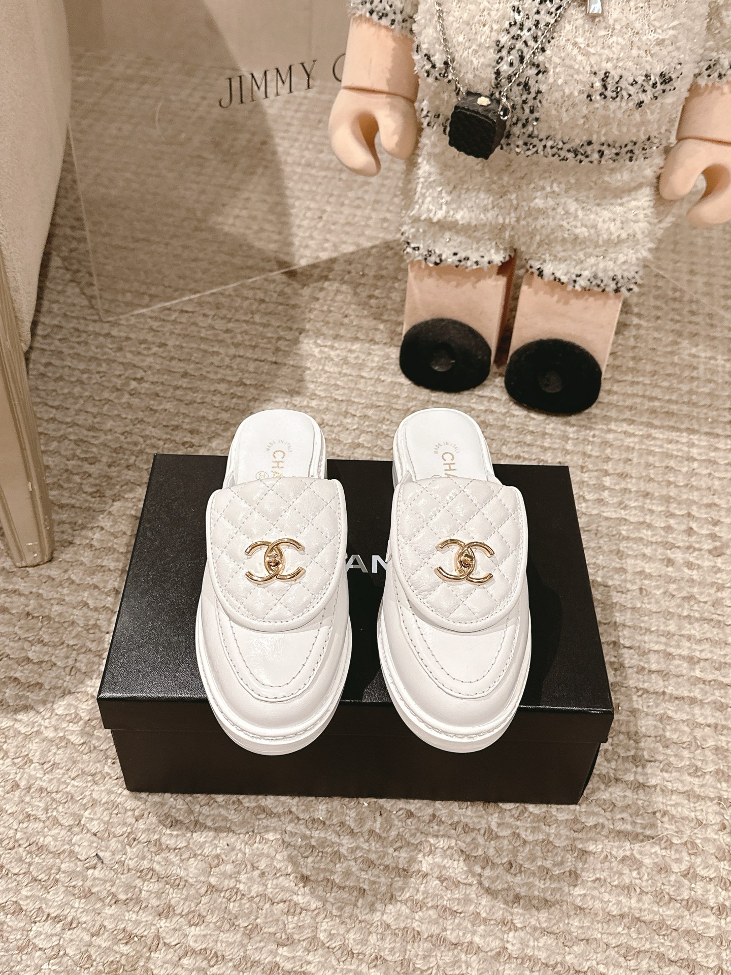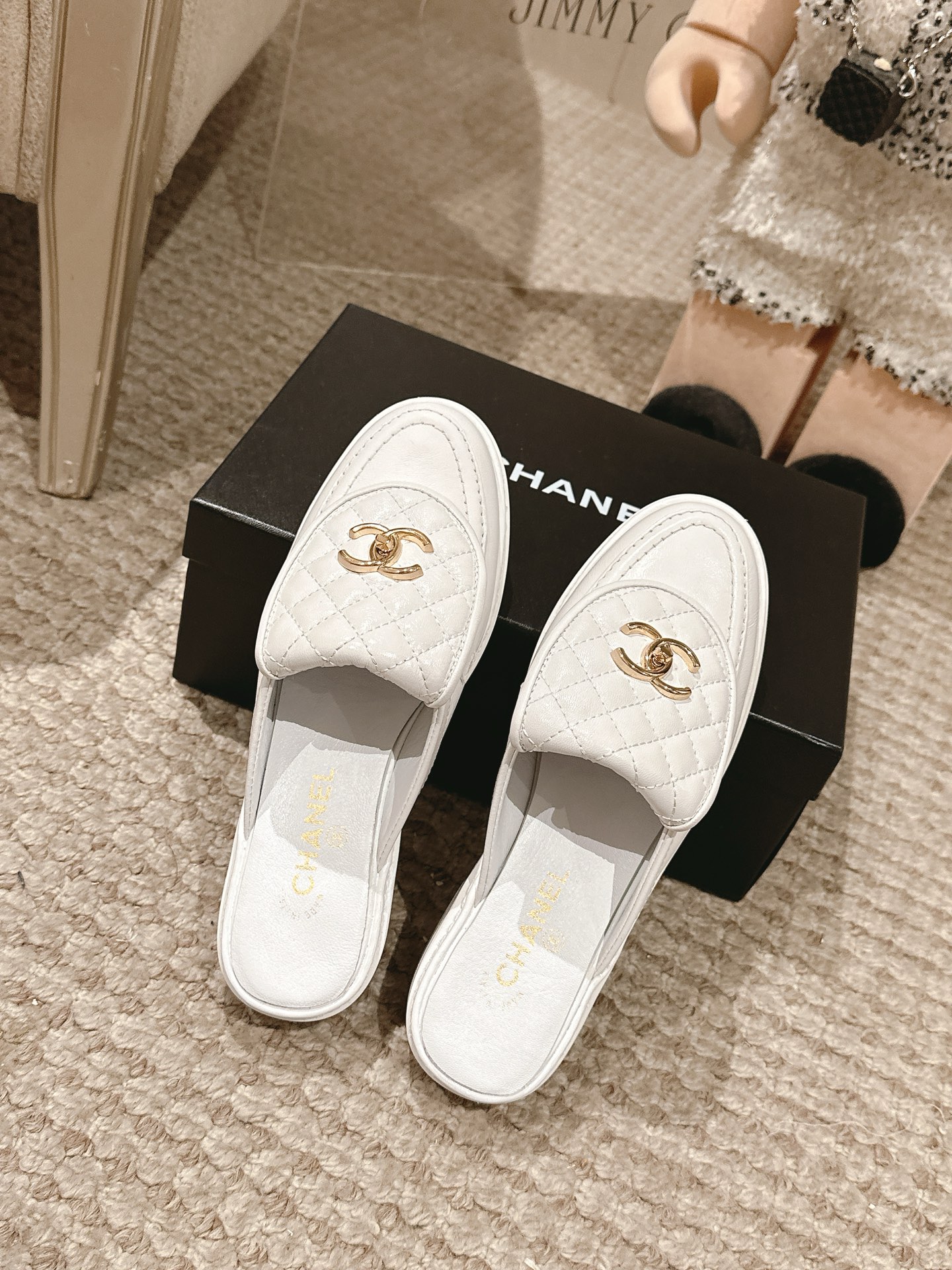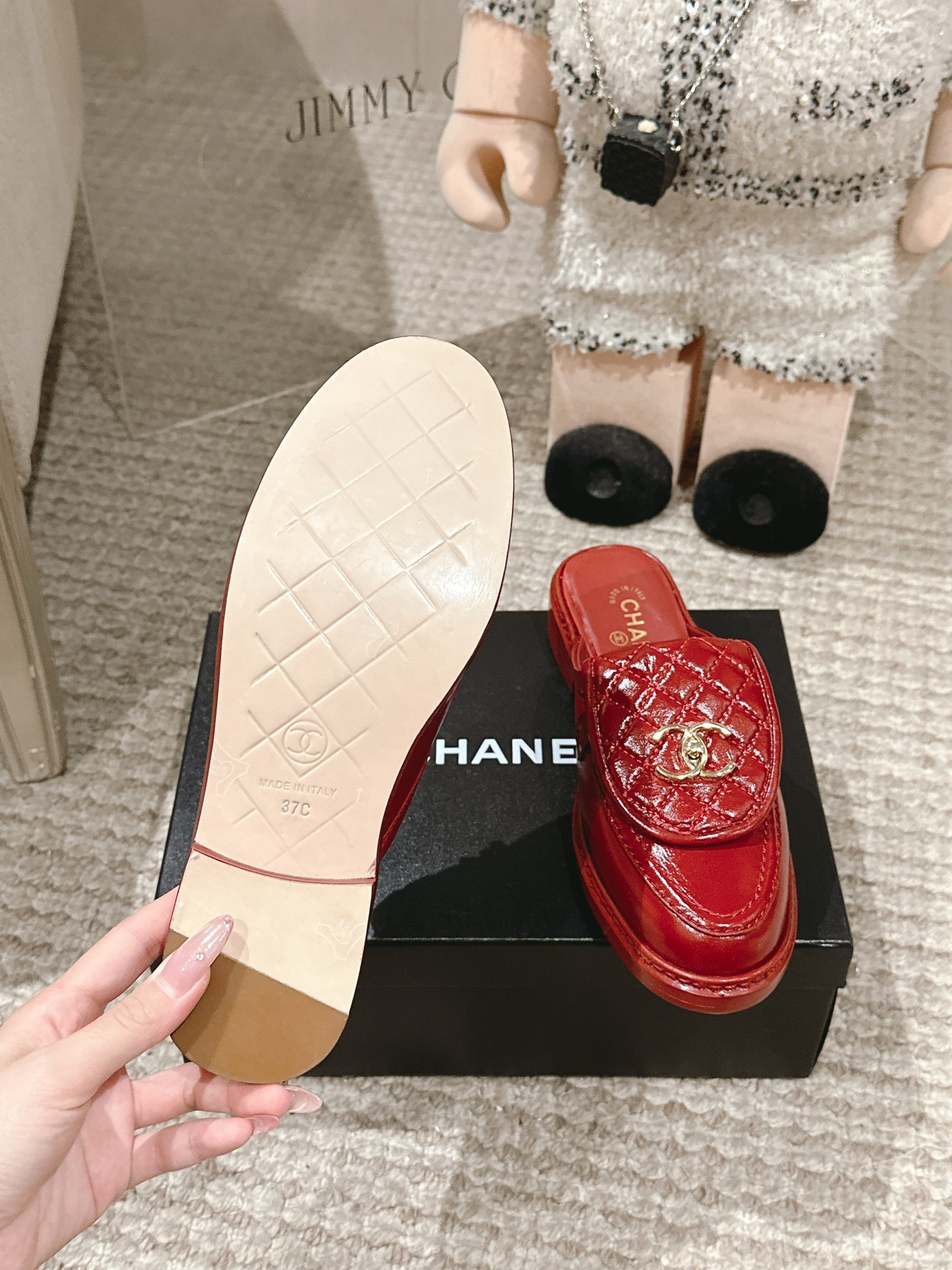 Chane*经典翻盖菱格半拖乐福鞋 经典百搭款 超级文艺风 半拖乐福鞋界天花板 上脚真的好乖 鞋面原版羊皮 内里垫脚丝绸羊皮 意大利真皮大底 码数35-40(34 41 42定做)