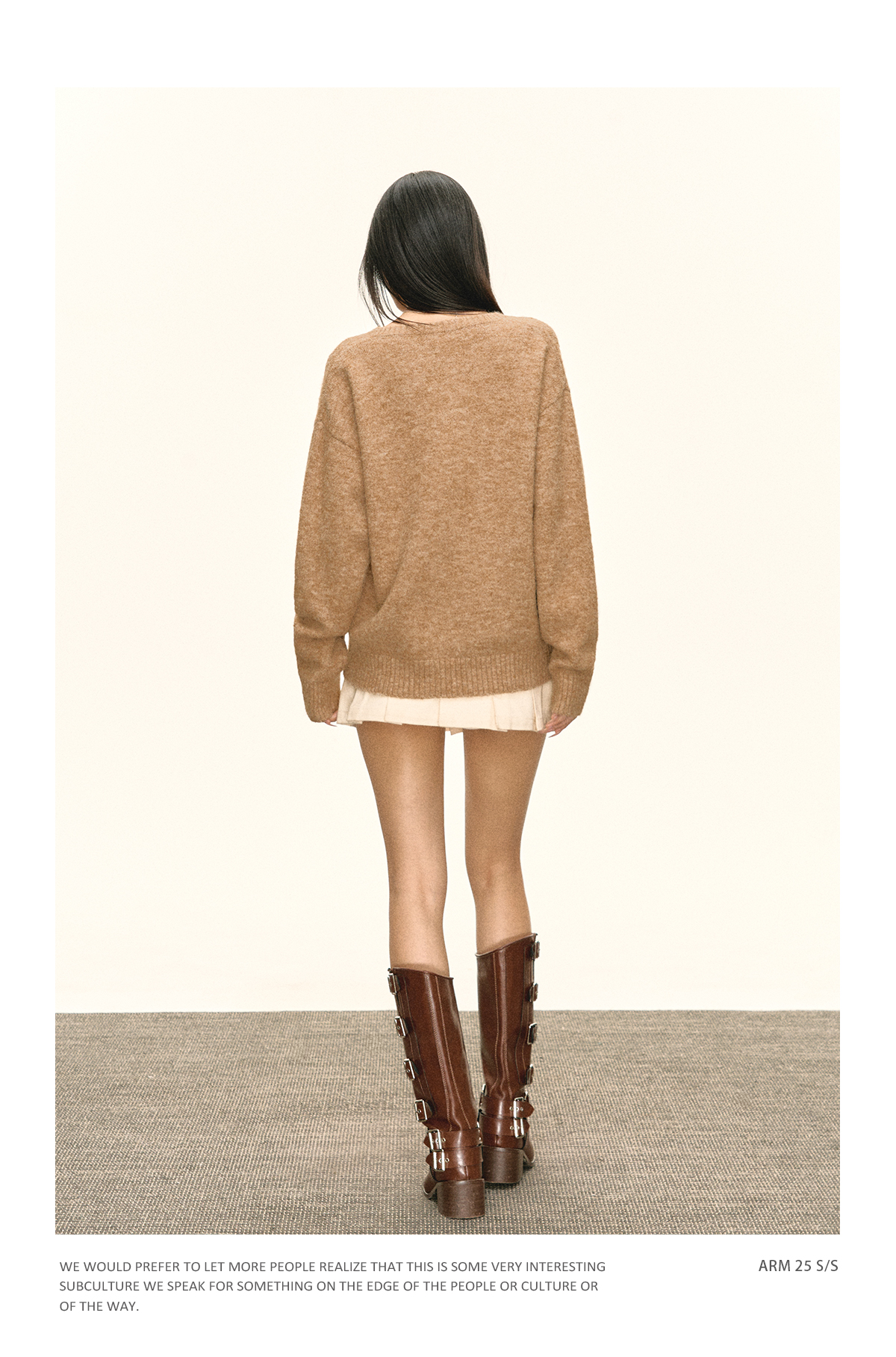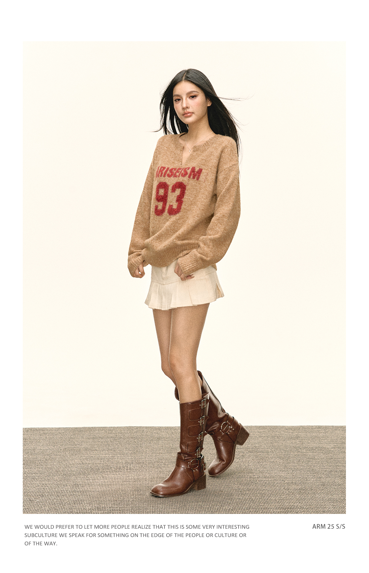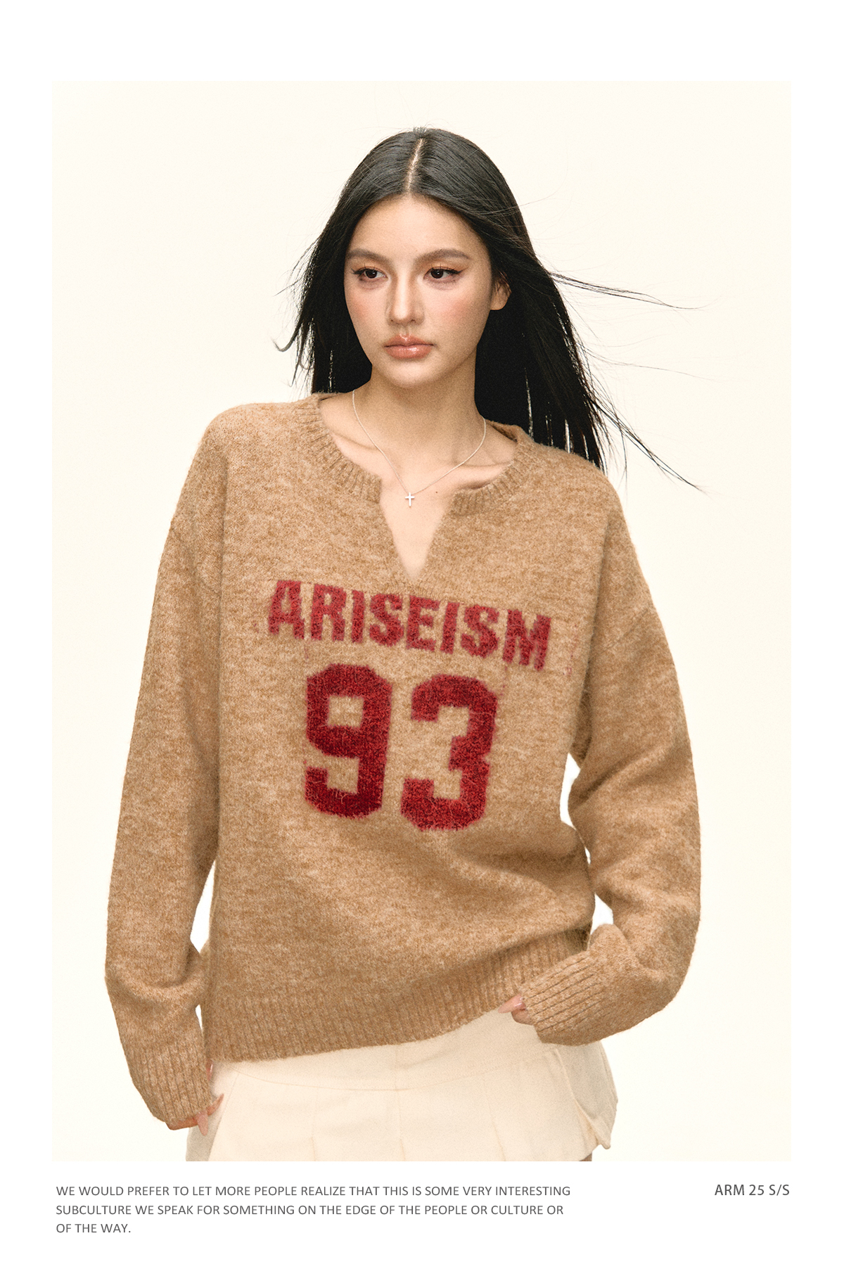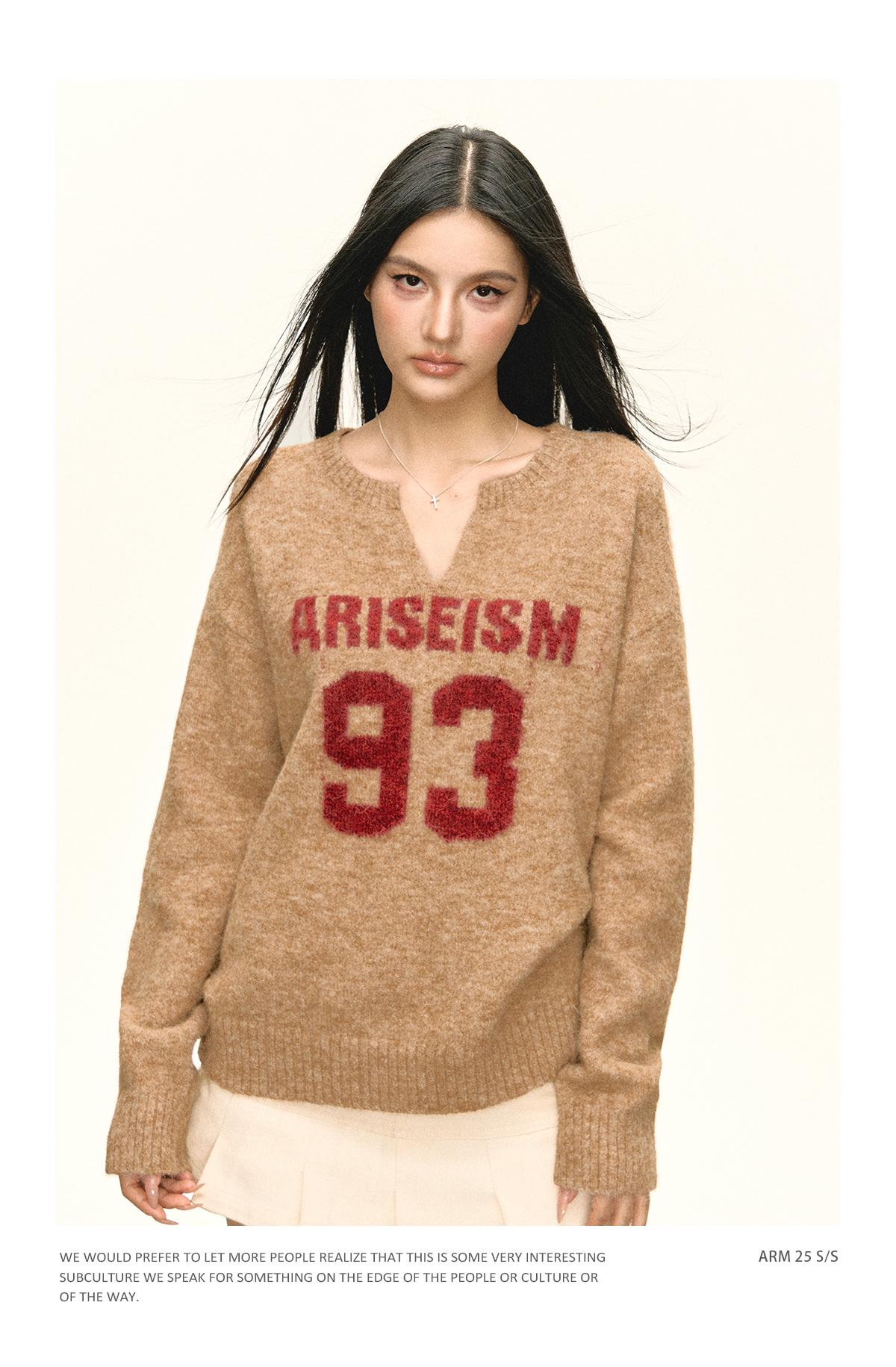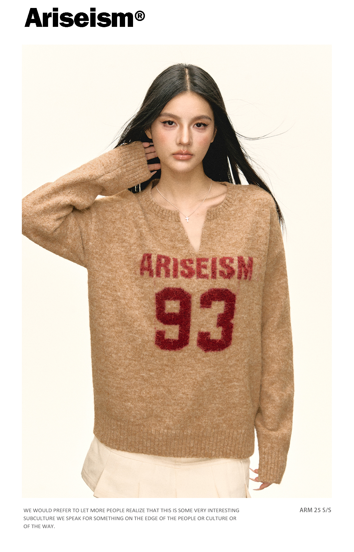 Ariseism 美式复古红色字母套头针织衫女秋冬新款上衣套头毛衣