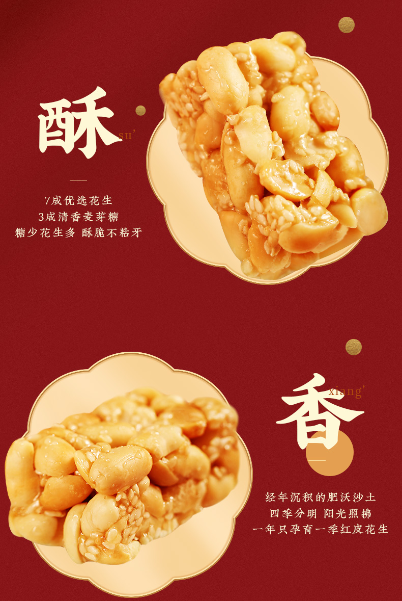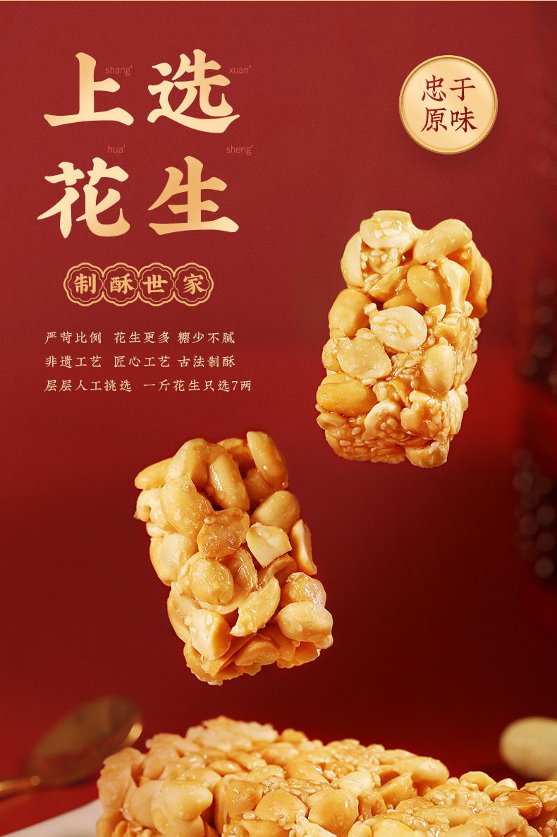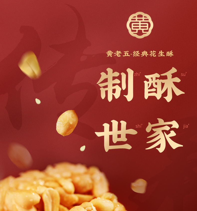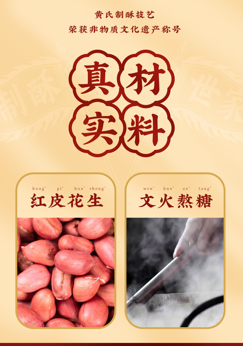 胖东来同款黄老五木糖醇非遗花生酥65gx8袋装 商品图2