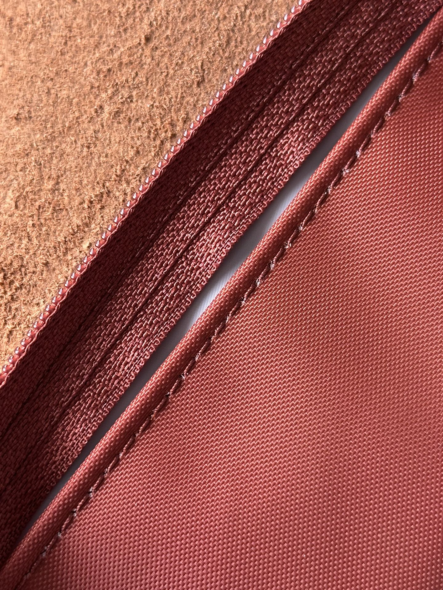包盖是头层小牛皮制作而成,触感柔软细腻,肌理感强烈,包盖上的logo都是压印上去的,内里有种磨毛的质感,品相完美!收纳起来不占地方,打开以后轻松展开,自重超轻