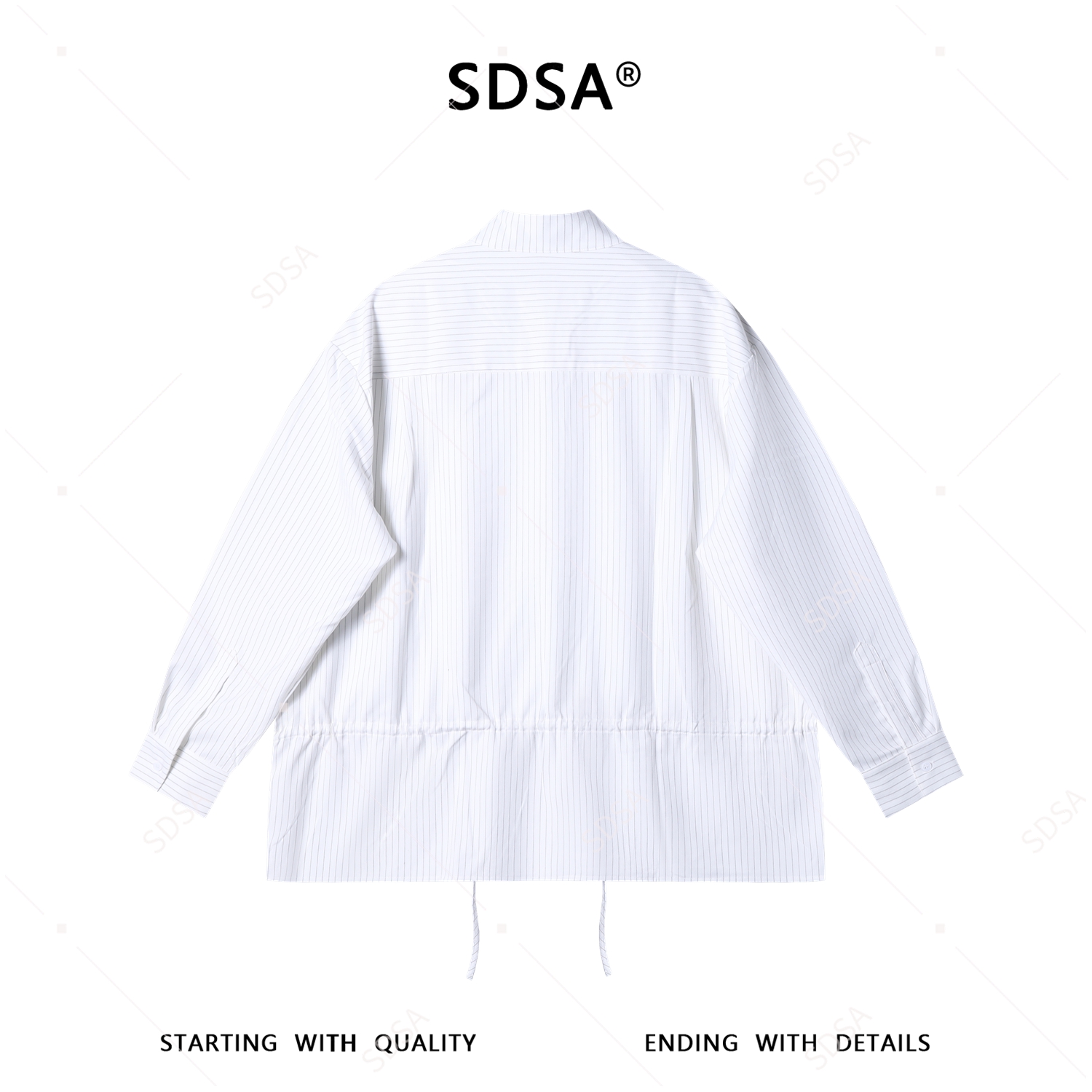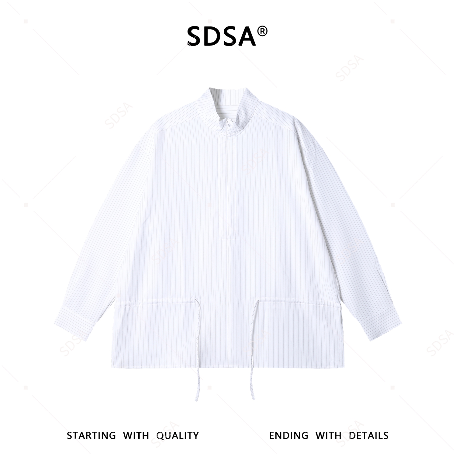 SDSA男装2026新款高贵轻奢简约百搭竖纹拉链立领衬衫气质休闲衬衣