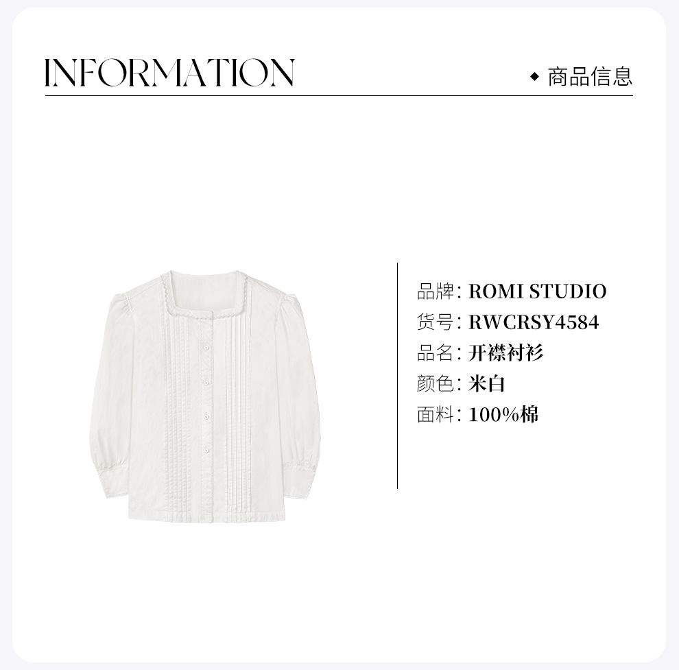 ROMI STUDIO"中古腔调"高支长绒棉复古刺绣洗水衬衫 RWCRSY4584 【发货时间25-30天】