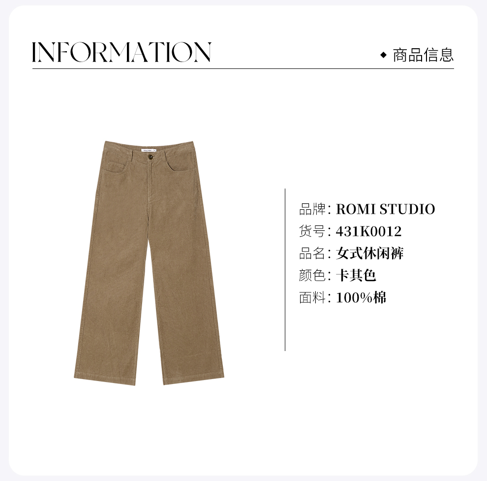 ROMI STUDIO “复古美学” *棉轻酵洗灯芯绒直筒休闲裤 431K0012