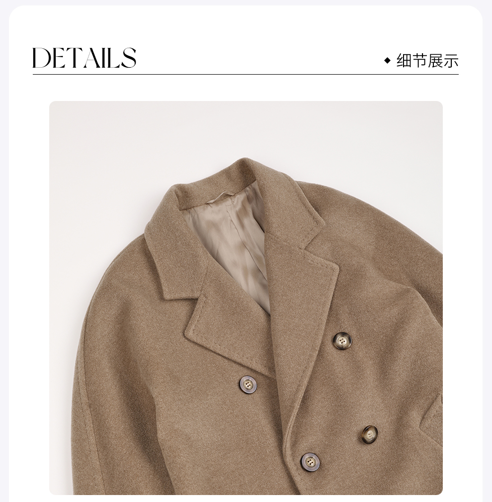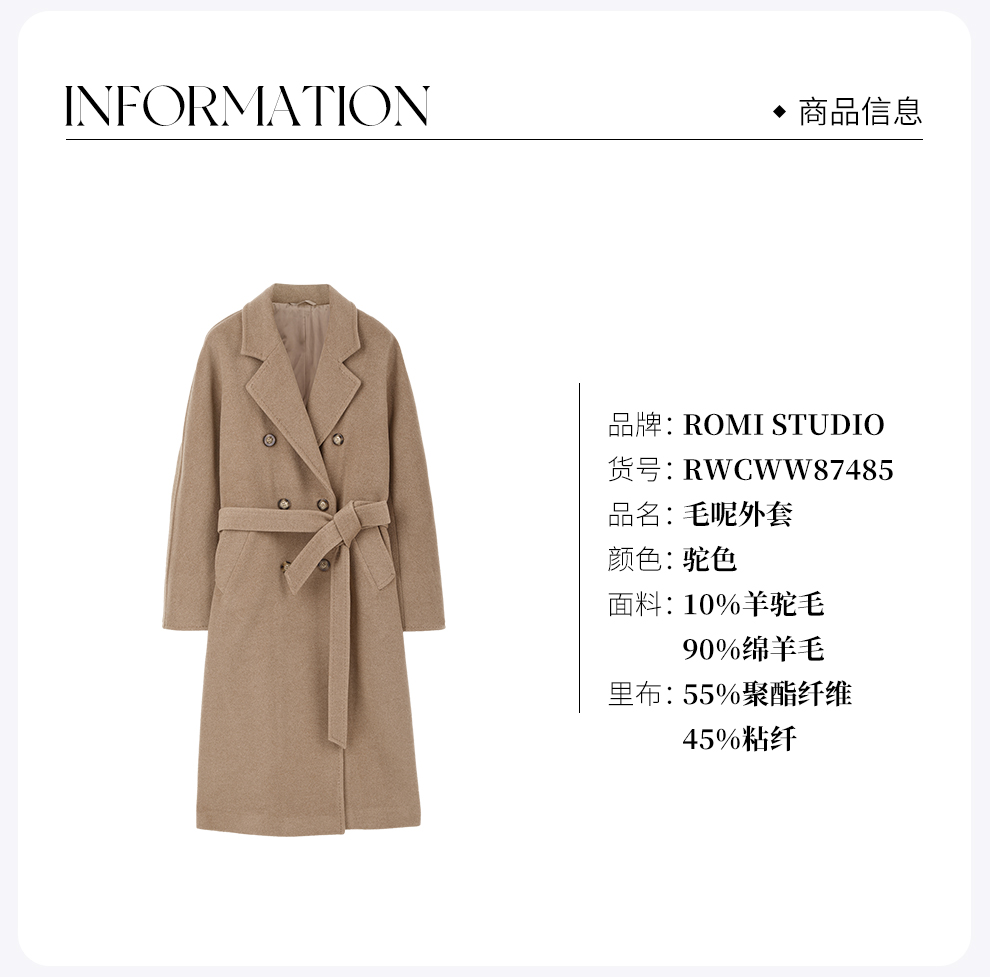 ROMI STUDIO“全手缝”秘鲁羊驼羊毛双排扣双面毛呢大衣RWCAW86776