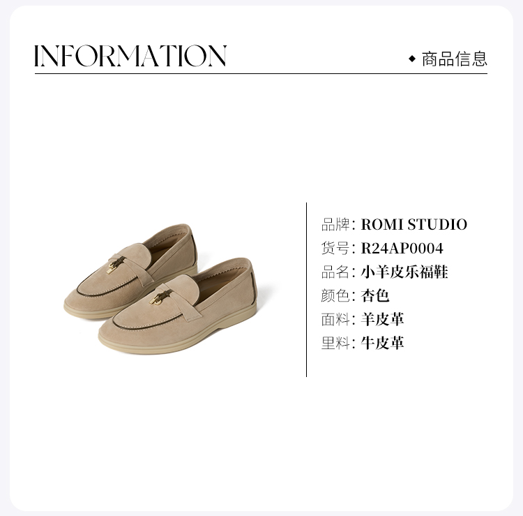 ROMI STUDIO“**”绒面羊皮拼牛皮舒适平底乐福鞋 R24AP0004