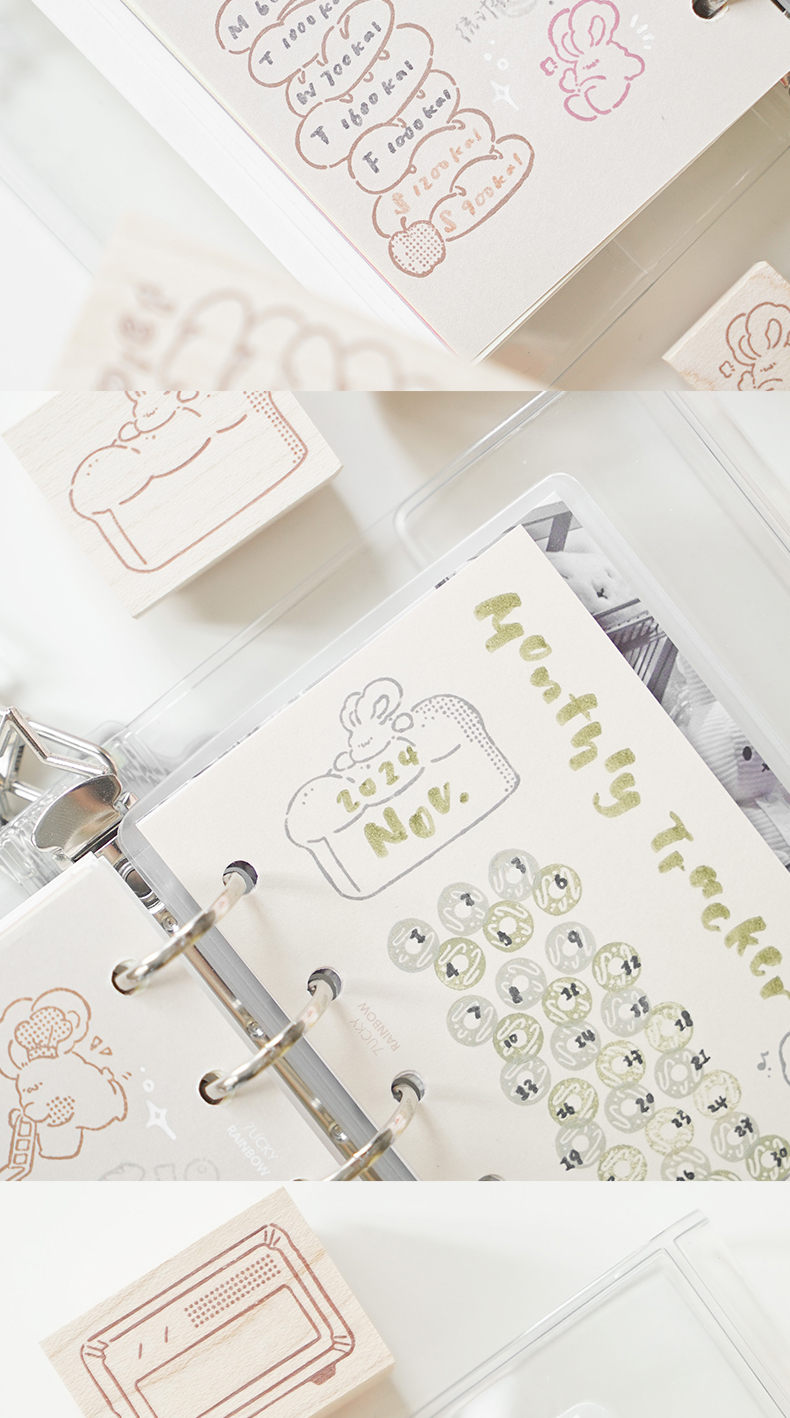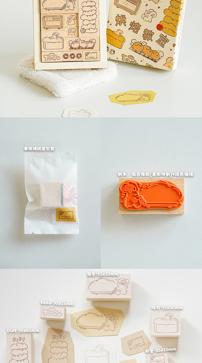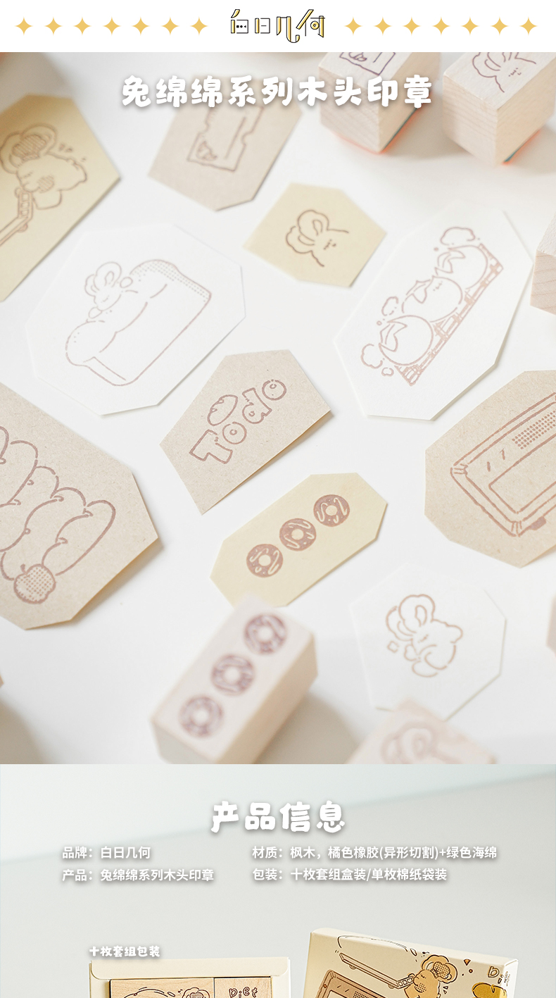 白日几何 兔绵绵系列木头印章 烘焙教室 单枚 生活记录 手帐可爱印章