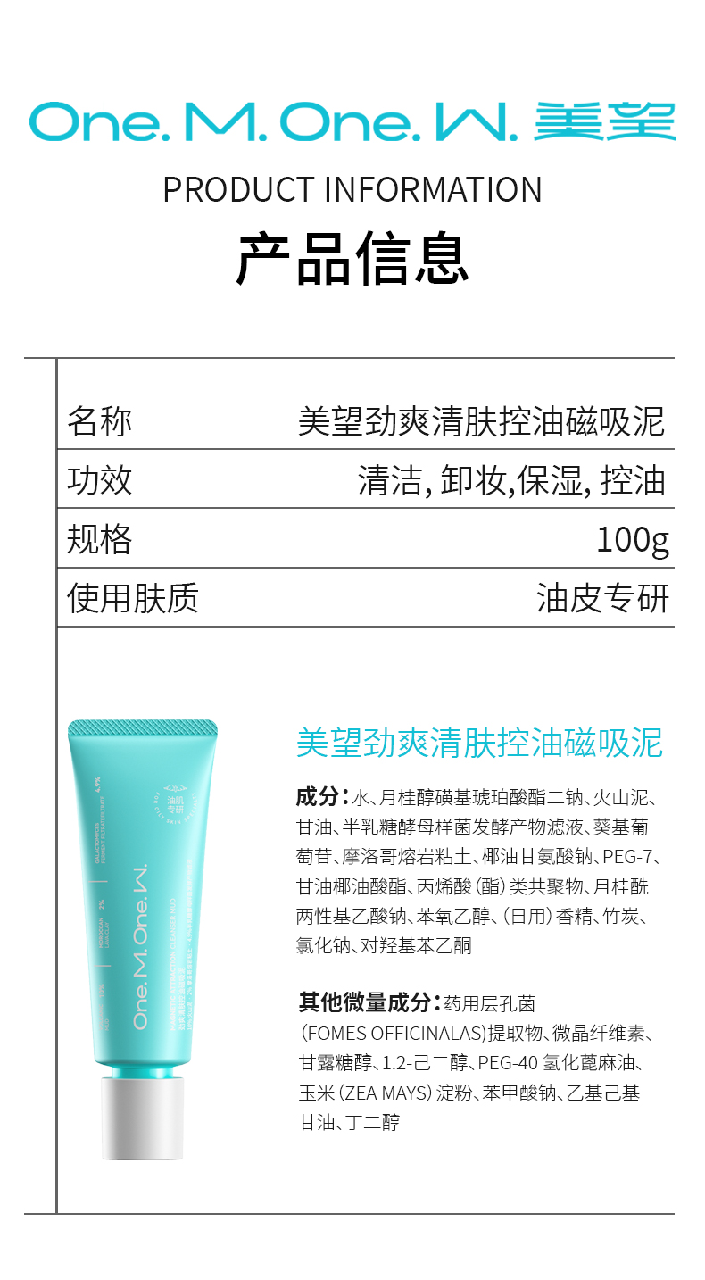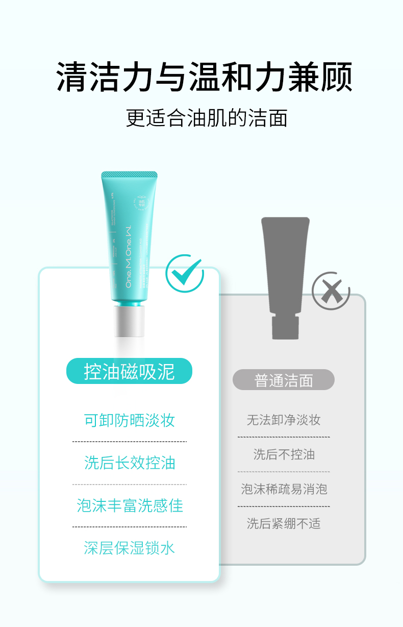 美望磁吸泥洗面奶控油洁面乳 劲爽清肤控油女洁面清洁卸妆控油三合一