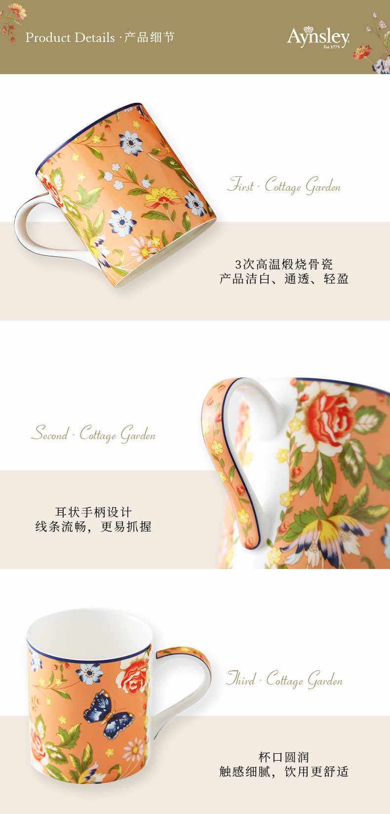 英国 Aynsley安斯丽 小屋花园系列温莎马克杯