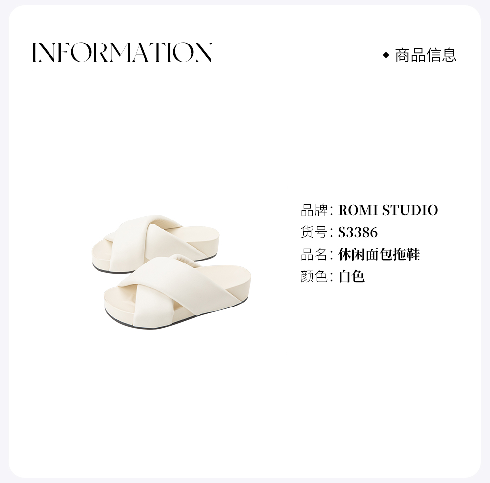 ROMI STUDIO【高品质】简约纯色交叉带防滑厚底休闲面包拖鞋S3386