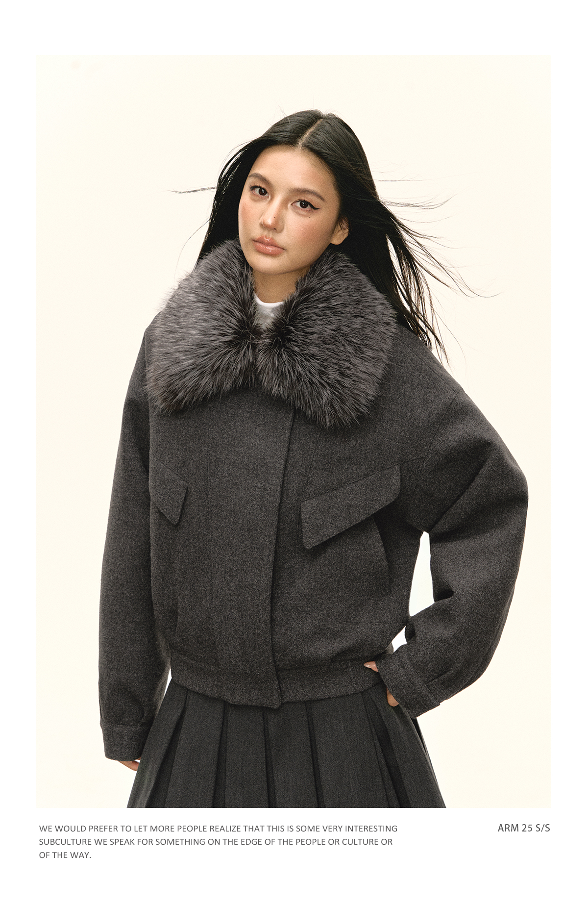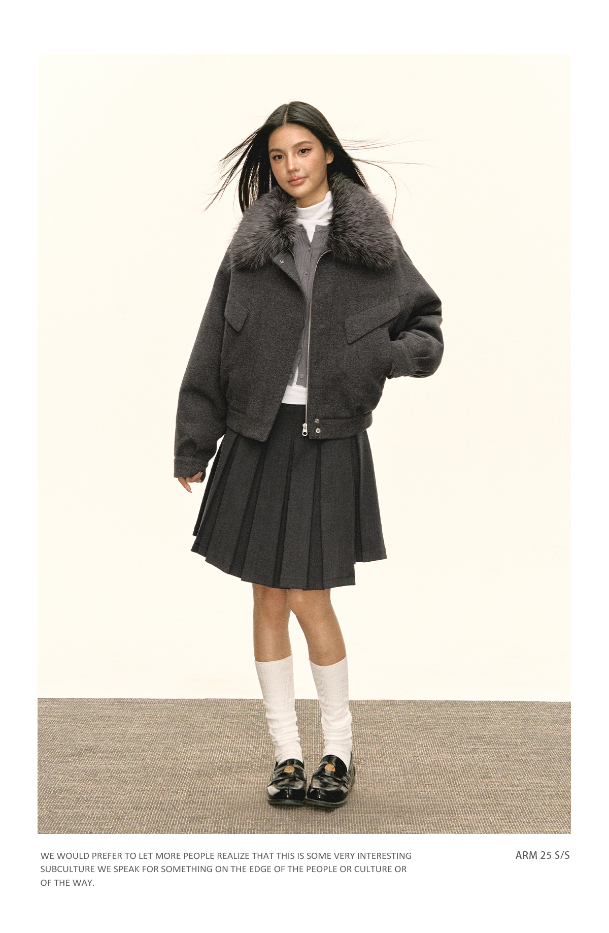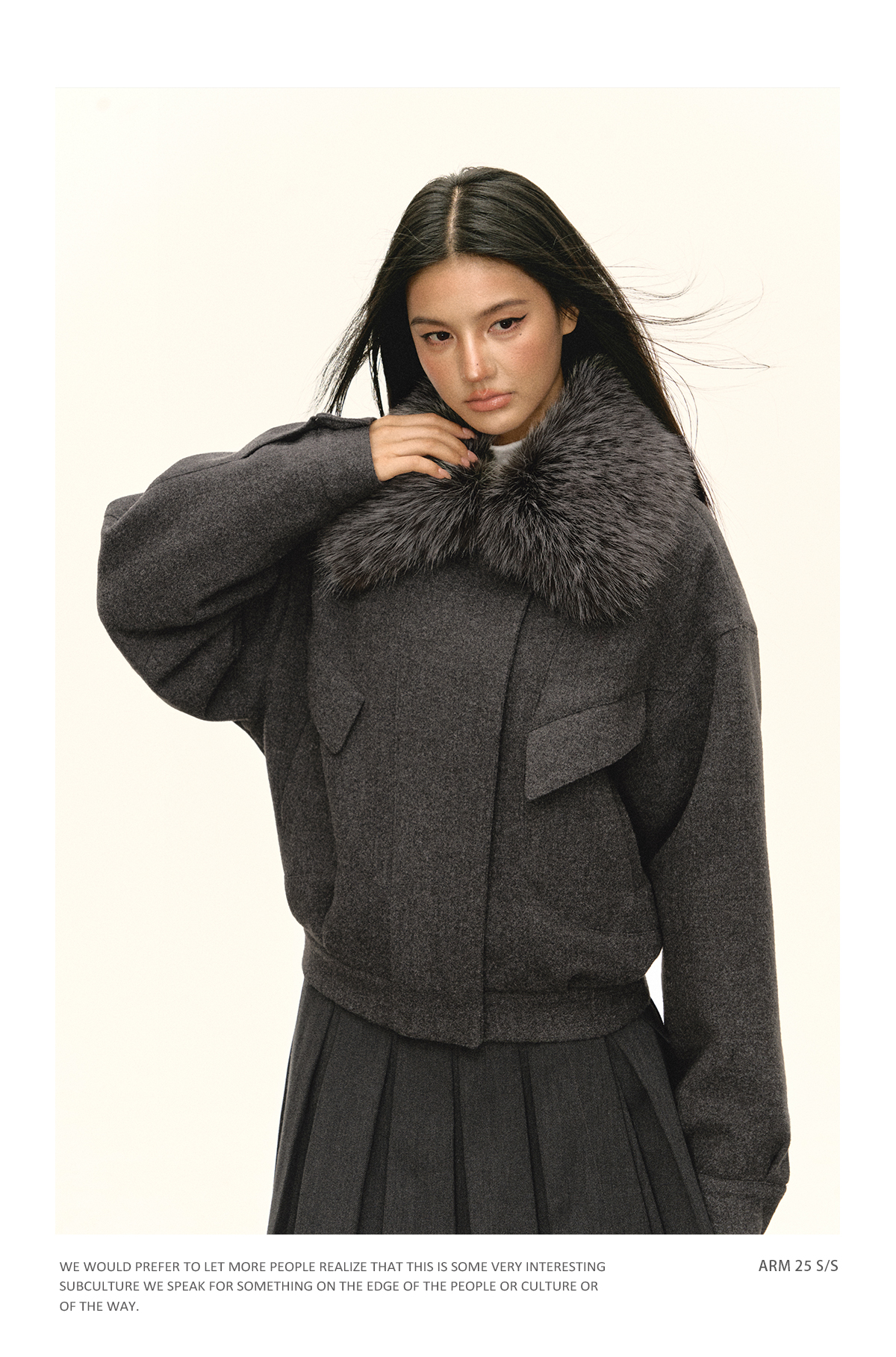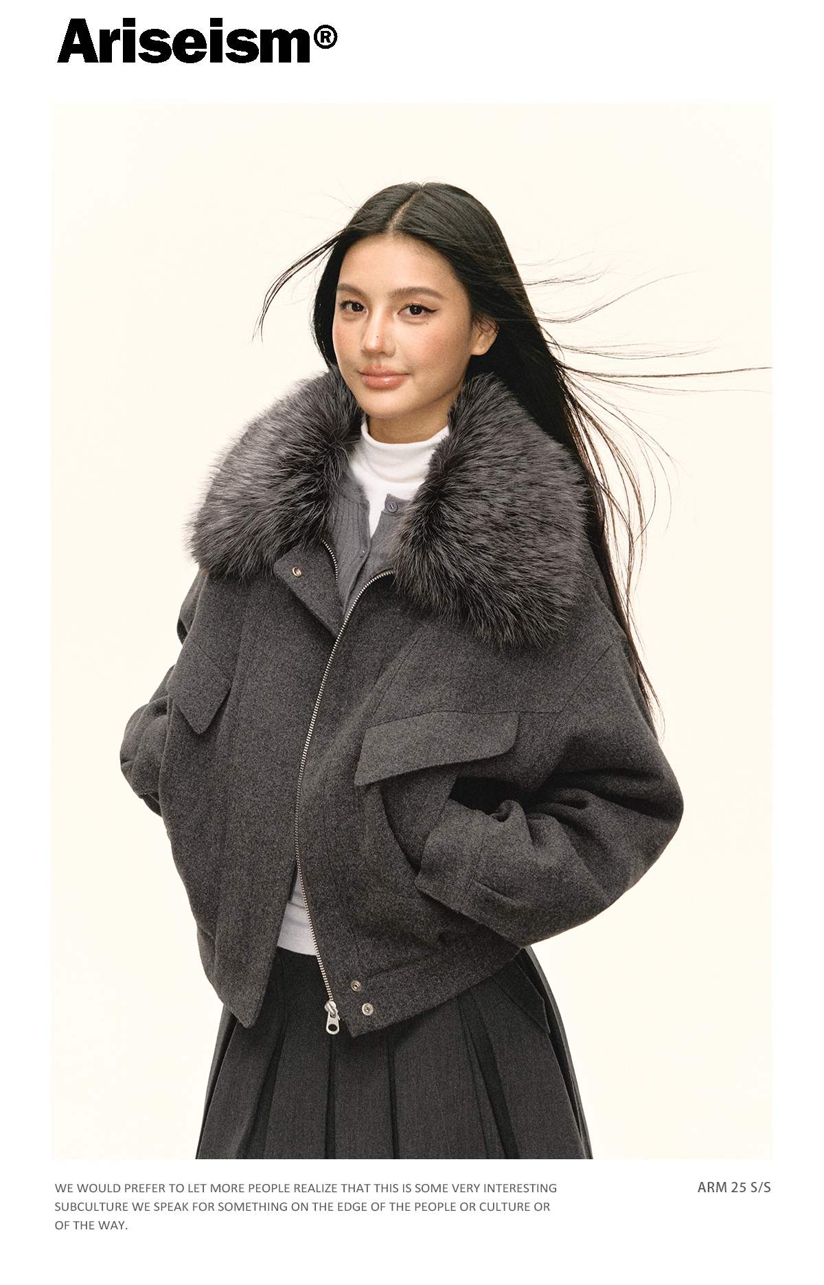 Ariseism 美式复古可脱卸毛领PU皮短外套女秋季新款外套