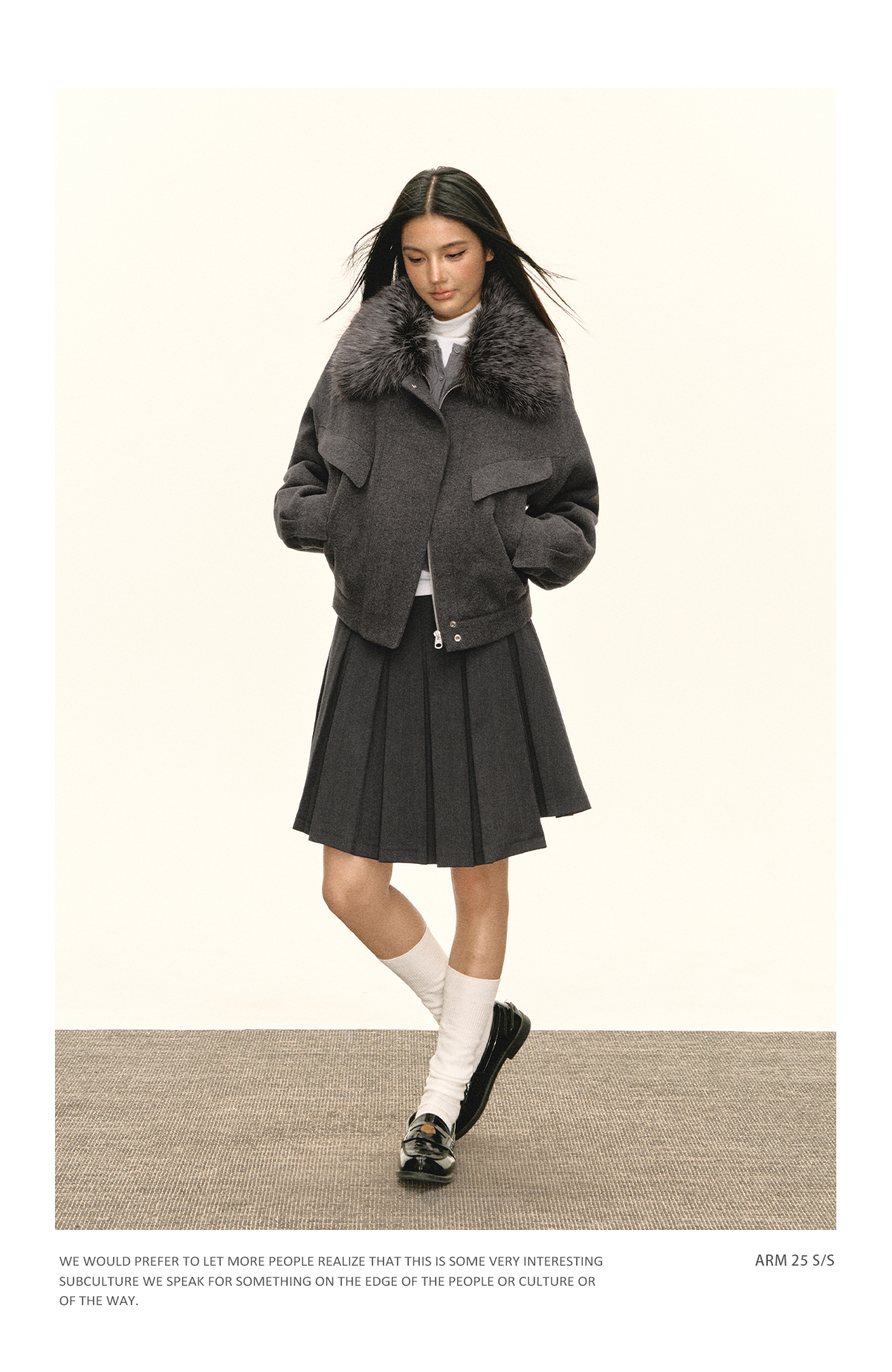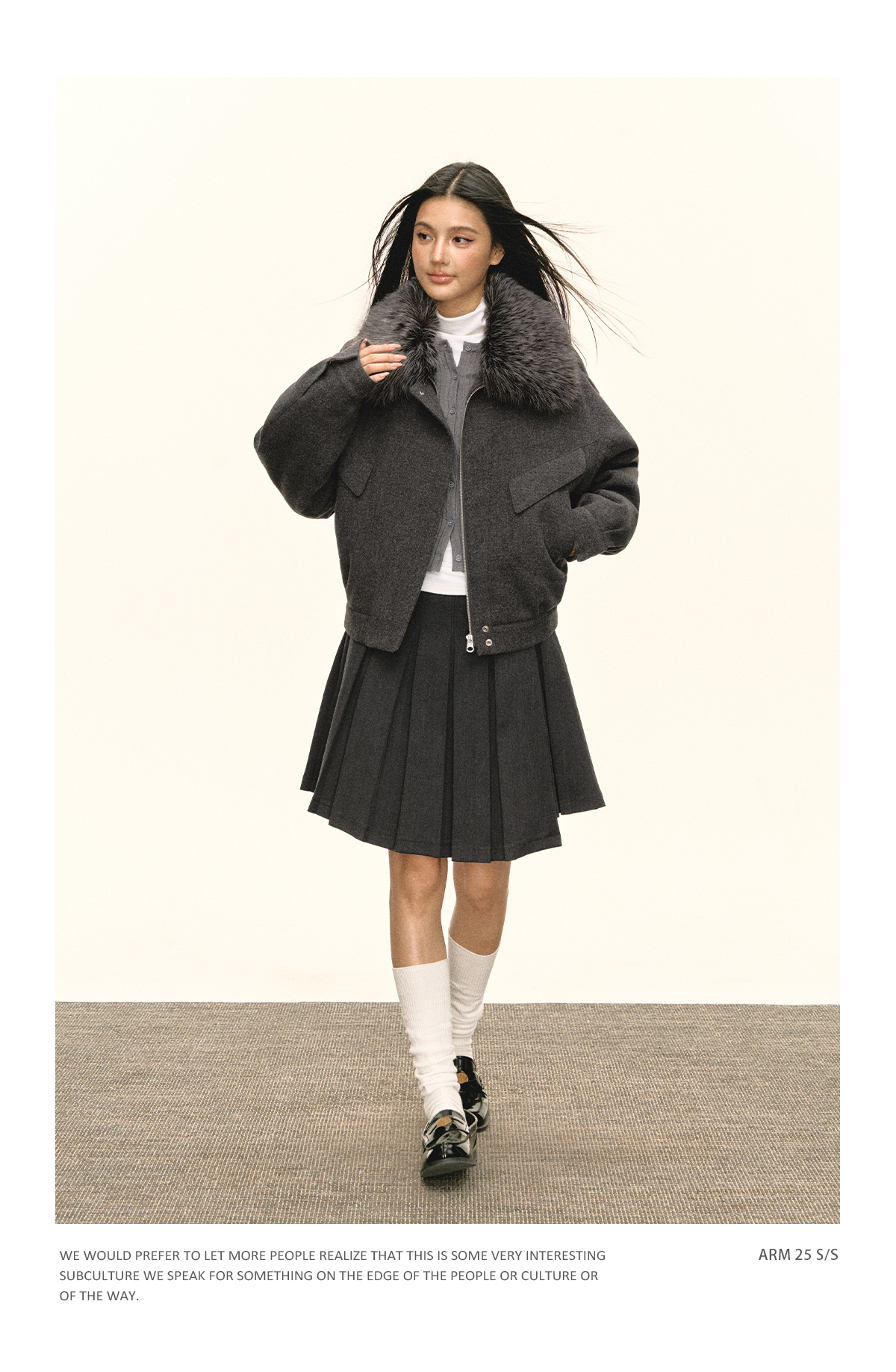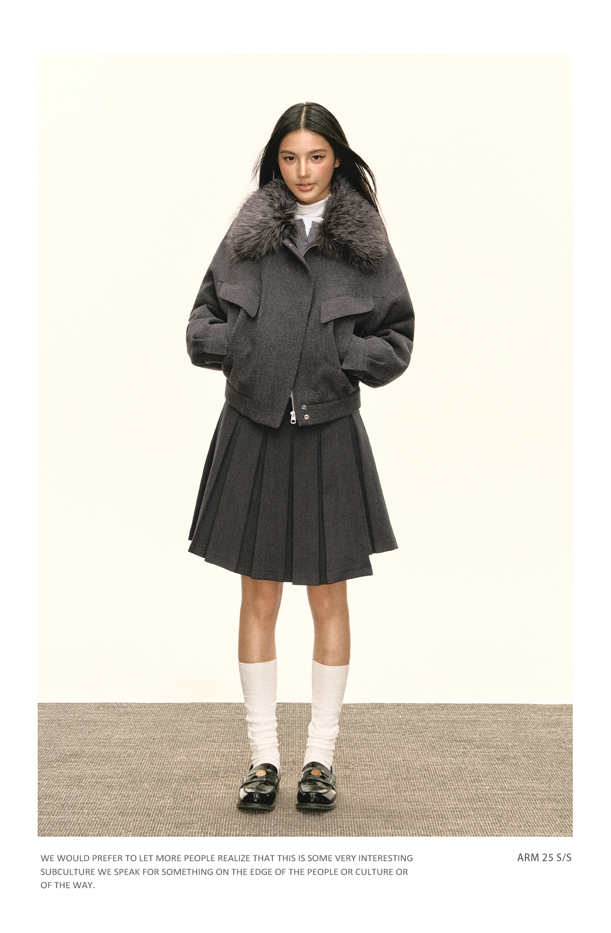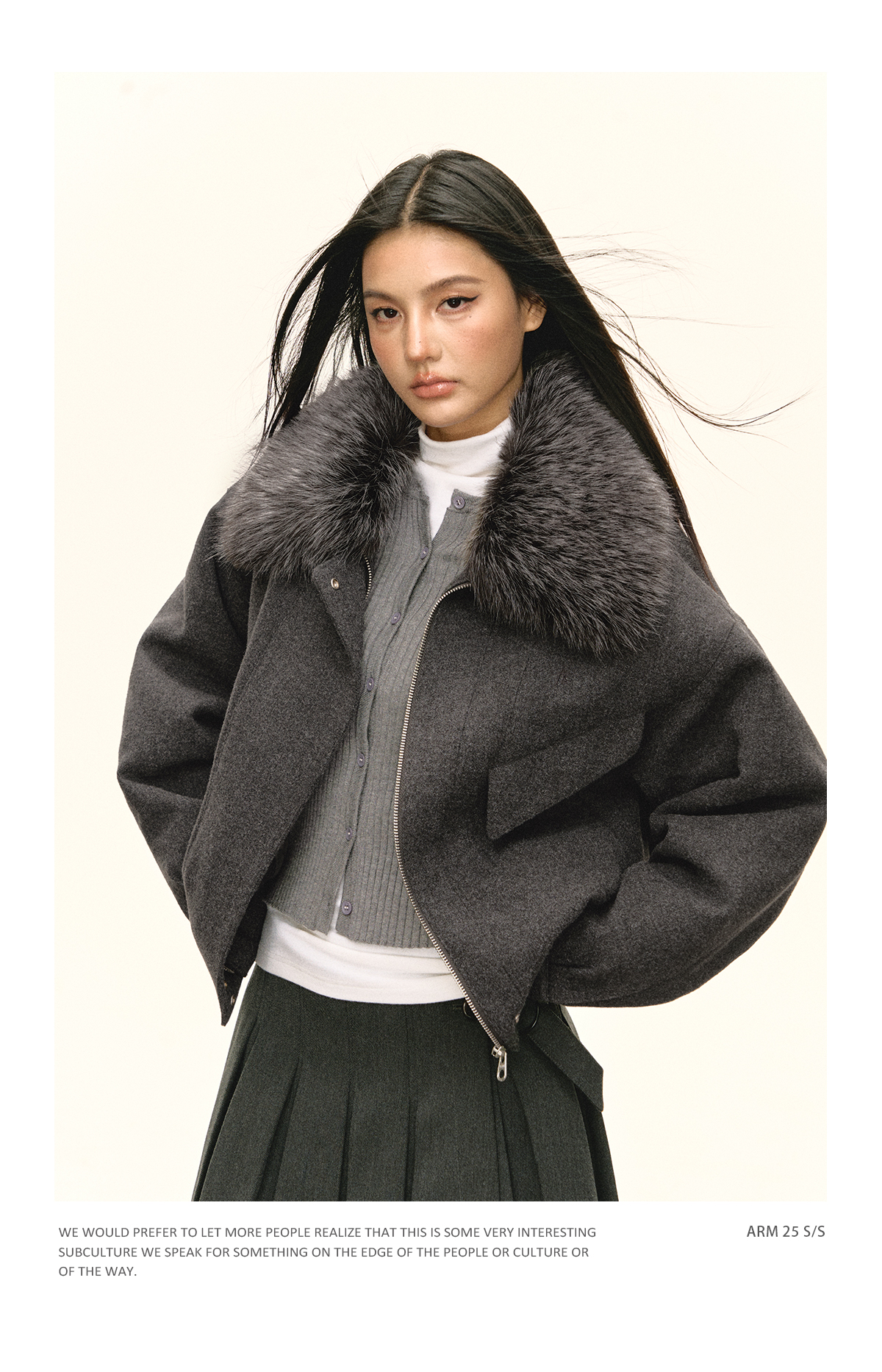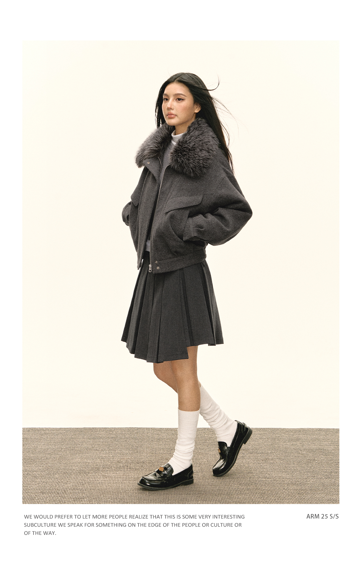 Ariseism 美式复古可脱卸毛领PU皮短外套女秋季新款外套