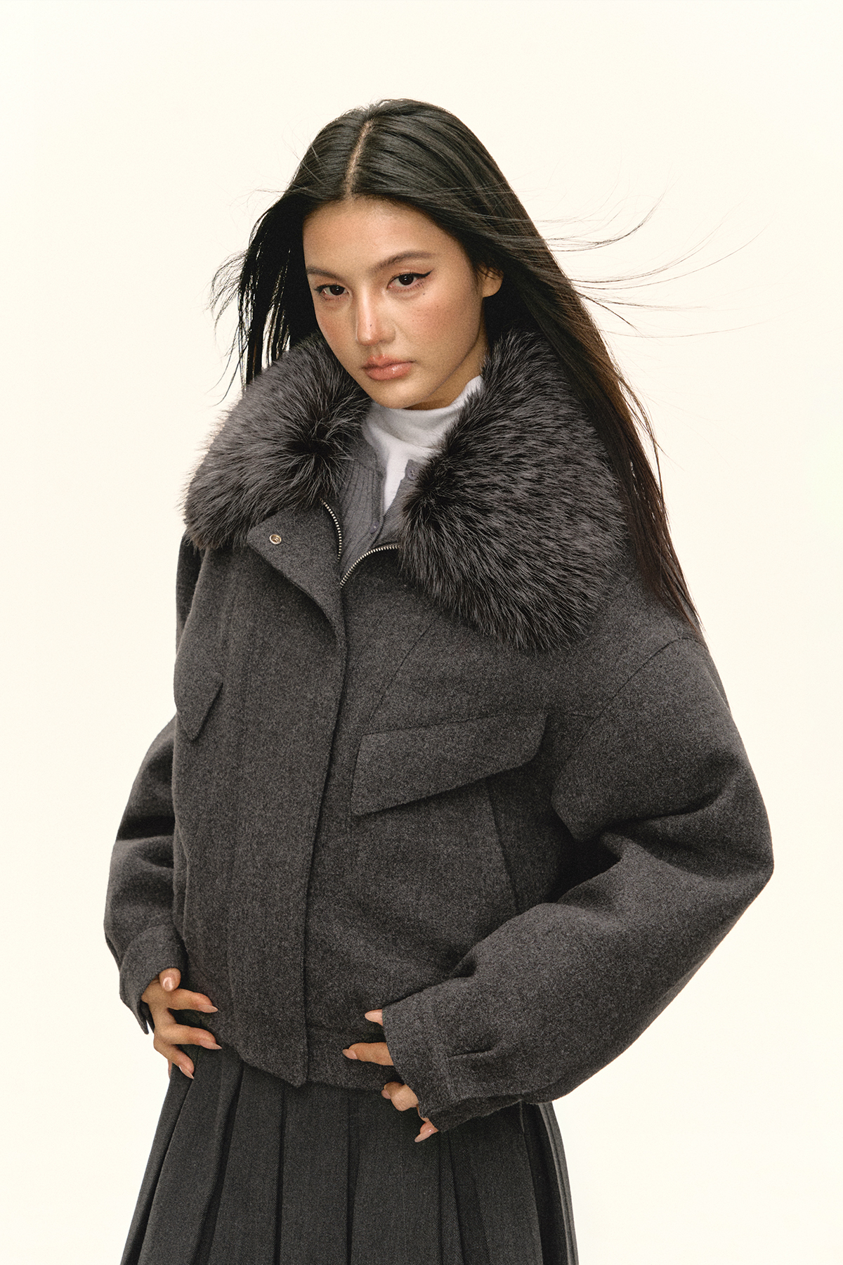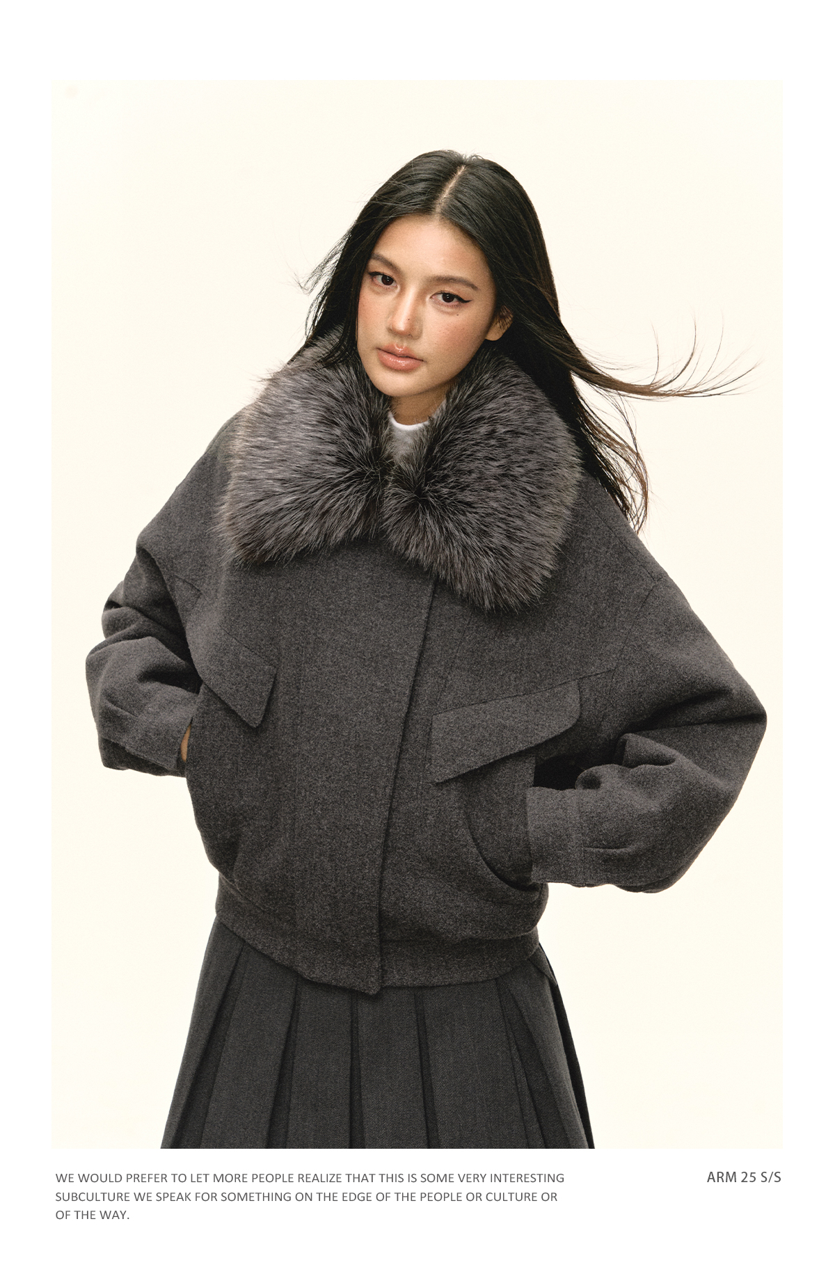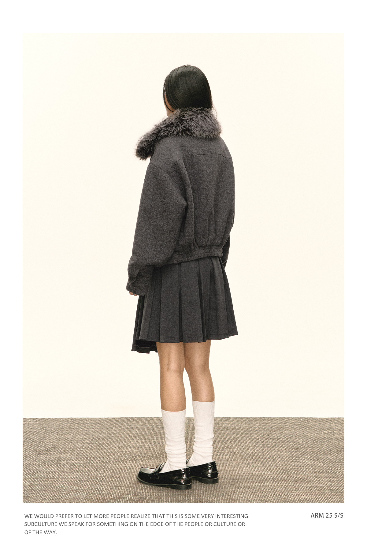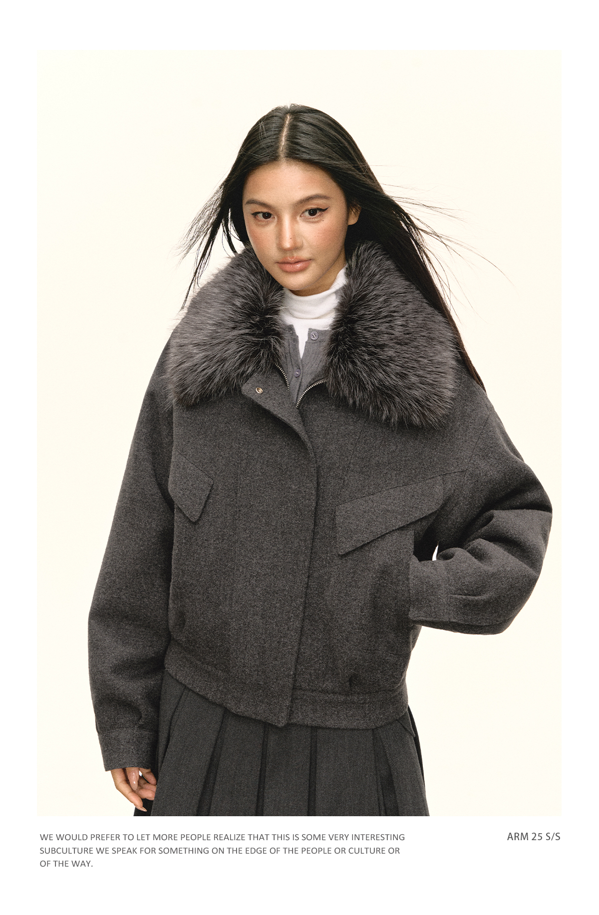 Ariseism 美式复古可脱卸毛领PU皮短外套女秋季新款外套