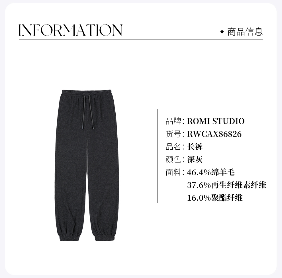 ROMI STUDIO“松弛有度”绵羊毛混纺软糯休闲抽绳束脚裤RWCAX86826