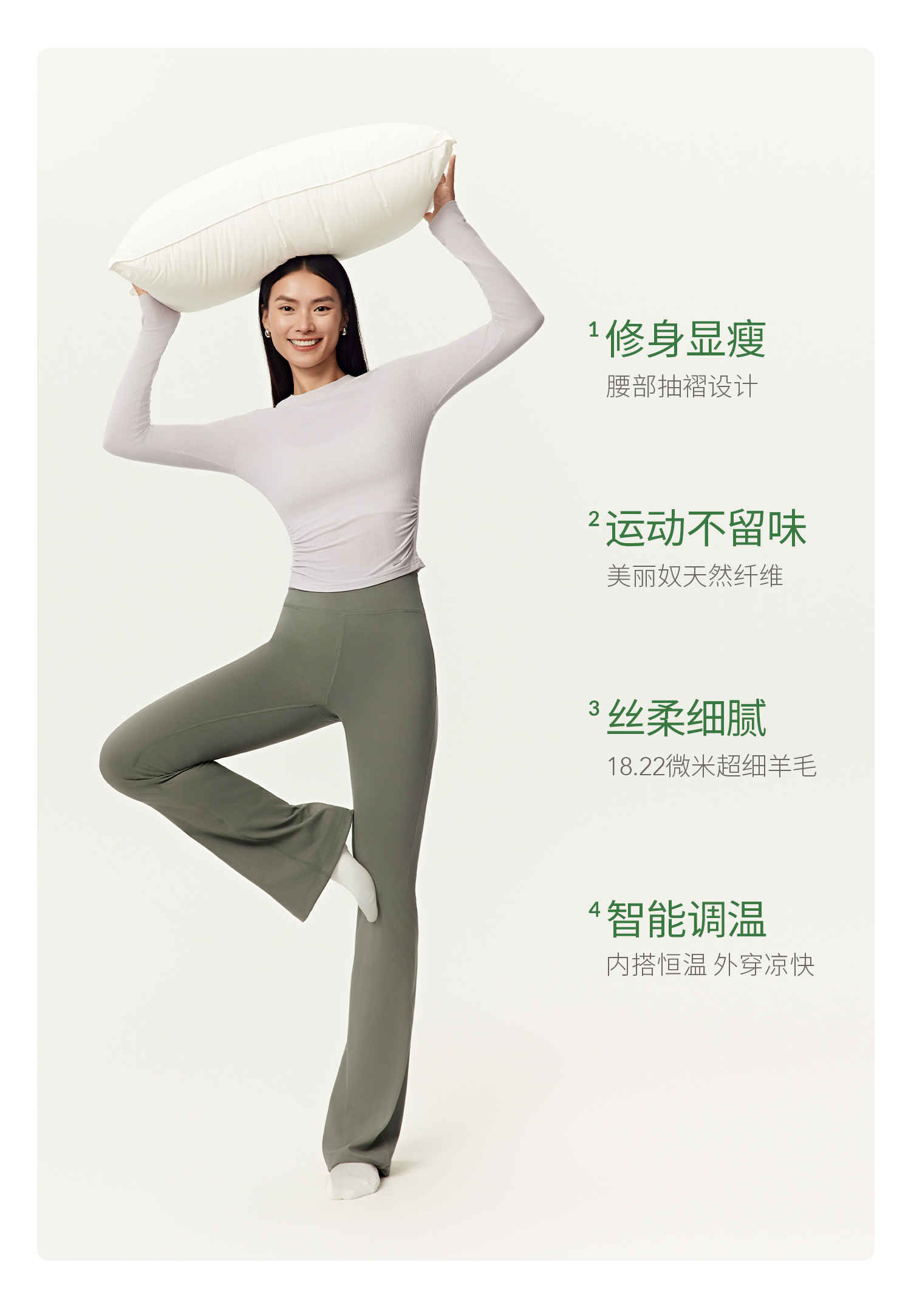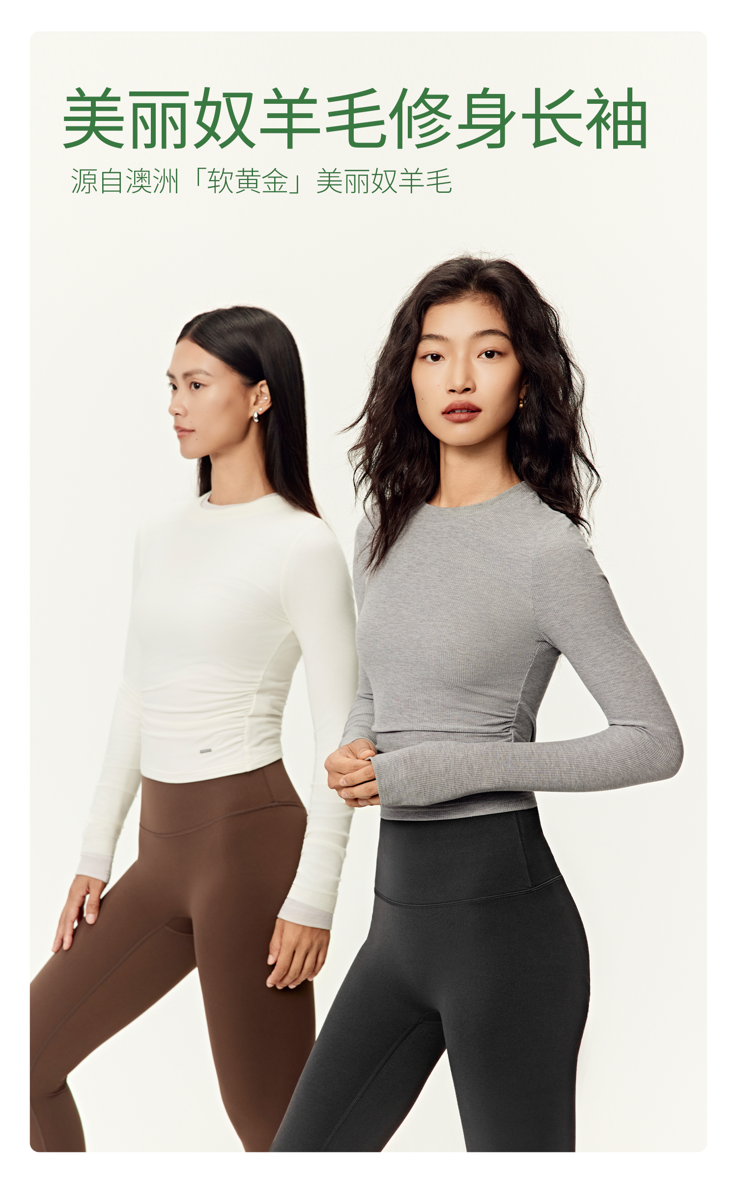 YOTTOY新款美利奴羊毛修身长袖天丝上衣女普拉提瑜伽服训练健身服打底