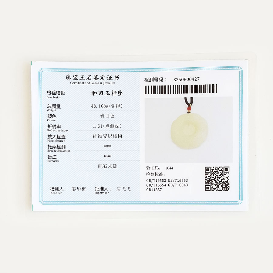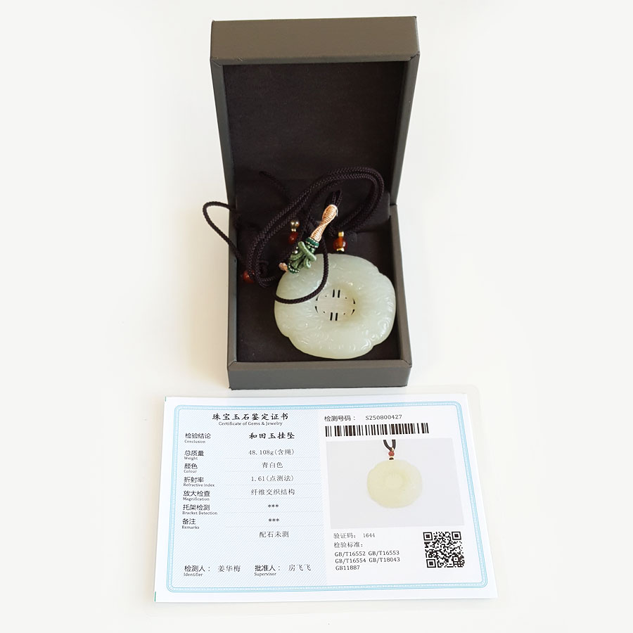 【天然正品】天然青海料细腻福纹平安无事牌和田玉吊坠项链50.4*50.4*10.9MM(皆取最大值)女士现售价:980特价!100825NJM21