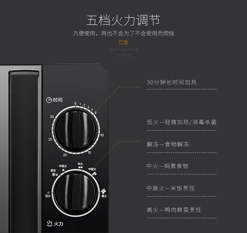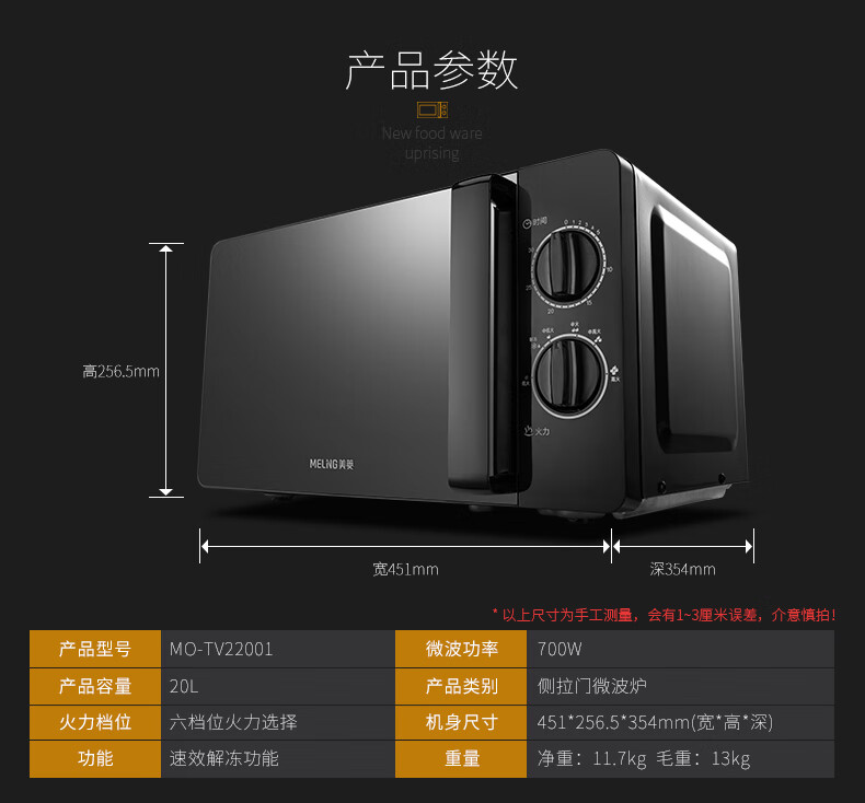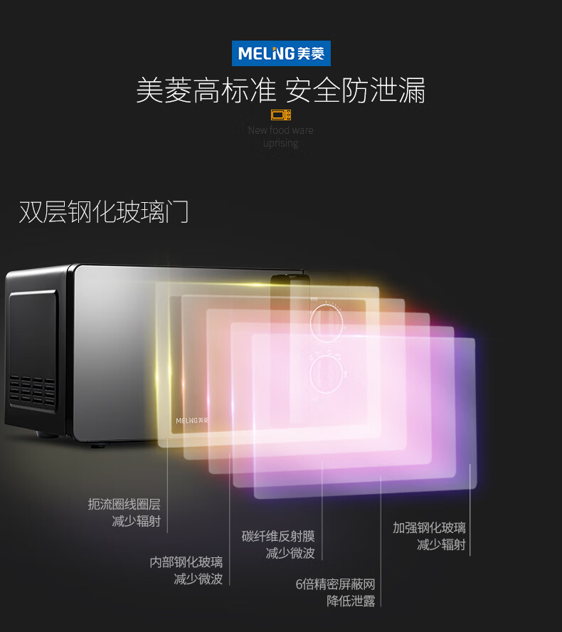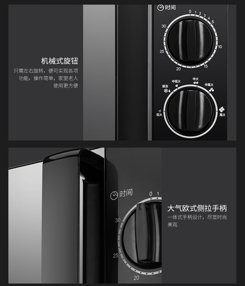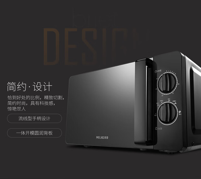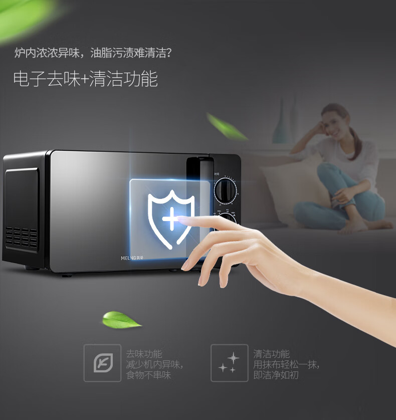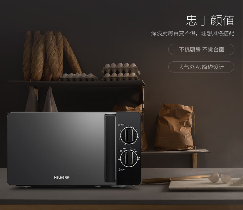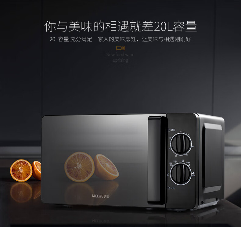 美菱(MeLng)微波炉简约精美设计钢化玻璃门外观20L大容量6档火力可选择安全防泄漏家用微波炉MO-TV22001