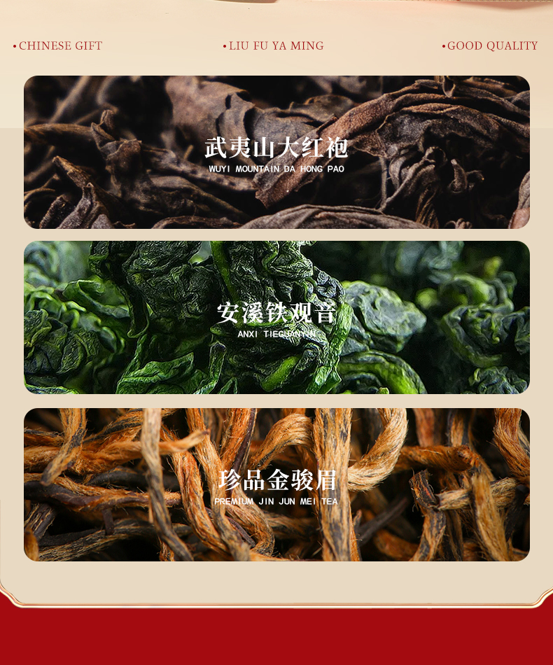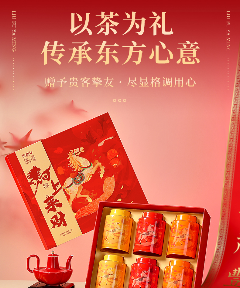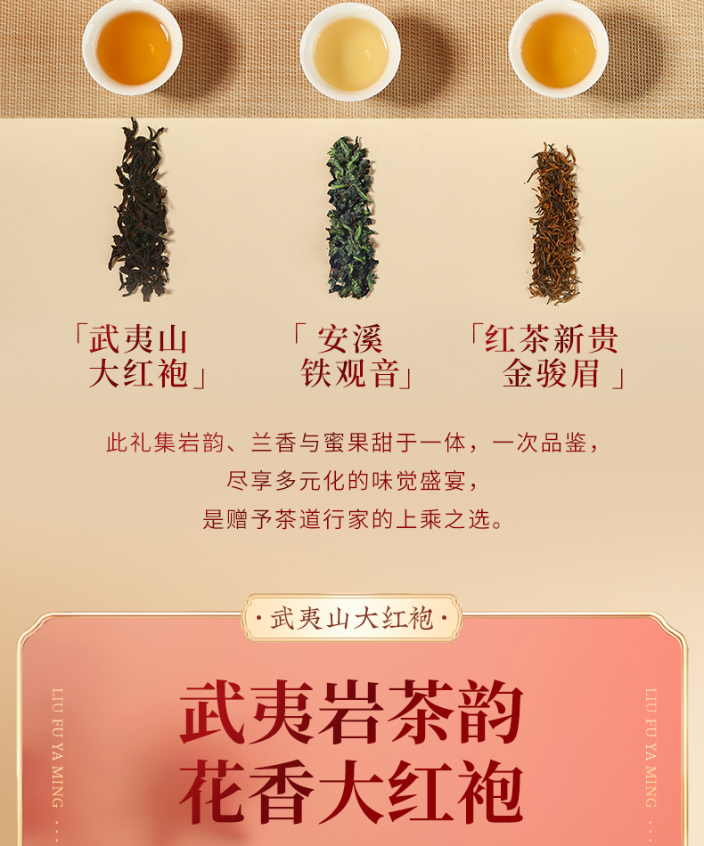【六福雅茗礼盒】去寻特级蜜香红茶武夷山金骏眉大红袍安溪铁观音组合装茶叶礼盒装2026马年高端送礼264g