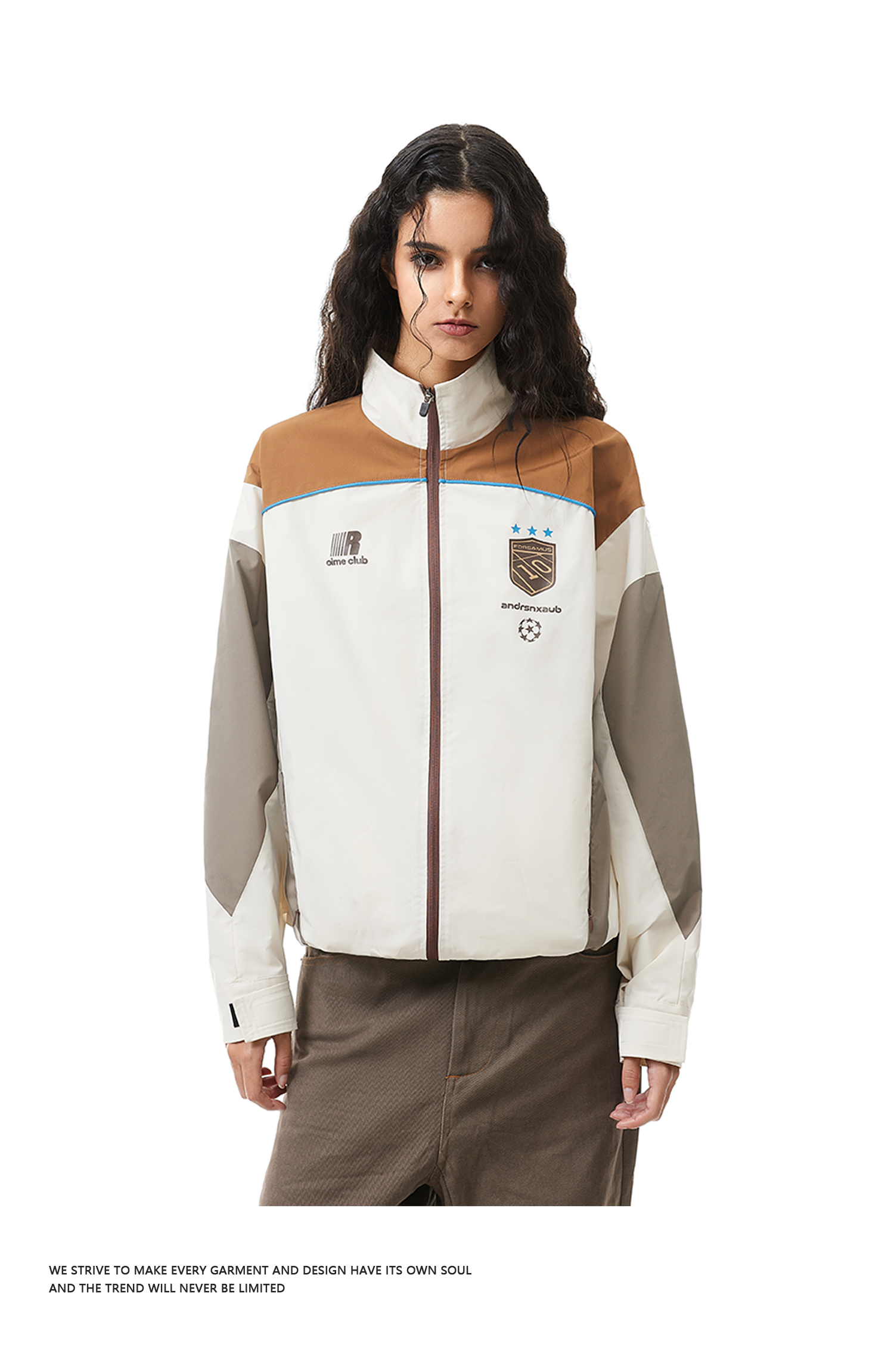 FDR官方店 户外复古运动拼接撞色徽章外套男女秋季情侣装开衫上衣