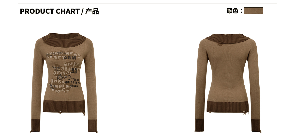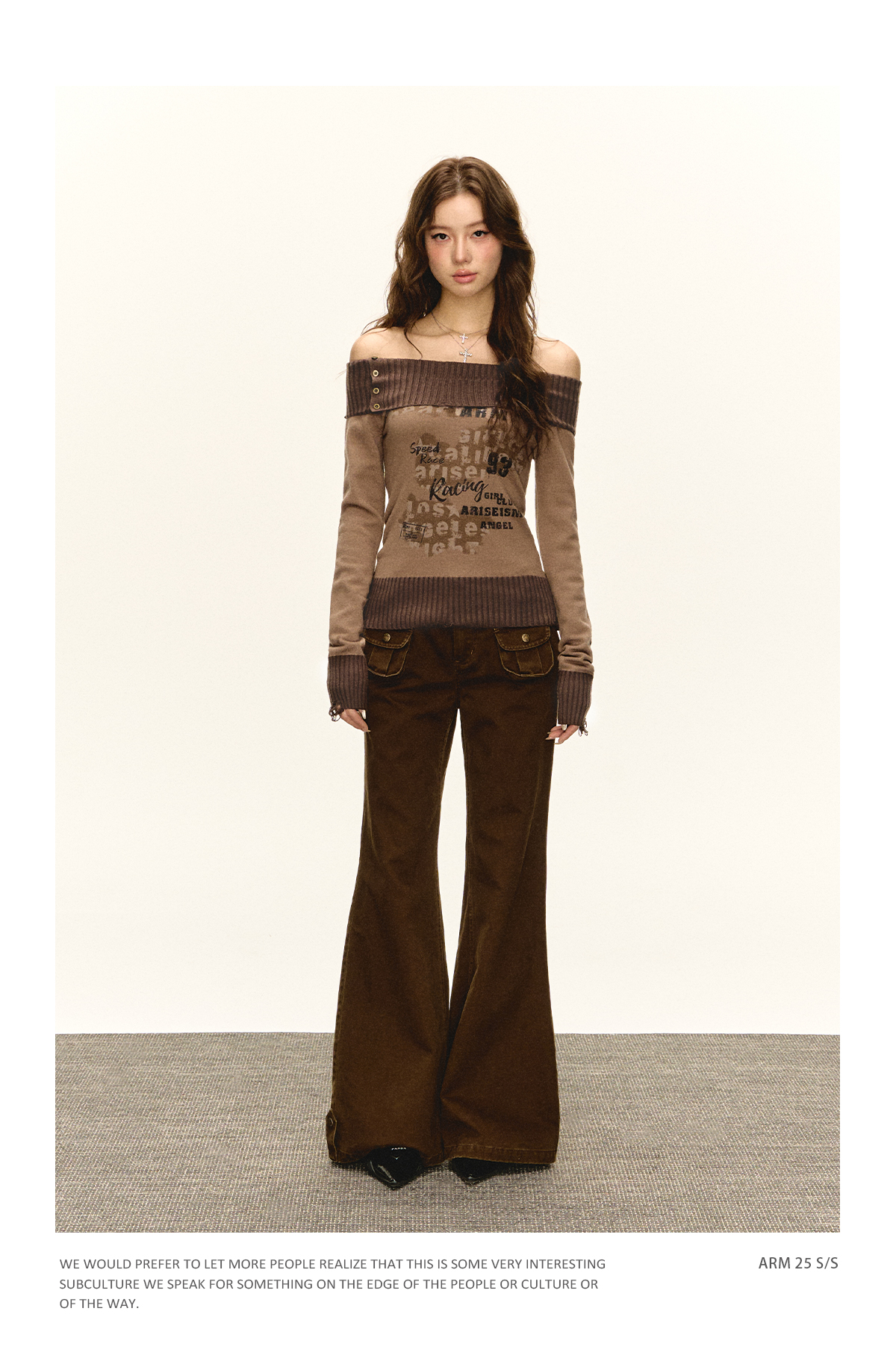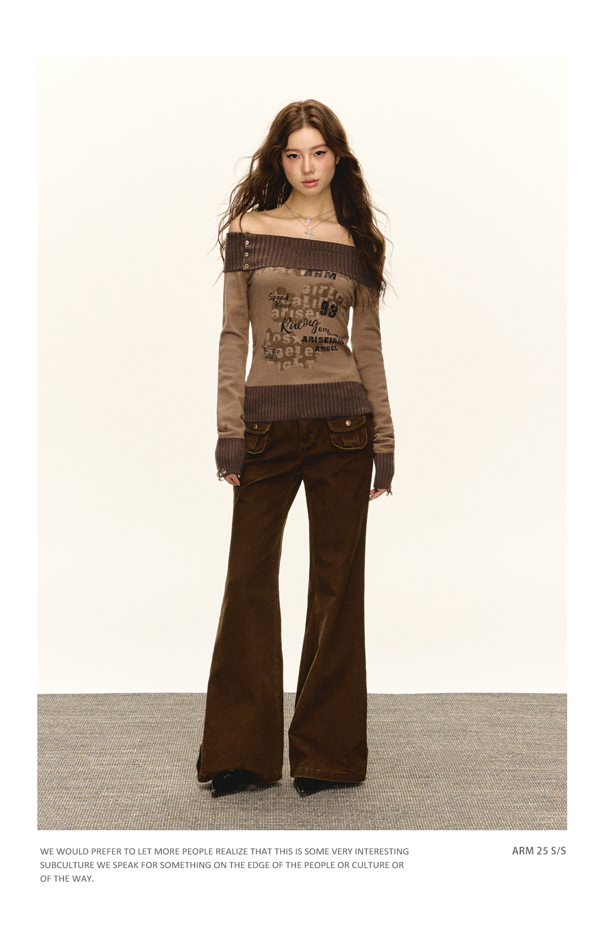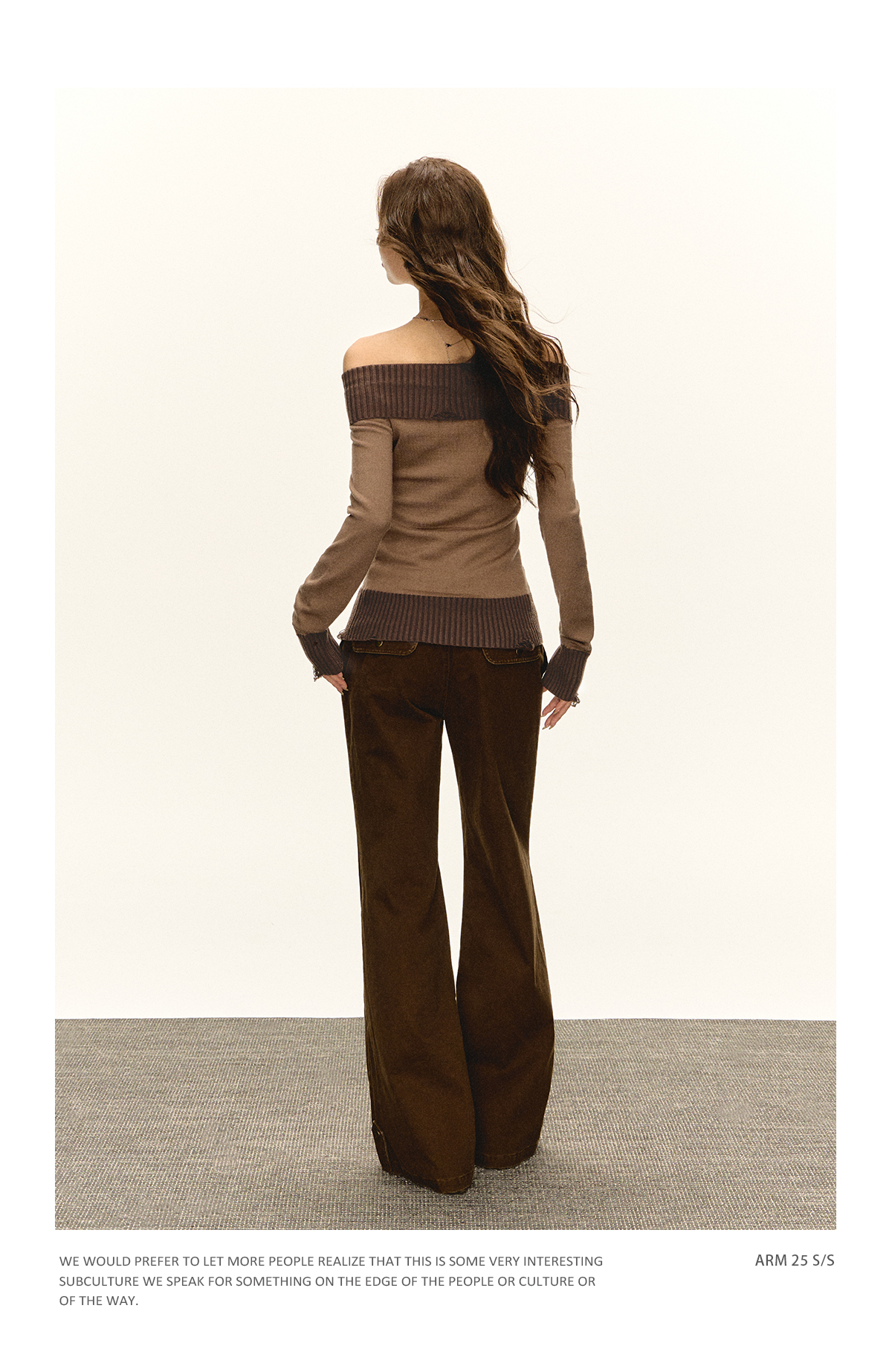 Ariseism 美式复古设计感一字肩毛衣女秋季新款显瘦上衣