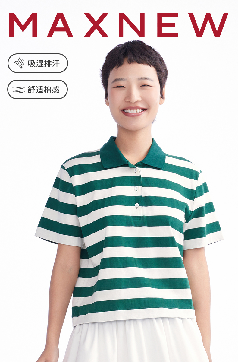 【POLO】女装MAX柔棉吸湿透气宽松短款多彩POLO 1N2221101