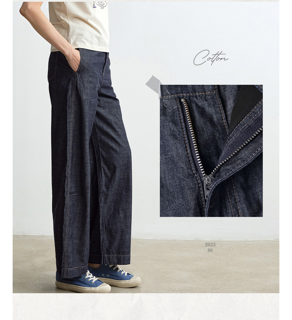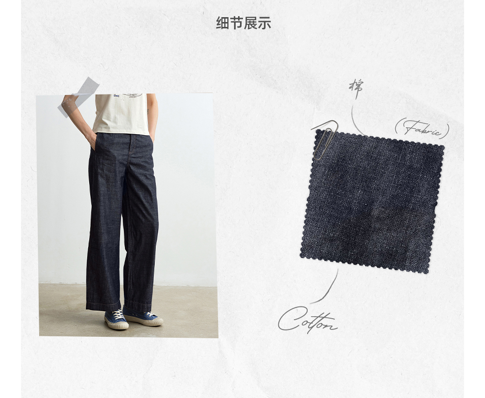 ROMI STUDIO“复古丹宁”100%棉薄款后松紧腰阔腿牛仔裤 RWBAX81727