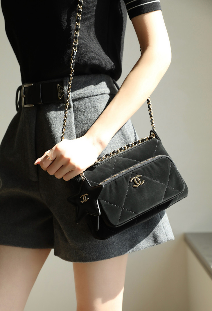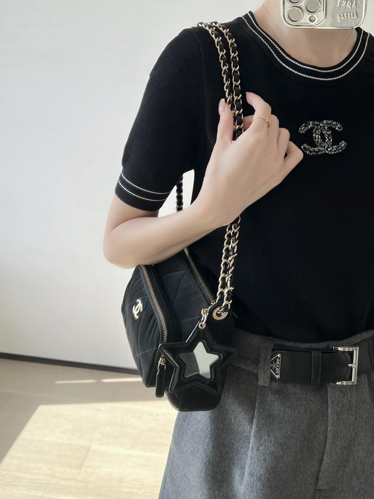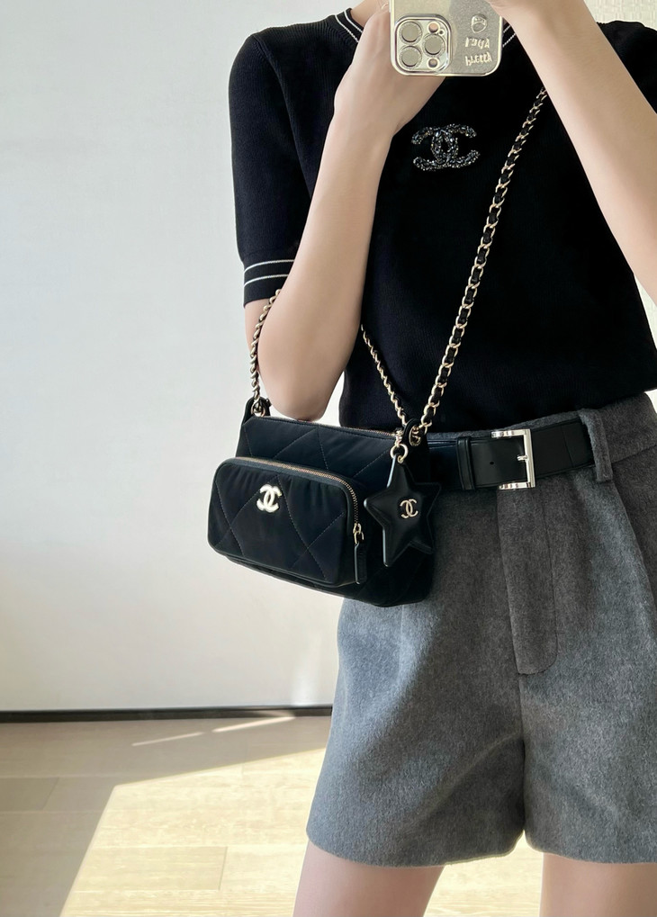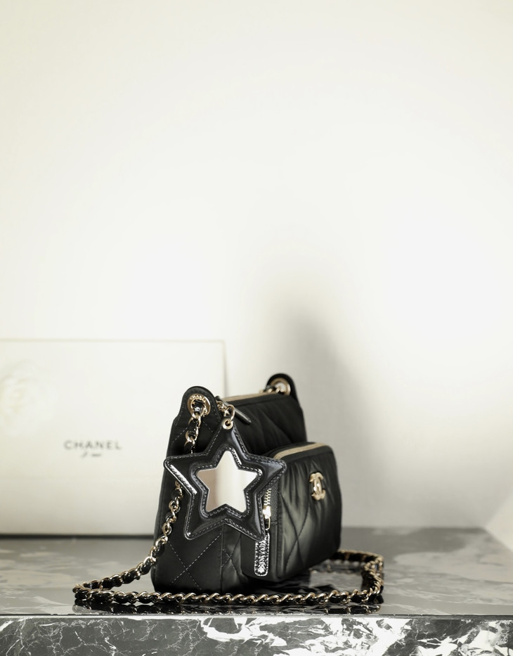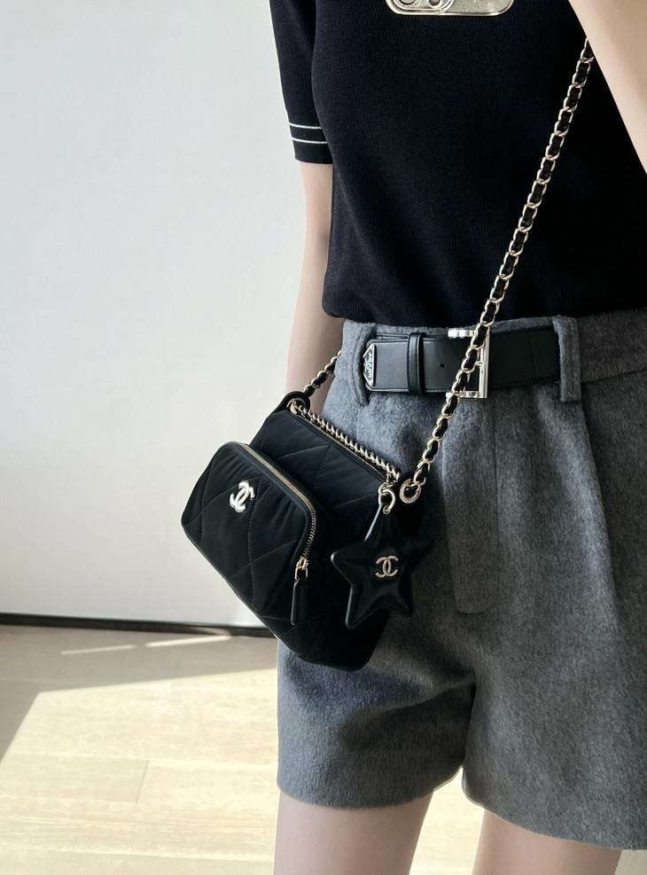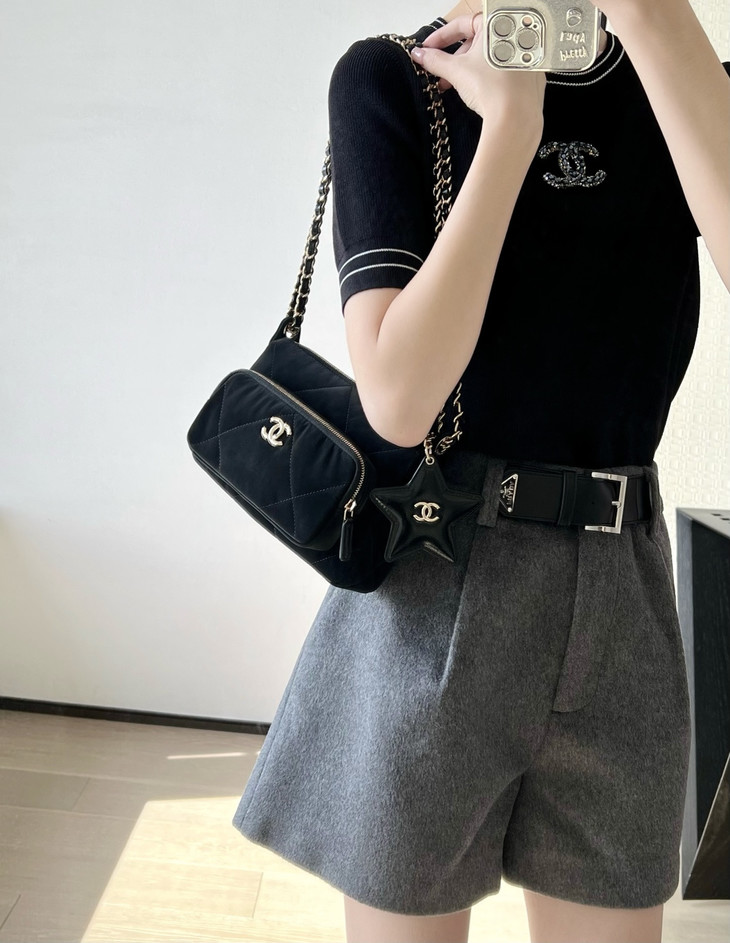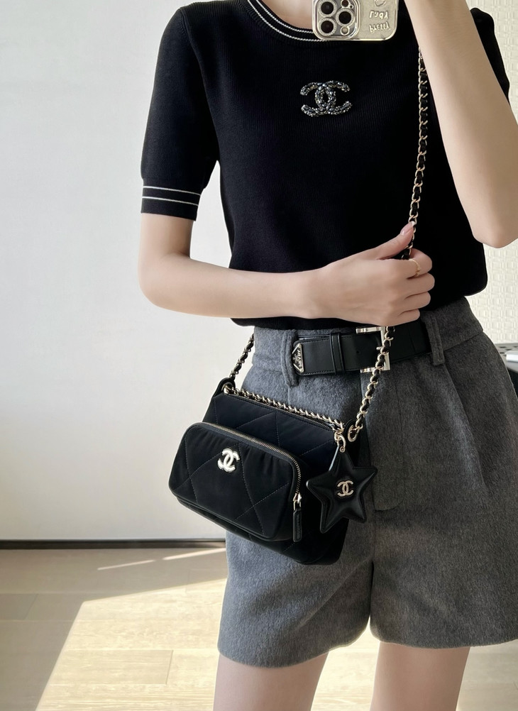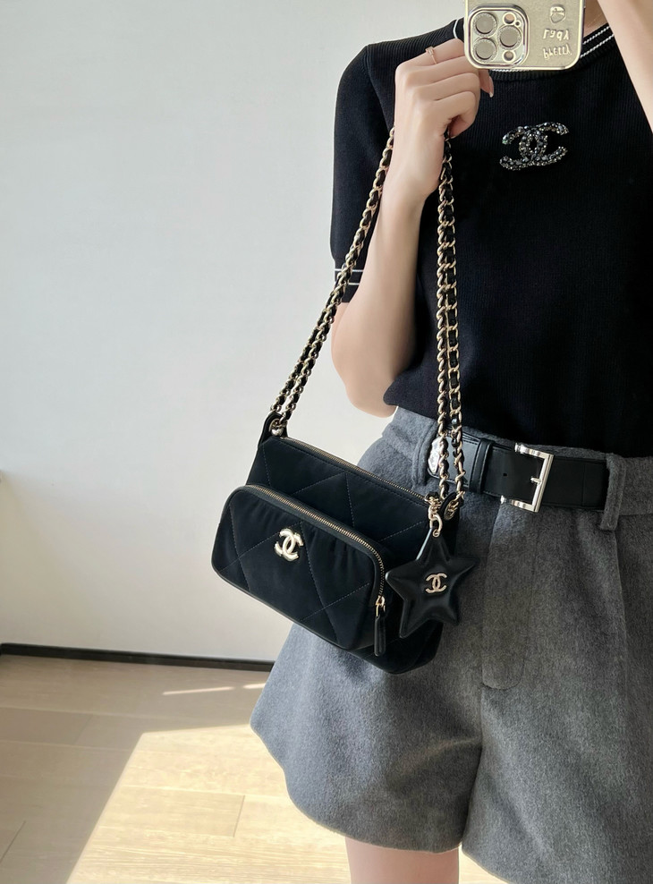 𝟮𝟱𝗡全新𝗖𝗼𝗰𝗼 𝗡𝗲𝗶𝗴𝗲滑雪系列 星星挂饰相机包黑色♥ 专柜售价𝟥𝟣𝟧𝟢𝟢𝗋𝗆𝖻购入开发~ 火热上线𝖢𝗈𝖼𝗈𝖭𝖾𝗂𝗀𝖾链条小挎包 直接把甜酷氛围感焊在身上了! 软乎乎的,摸起来像云朵一样☁️ 丝绒面料配上星星挂饰小镜子🪞 瞬间戳中少女心又带点拽姐范儿~ 五金:厚镀𝟣𝟦𝖪淡金扣 皮料:定制丝光绸面料 尺寸:𝟣𝟧*𝟤𝟣*𝟩.𝟨 𝖼𝗆