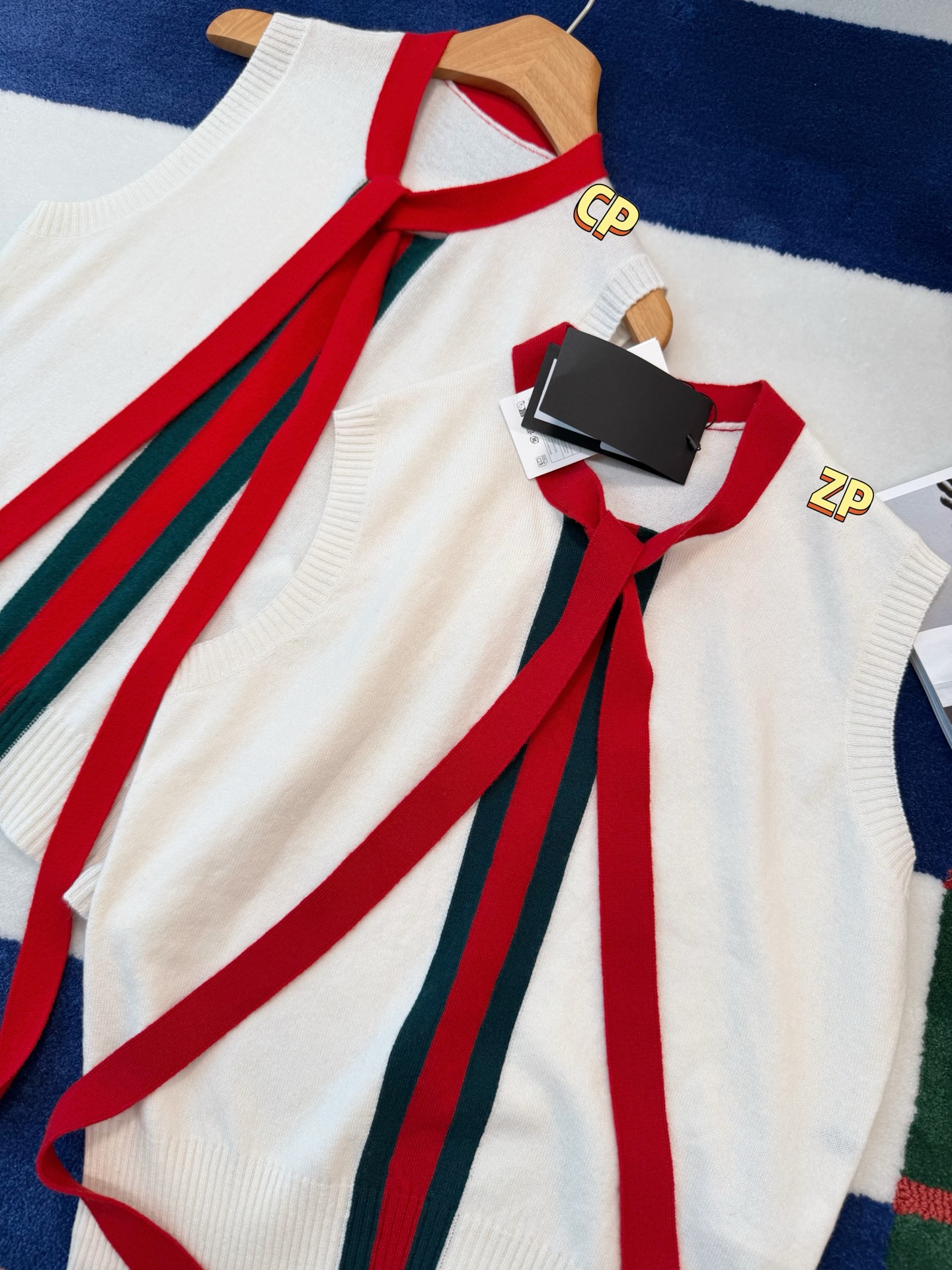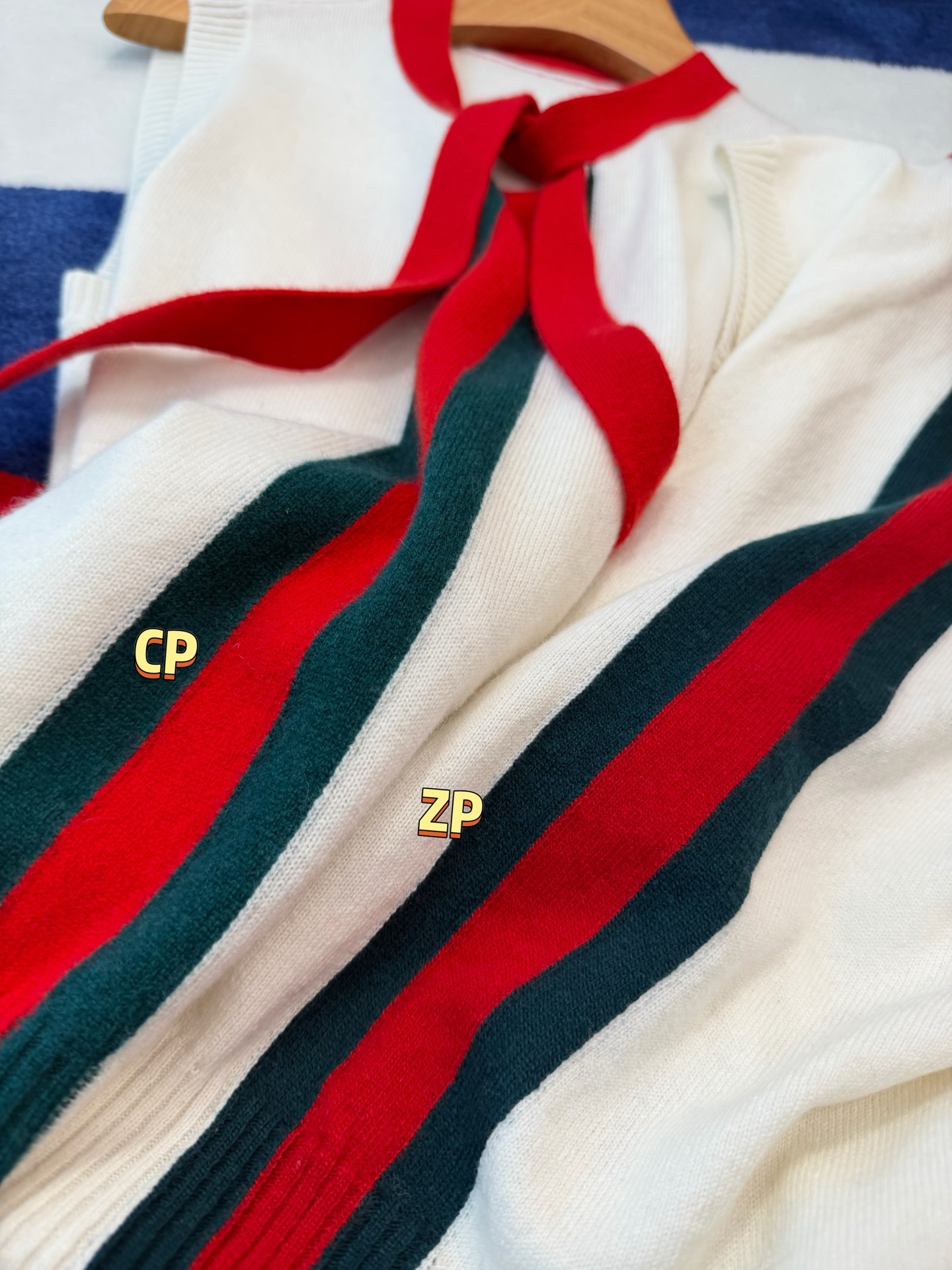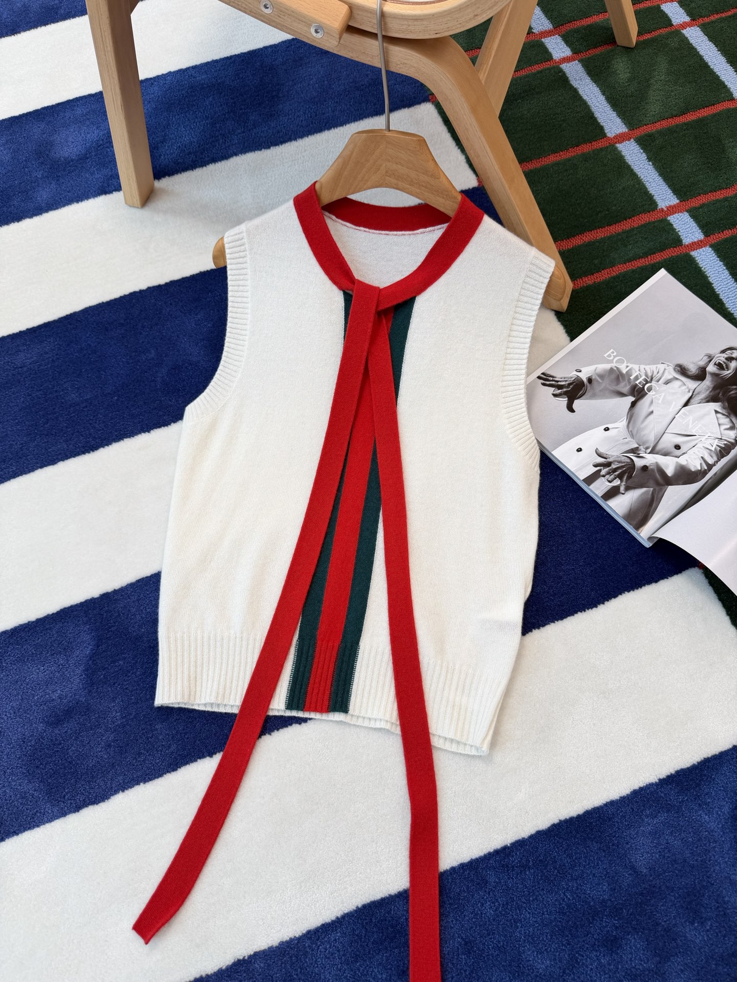 【新款现货发售】拼色学院风飘带针织上衣🥰🥰