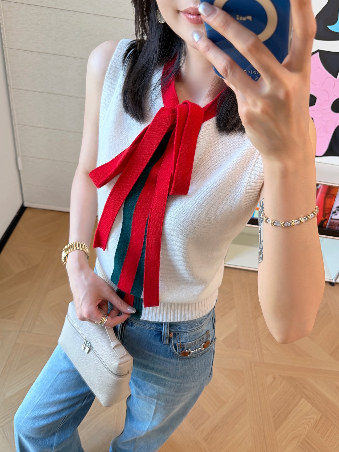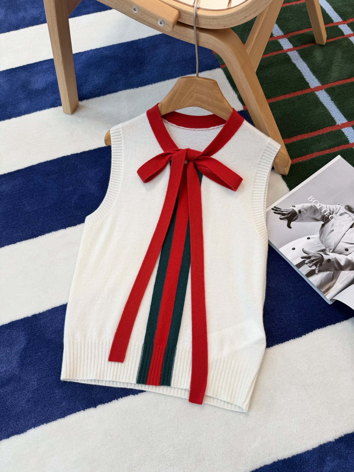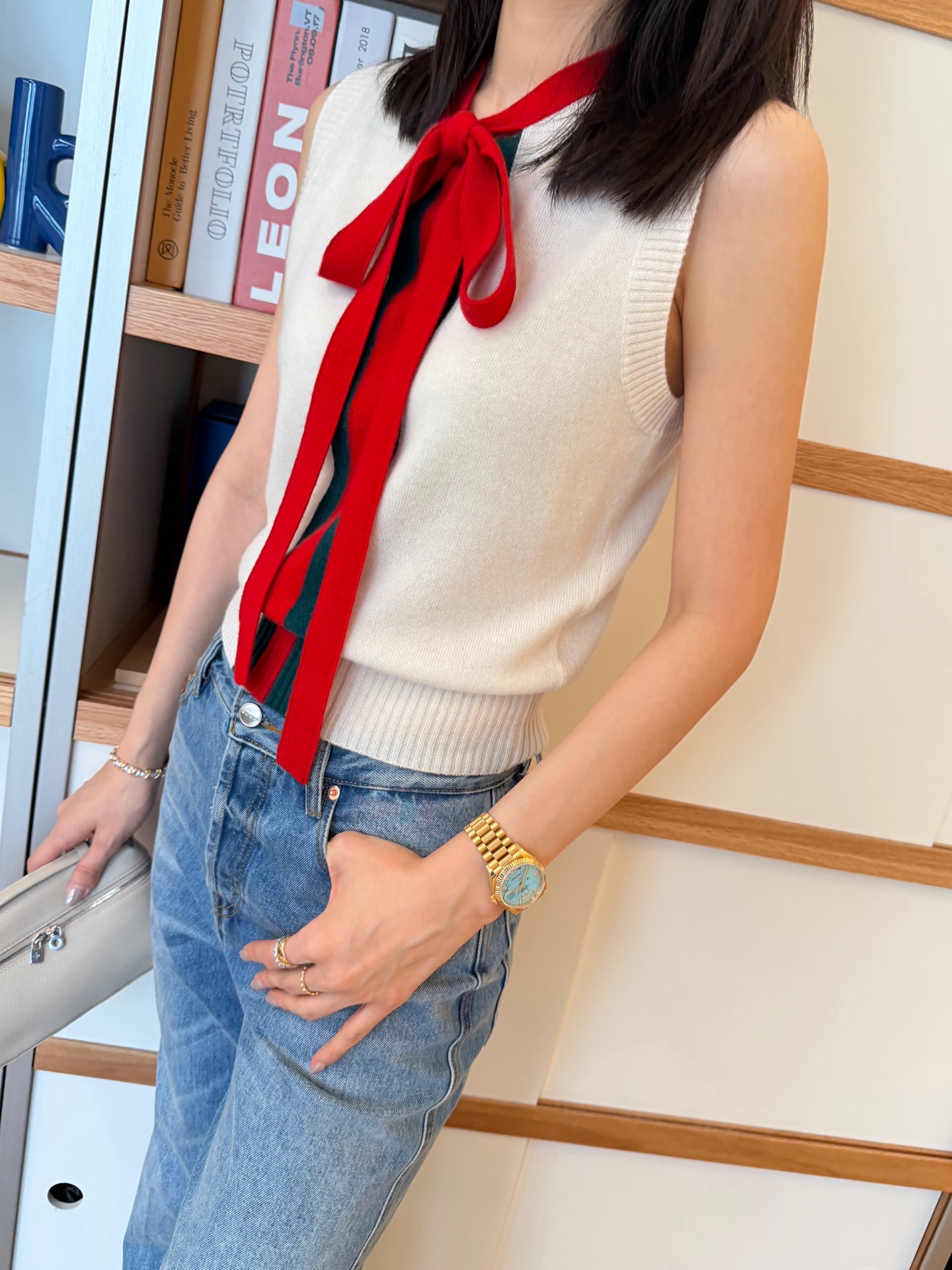 【新款现货发售】拼色学院风飘带针织上衣🥰🥰