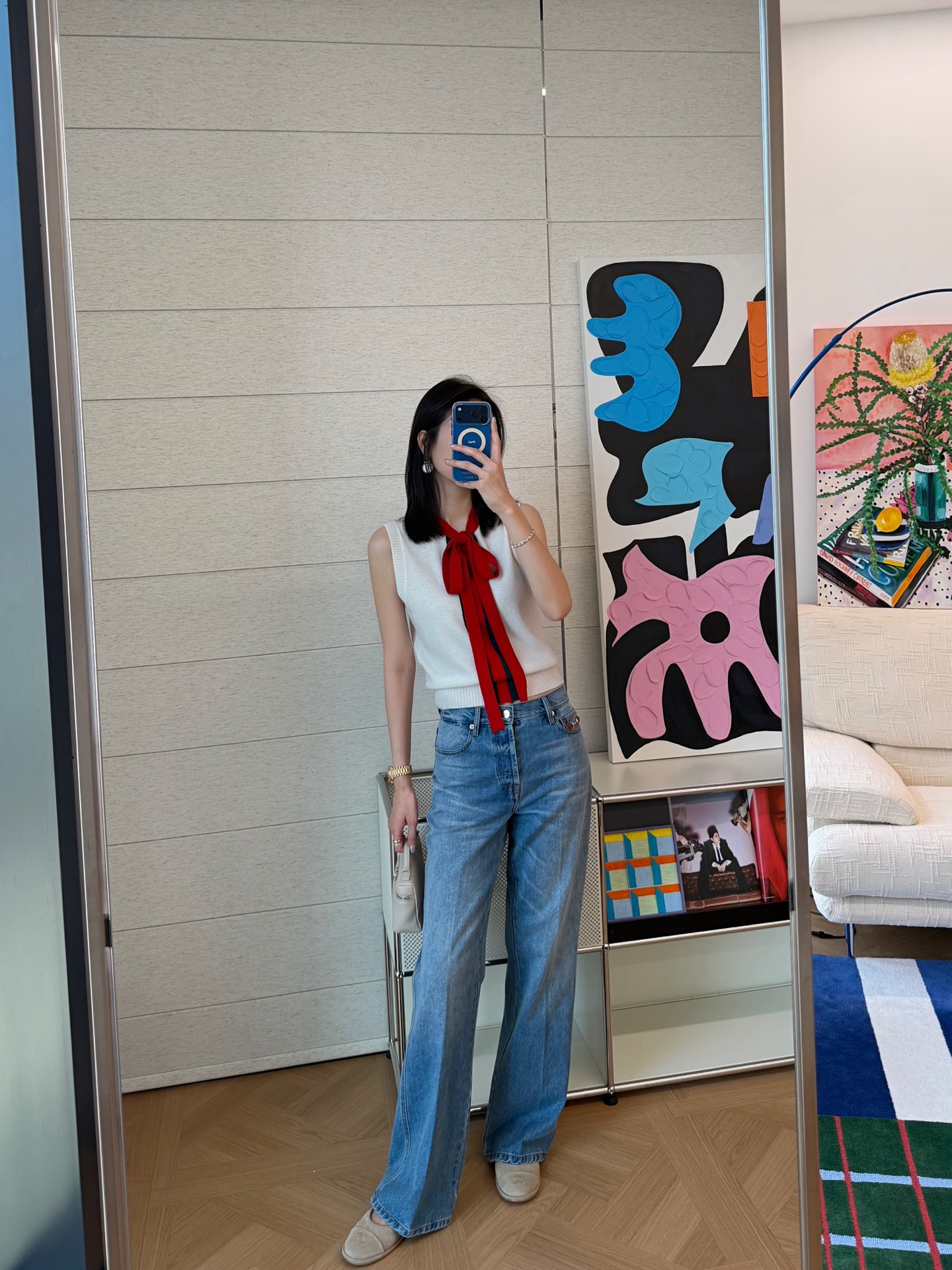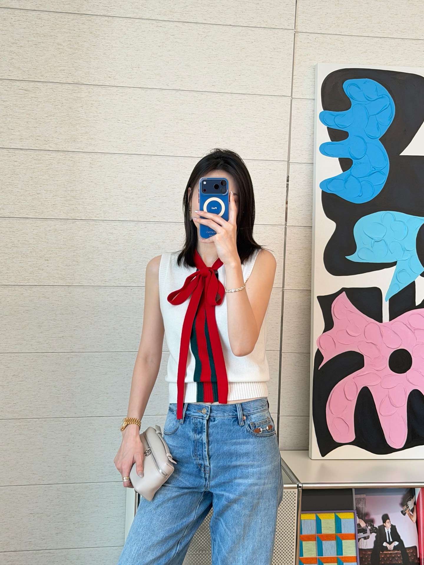 随意系成蝴蝶结就自带复古腔调,搭配牛仔裤是松弛的学院感😻可单穿可以叠搭衬衣或T恤都很OK⚠️⚠️一件解锁N种穿搭场景🤩🤩
