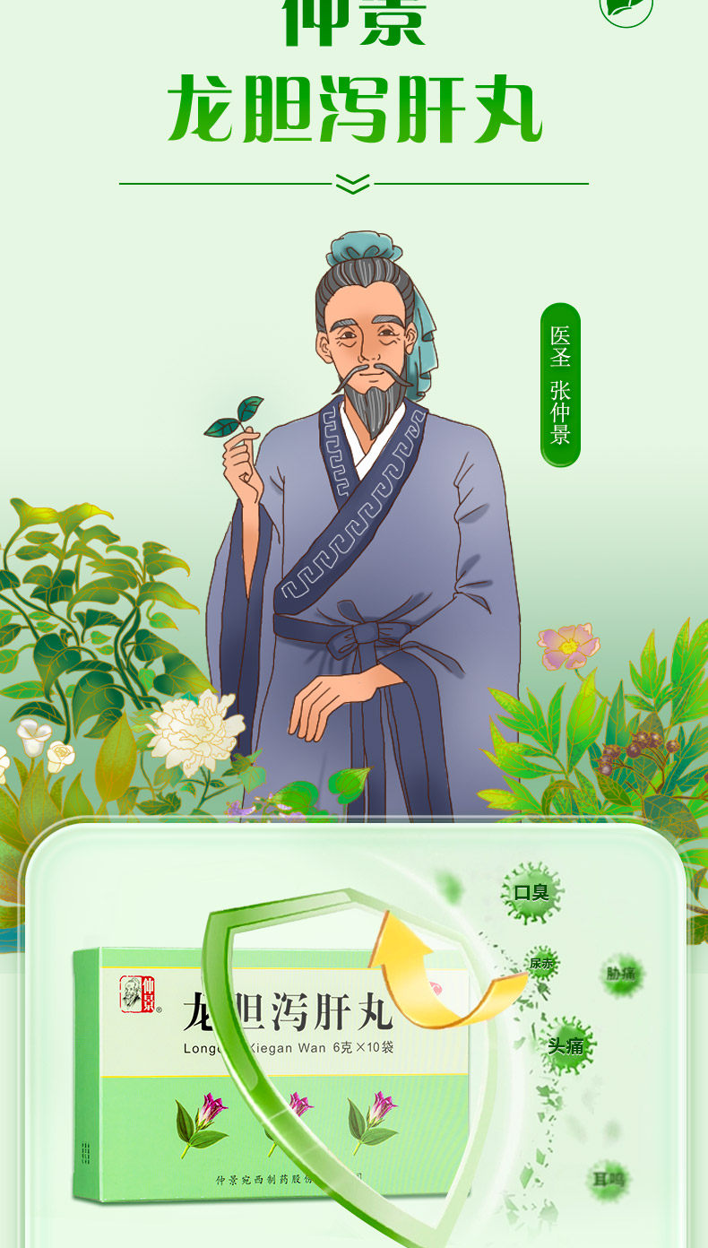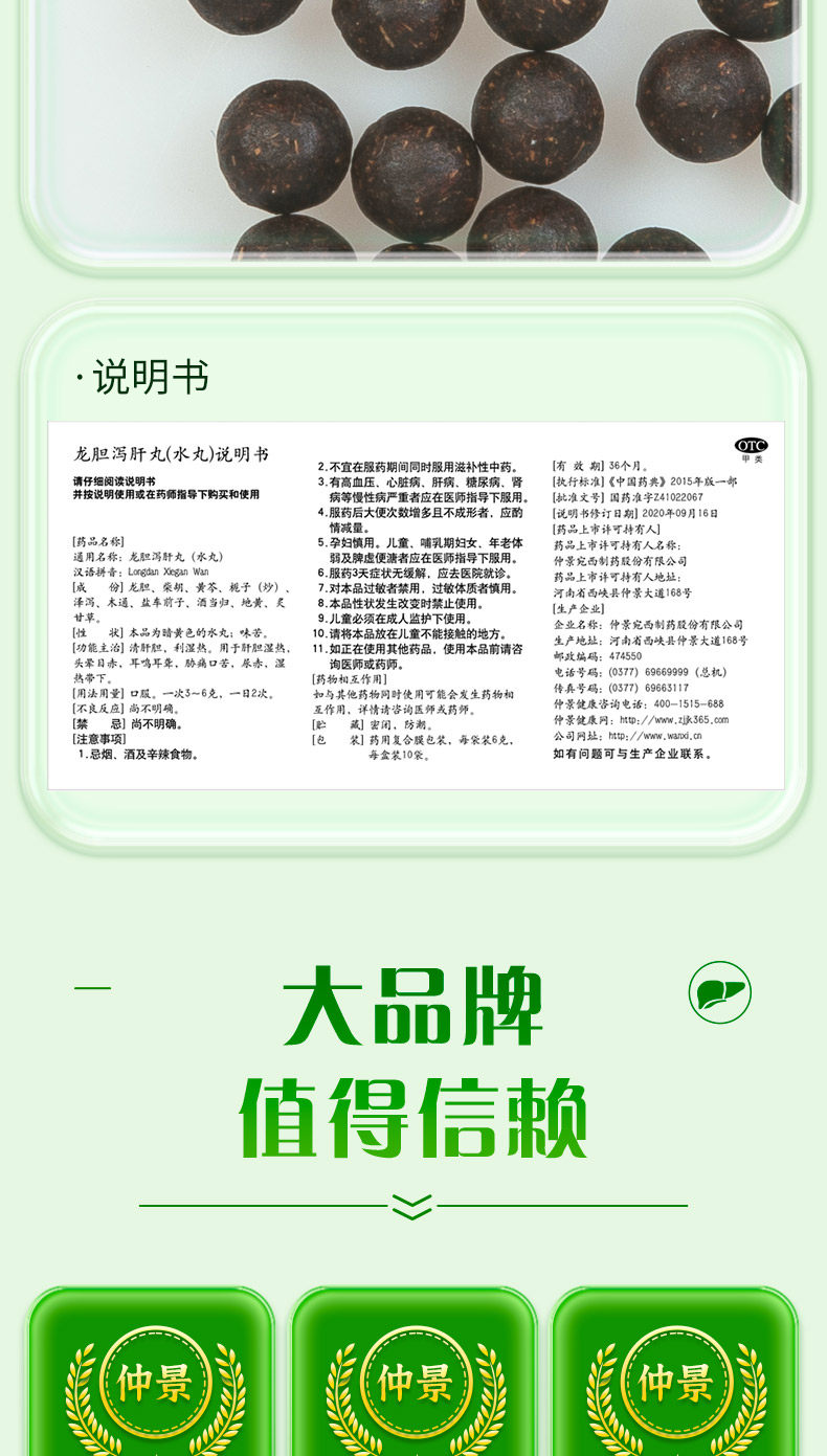仲景龙胆泻肝丸护肝胁痛口苦肝胆湿热耳鸣耳聋头晕目赤湿气重药品