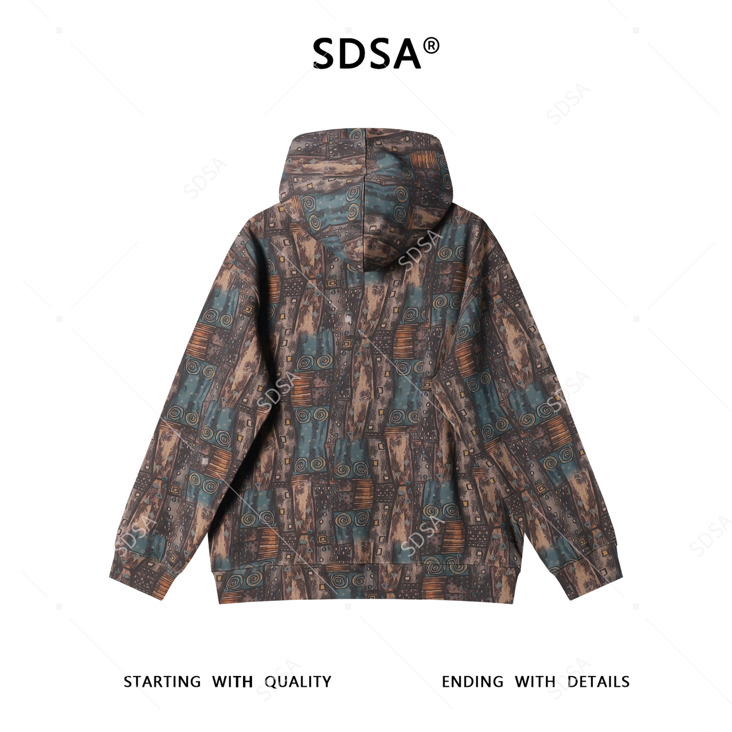 SDSA男士秋冬新款痞帅男装美式复古抽绳图案连帽卫衣百搭时尚上衣