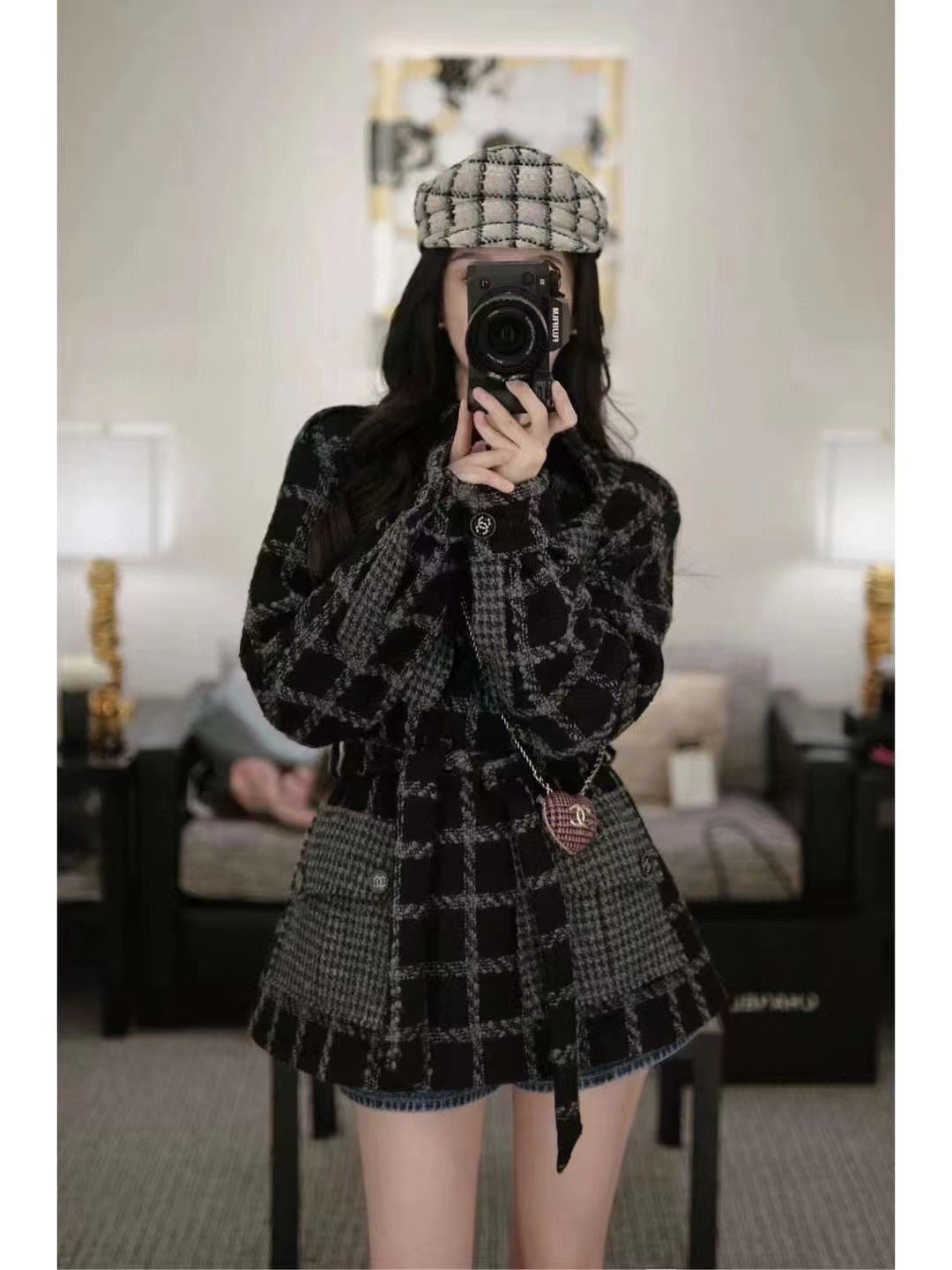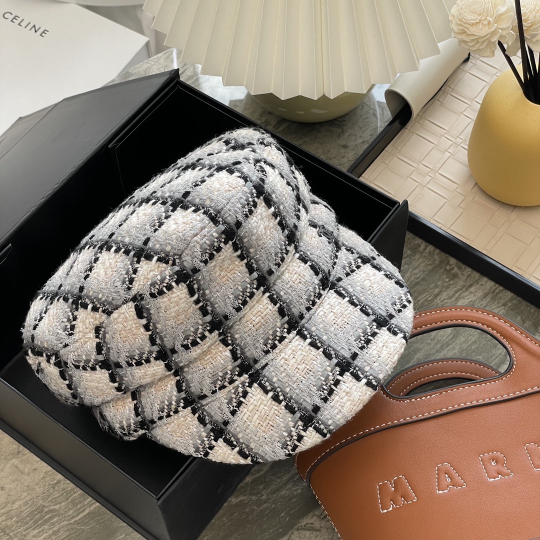 高级面料,粗花呢白色格子系列立体格纹,满屏高级感 ,报童帽给你温暖