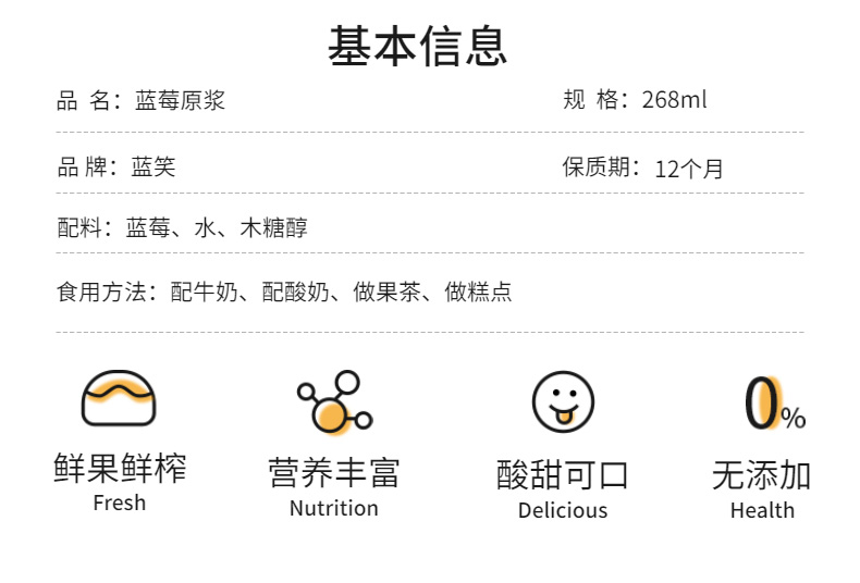 贵州黔东南蓝笑95%蓝莓原浆礼盒装268ml*6瓶/盒