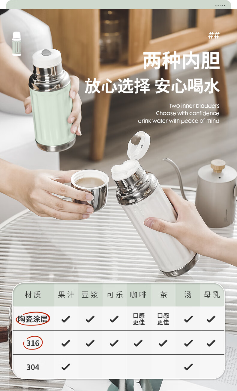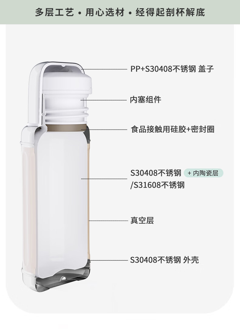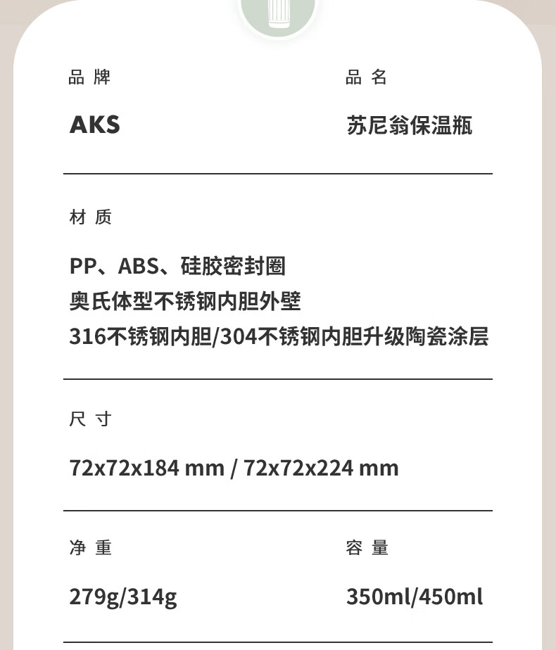 AKS保温杯316不锈钢水杯男女士保冷大容量陶瓷内胆便携茶水杯 AKS 625/AKS 626