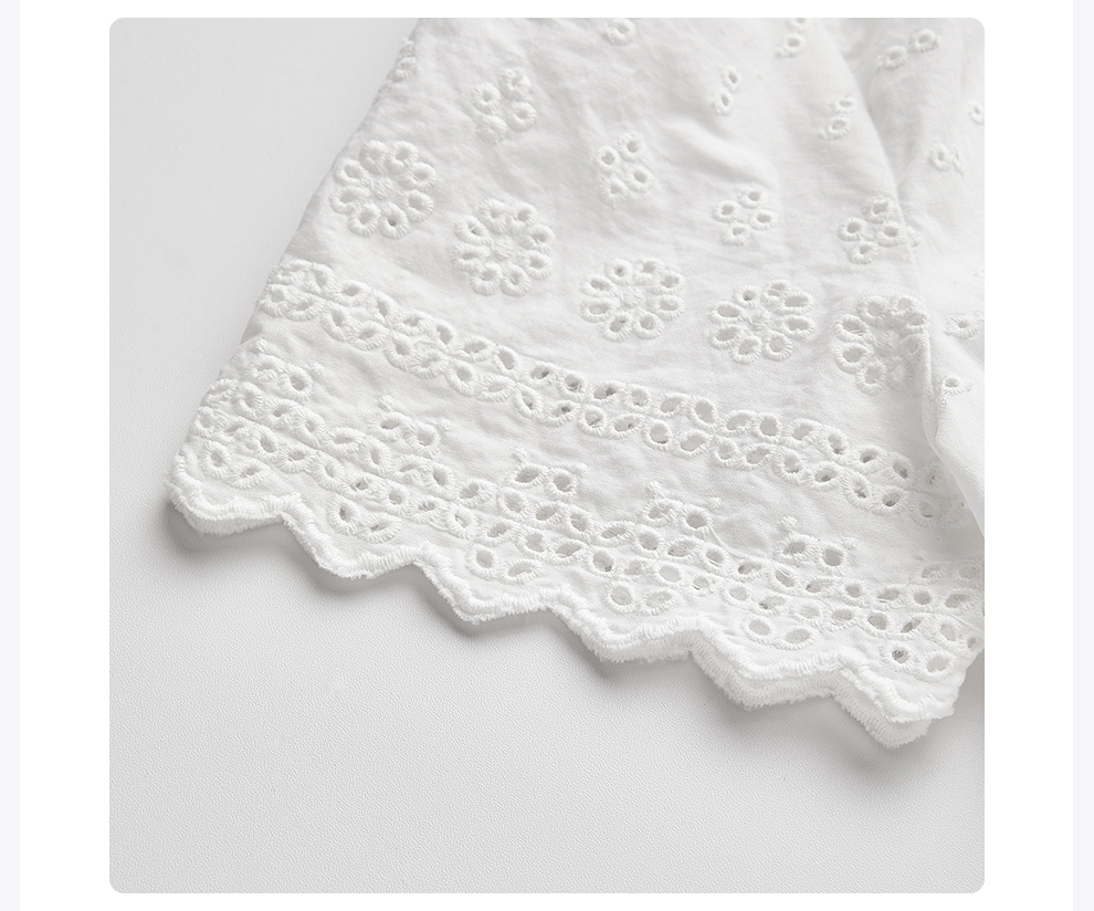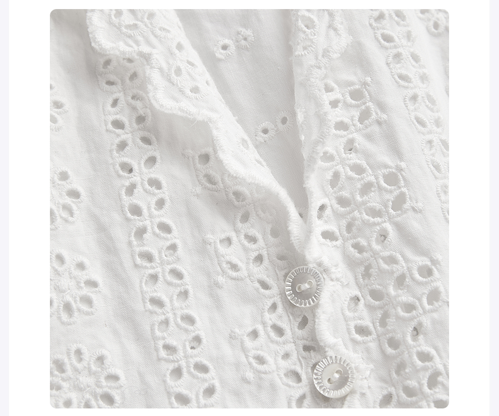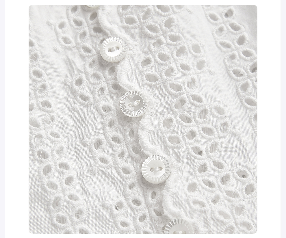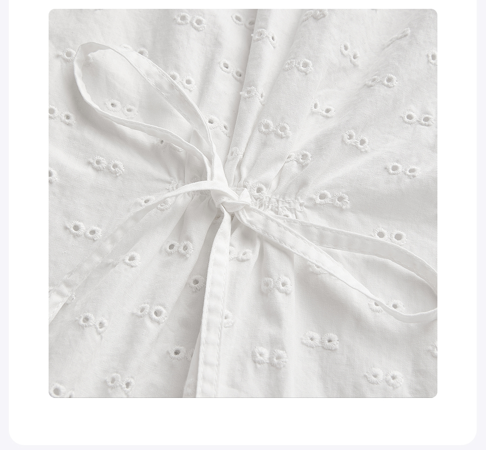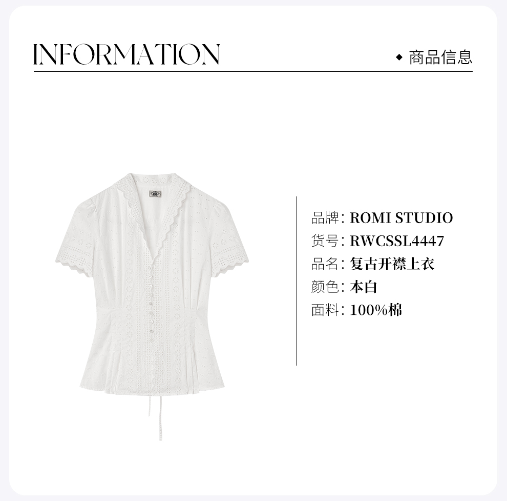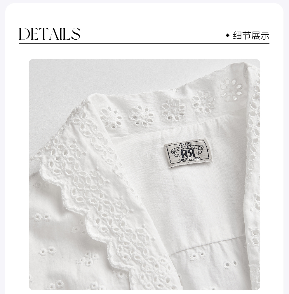ROMI STUDIO“法式复古”绣花镂空纯棉收腰翻领短袖衬衫 RWCSSL4447【发货时间25-30天】