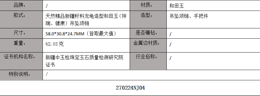 【天然正品】天然精品新疆籽料龙龟造型和田玉(祥瑞、健康)吊坠项链58.0*30.8*24.7MM(皆取最大值) 270224NJ04