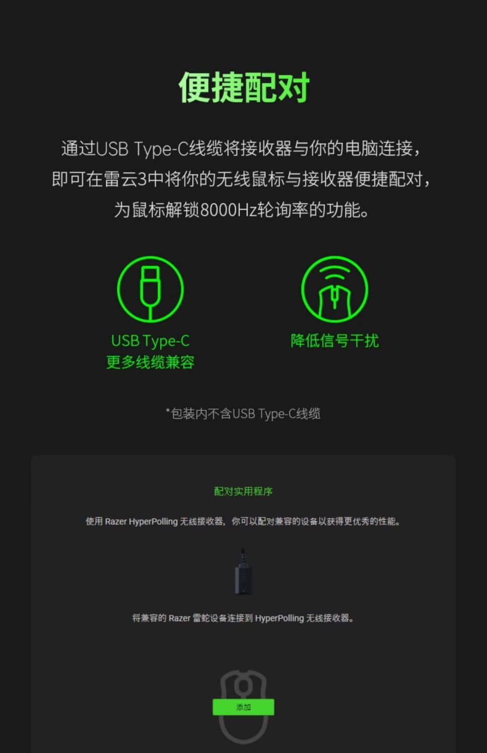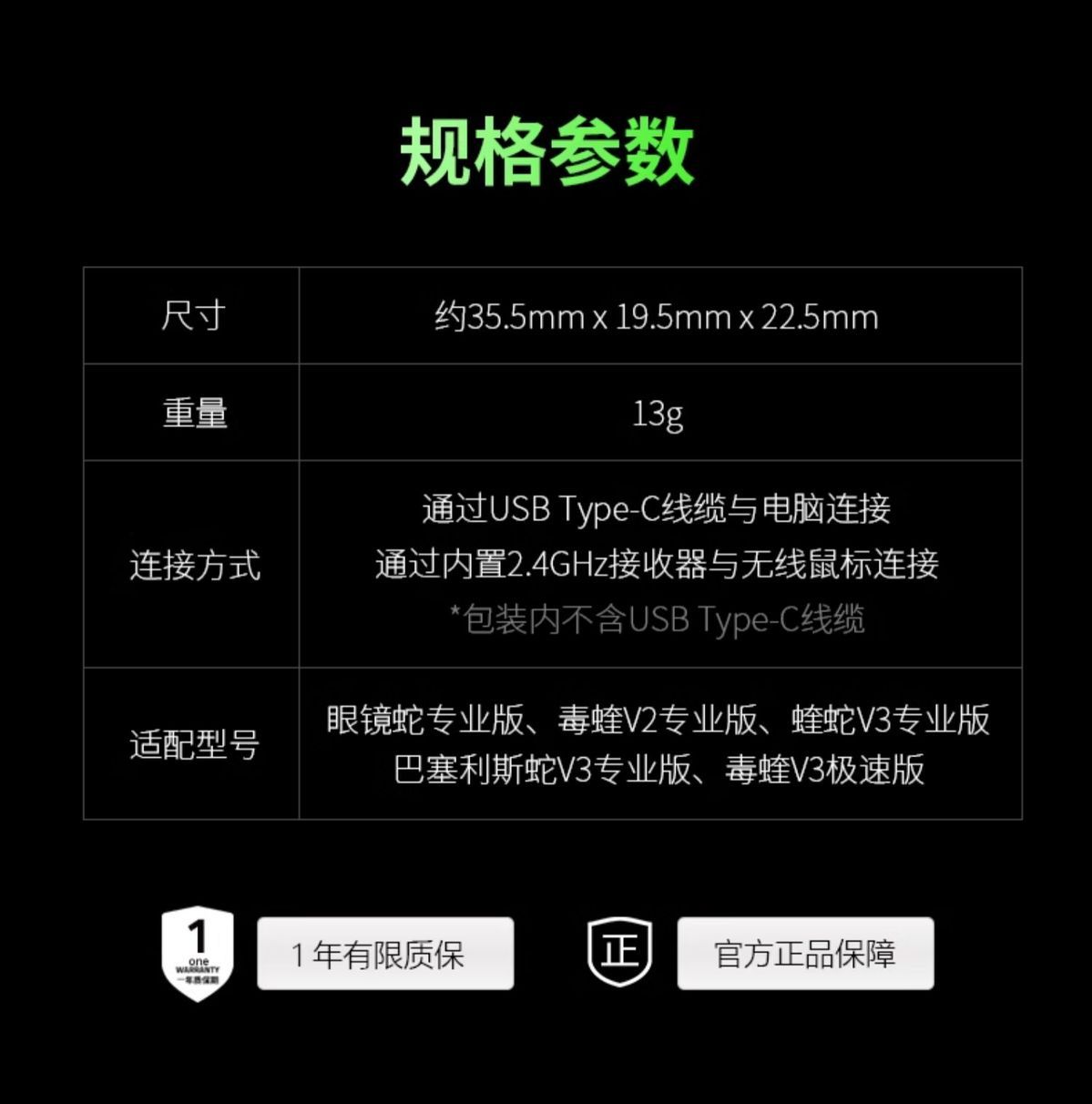 【勿撕毁侧面SN贴纸,否则无法售后】Razer雷蛇HyperSpeed 8KHz无线鼠标接收器【雷蛇官方直营,2年有限质保】