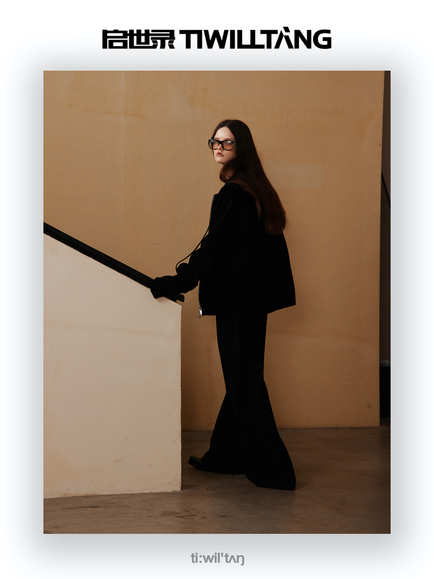 启世录TIWILLTANG“虚澜枕梦”低调奢华条纹贴袋无领西装套装