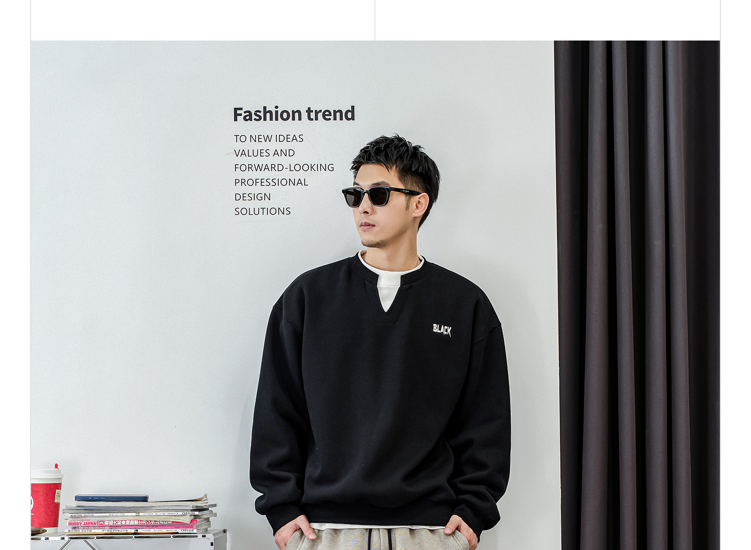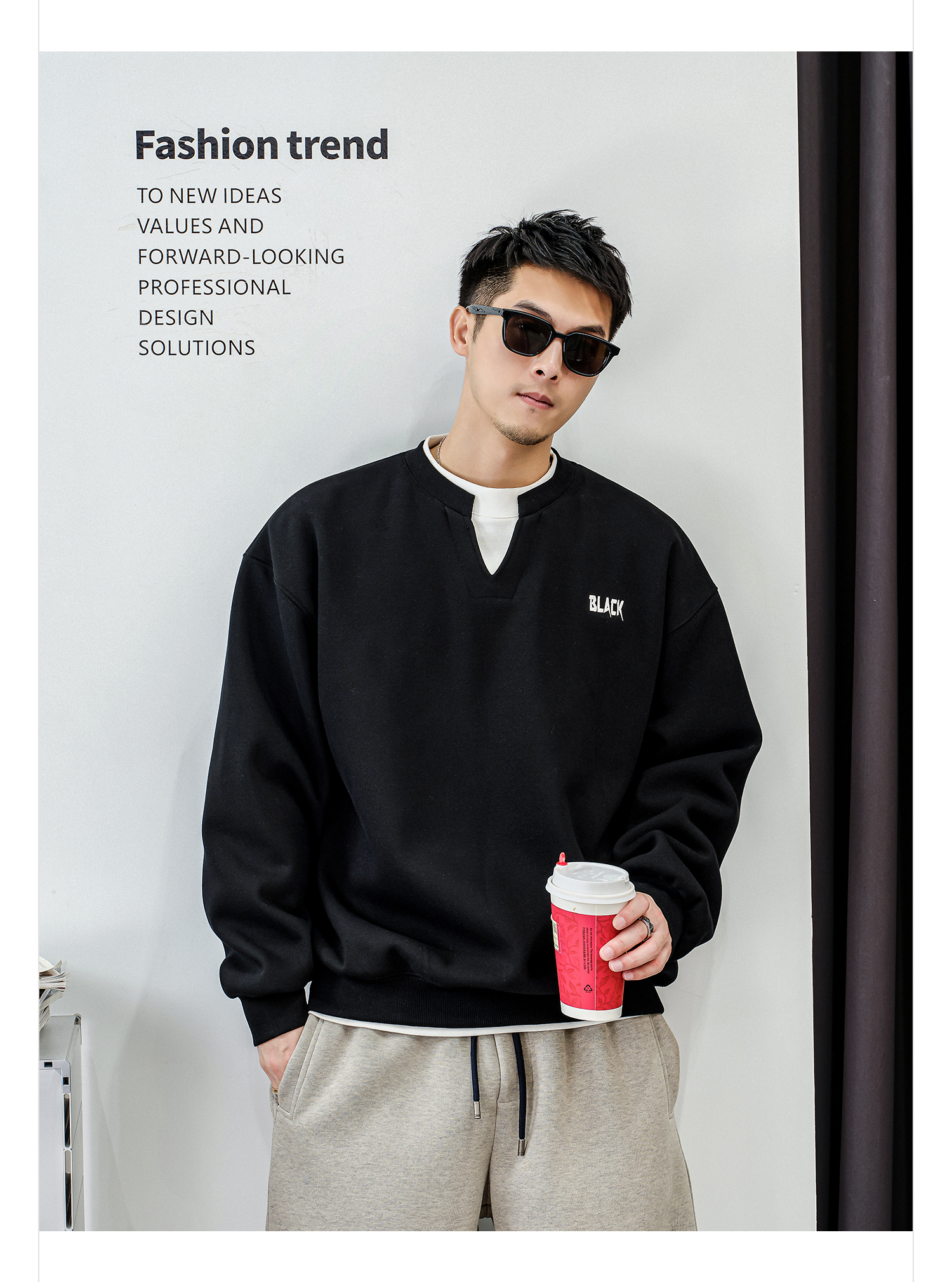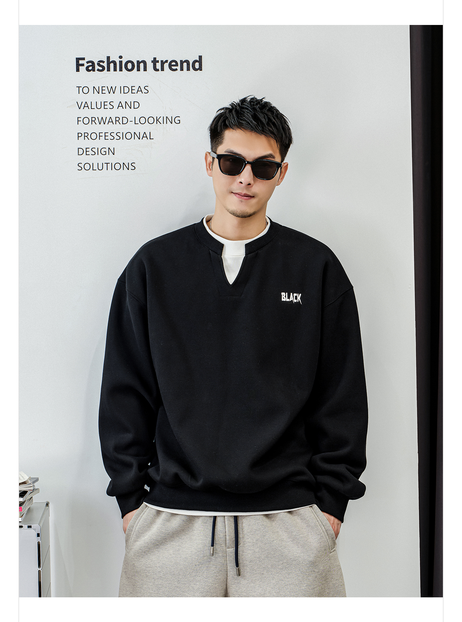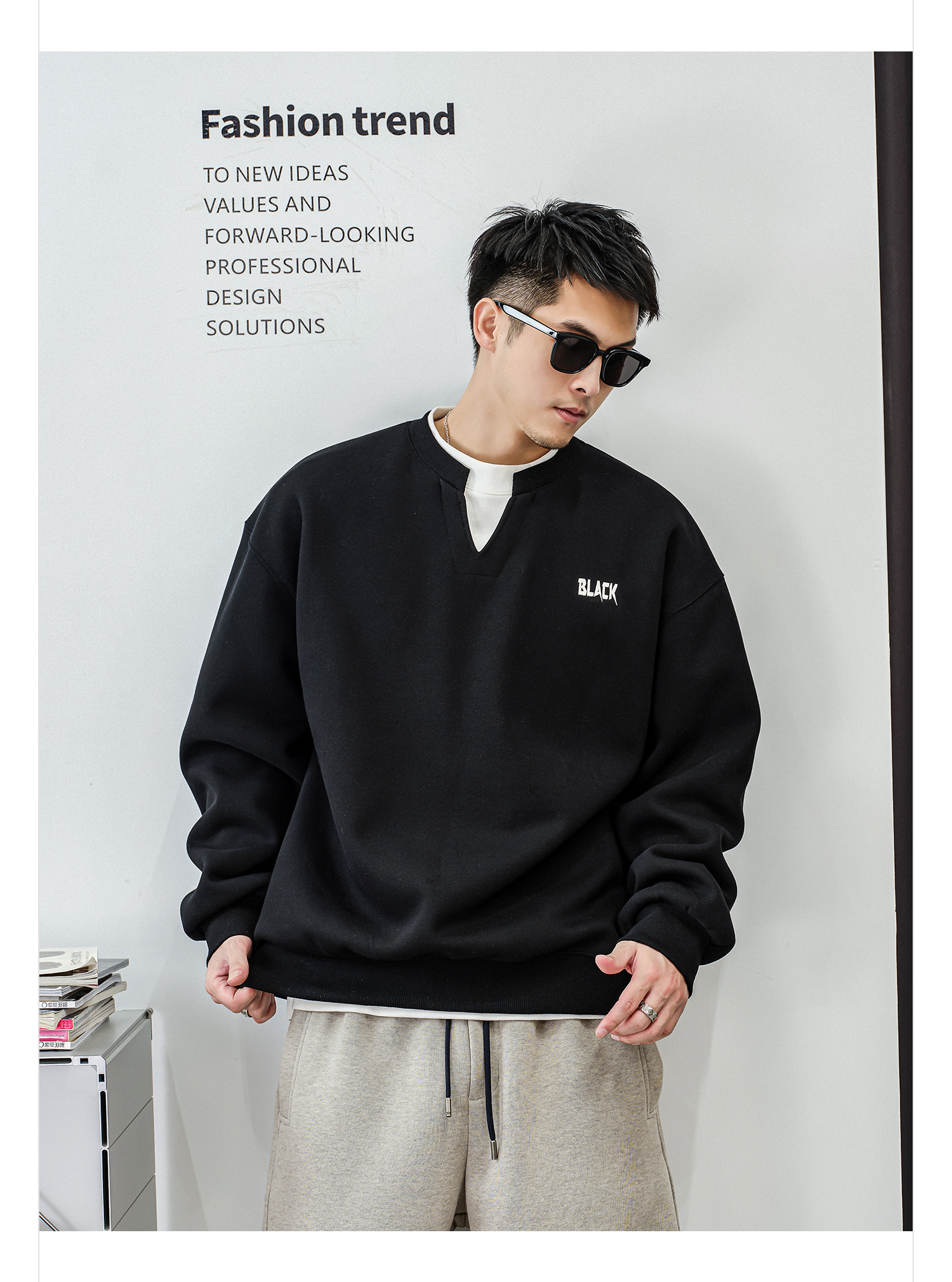 徐太浪【cleanfit 字母印花】加绒假两件卫衣男秋冬款打底衫上衣