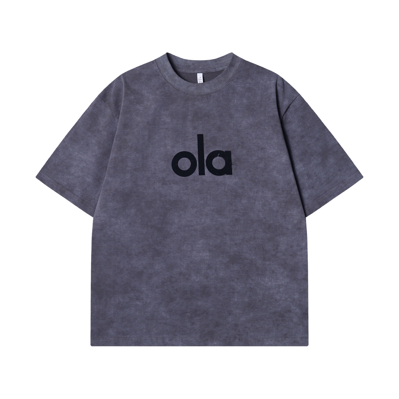 T3090夏季高级感新款美式扎染字母印花圆领短袖T恤街头宽松情侣上衣