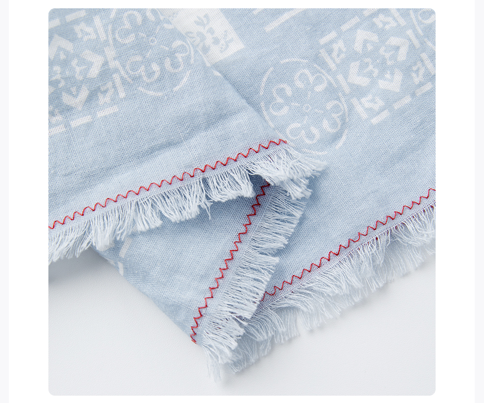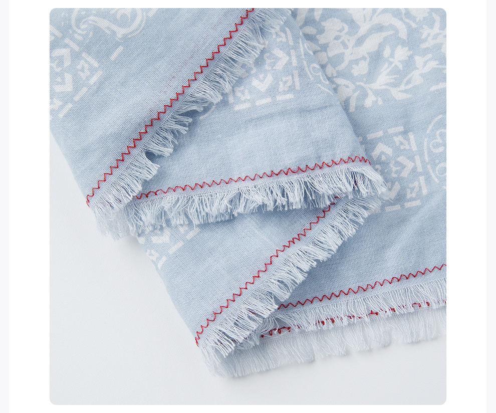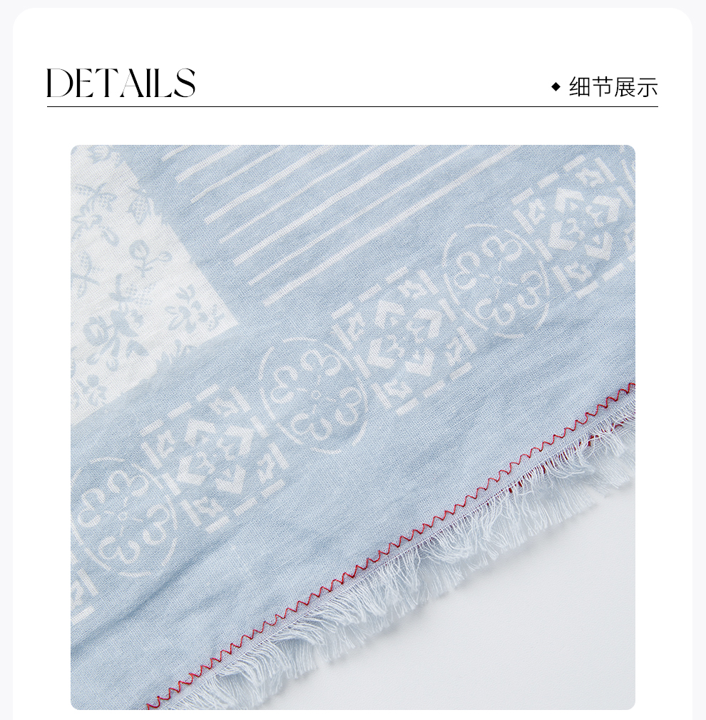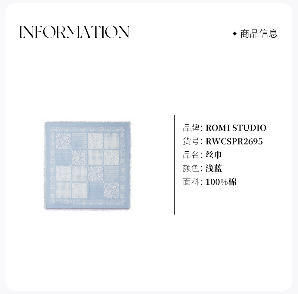 ROMI STUDIO“夏日清新”格纹印花撞色线全棉复古方巾 RWCSPR2695